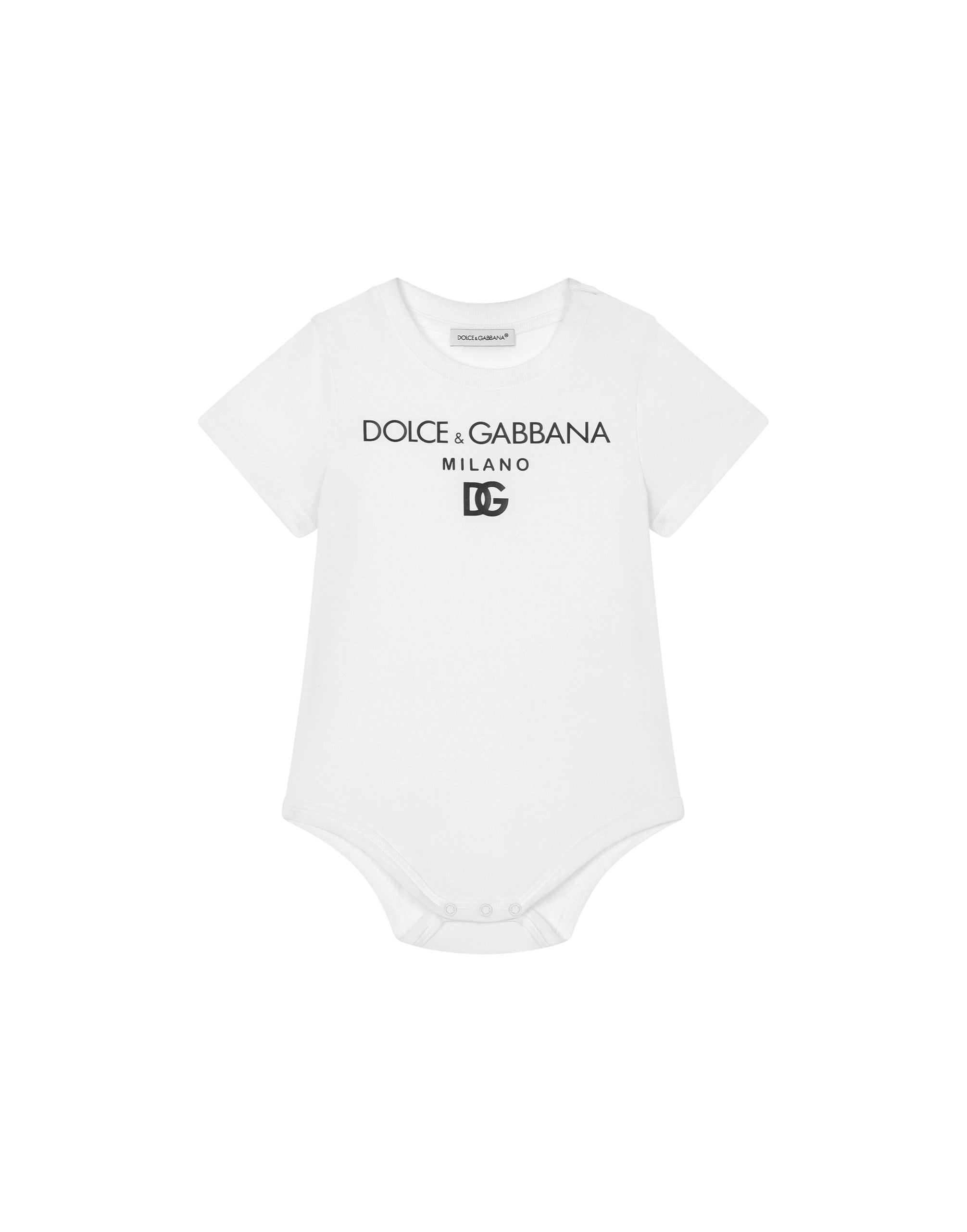 The DNA collection is a rework of our iconic, timeless pieces that are perfect for being worn every day with maximum freedom of movement and a distinctive and unique minimalism and purity of design. The contemporary, understated, ultra-comfortable and vaguely activewear volumes play with the Nero Sicilia black color. A particular focus on the concept of authentic and iconic quality that is conveyed through the symbolic logo tag label. 2-babygrow gift set in logo-print jersey: • White • Regular fit • Round neck • Short sleeves • Unlined • Small concealed press-stud fastenings on the back and crotch • The item in the size 6/9 months measures 37 cm from the shoulder seam • Item comes with a gift box • Made in Italy The difference in the print placement that you may find on this product is a feature of Dolce&Gabbana’s “Handmade” pieces. A detail that makes every garment or accessory unique and exclusive.