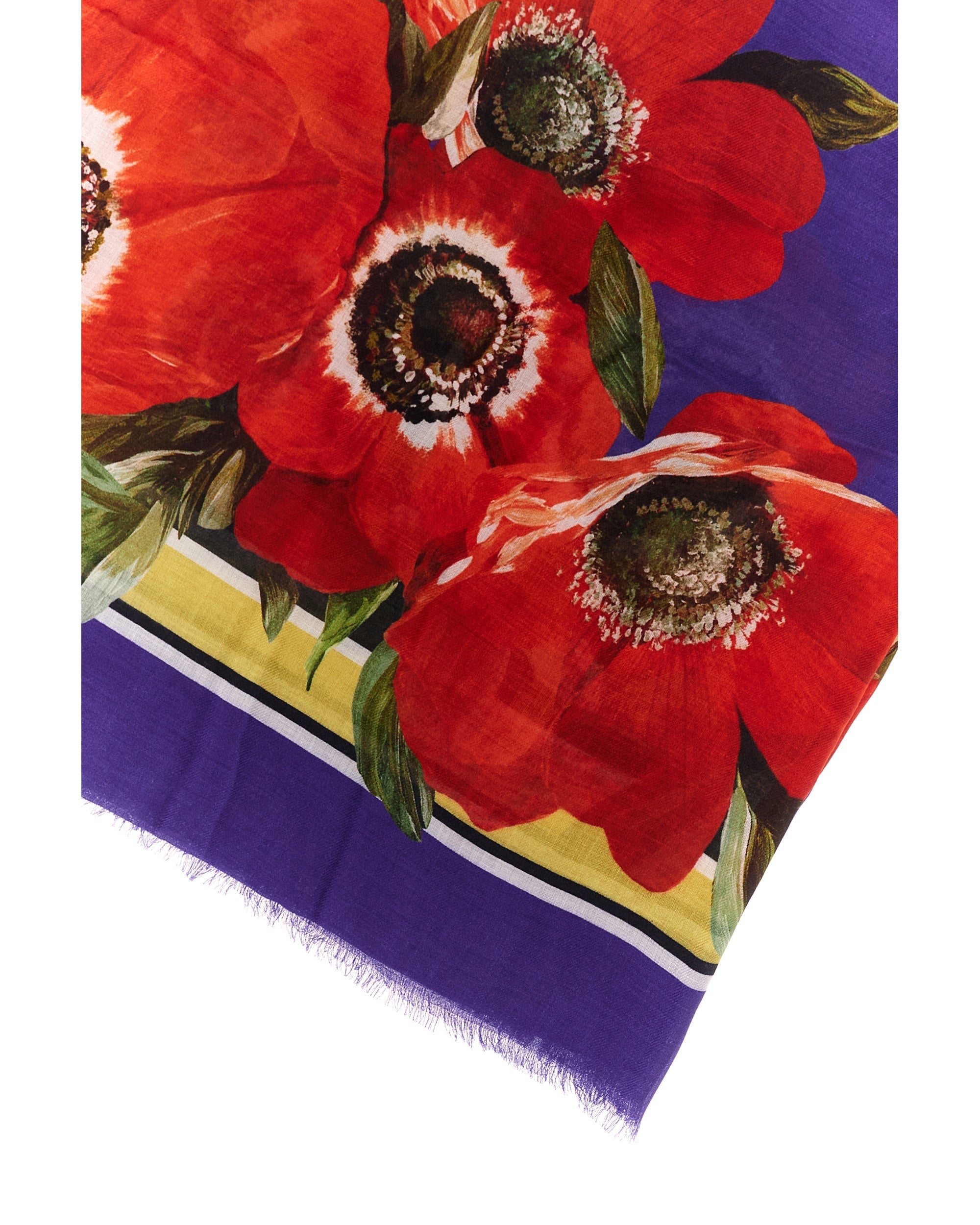 The spirit of the 1960s is taking over the new Flower Power collection. The focus is a head-to-toe floral look built around pairing and layering rose, anemone and floral bouquet maxi-prints. A cosmopolite poised between playful and sexy, this woman interprets the austerity and elegance of the 1960s, harking back to boldly opulent imagery that here at Dolce&Gabbana is condensed and reinterpreted through silhouettes, ample proportions and airy shapes, bringing femininity and sensuality to the forefront. Anemone-print modal and cashmere scarf: • Multi-colored • Hem finished on side and small fringe detail on ends • Measurements: 135 x 200 cm • Made in Italy The difference in the print placement that you may find on this product is a feature of Dolce&Gabbana’s “Handmade” pieces. A detail that makes every garment or accessory unique and exclusive.