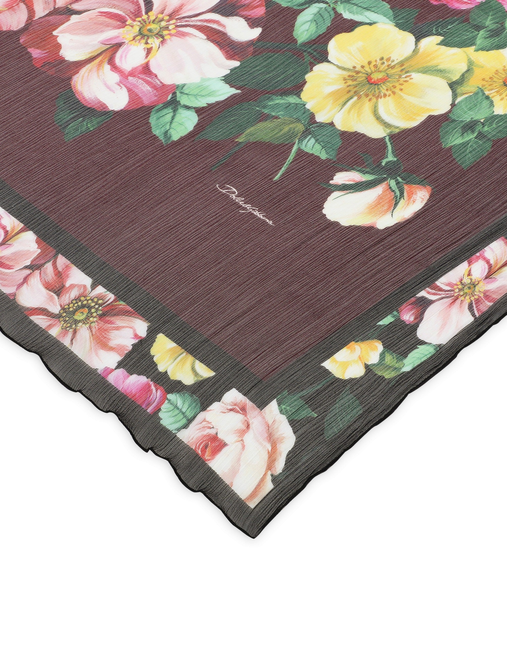 The spirit of the 1960s is taking over the new Flower Power collection. The focus is a head-to-toe floral look built around pairing and layering rose, anemone and floral bouquet maxi-prints. A cosmopolite poised between playful and sexy, this women interprets the austerity and elegance of the 1960s, harking back to boldly opulent imagery that here at Dolce&Gabbana is condensed and reinterpreted through silhouettes, ample proportions and airy shapes, bringing femininity and sensuality to the forefront. Silk crepon scarf with bluebell print: • Multi-colored • Hand-sewn hem • Dolce&Gabbana logo at the bottom • Measurements: 120 x 200 cm • Made in Italy The difference in the print placement that you may find on this product is a feature of Dolce&Gabbana’s “Handmade” pieces. A detail that makes every garment or accessory unique and exclusive.