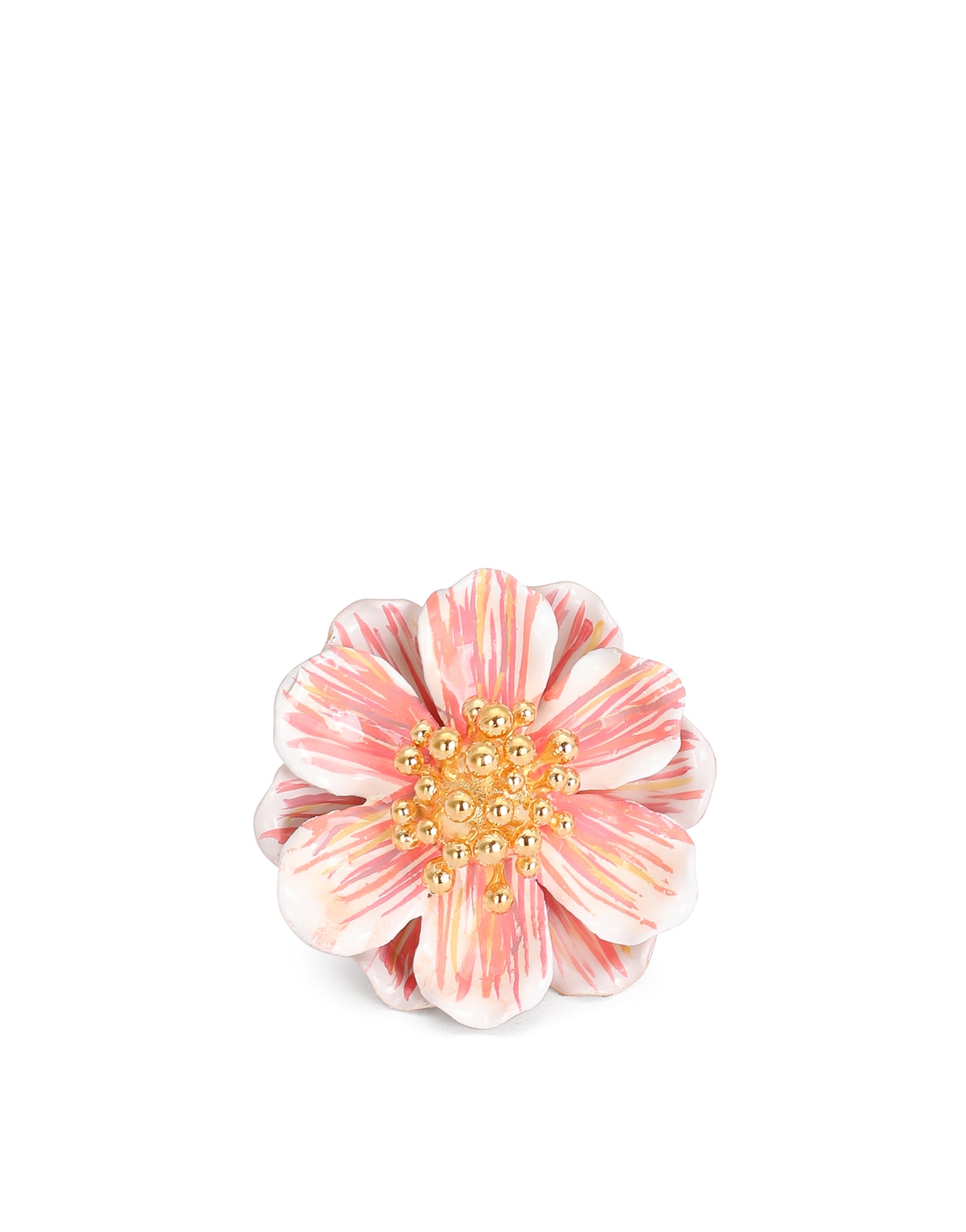 This ring with enameled flower is sure to catch the eye when it’s on your finger thanks to its original allure: • Nickel-free and hypoallergenic materials • Made in Italy External composition: 80% Nickel-free Brass 15% Glass 5% Enamel