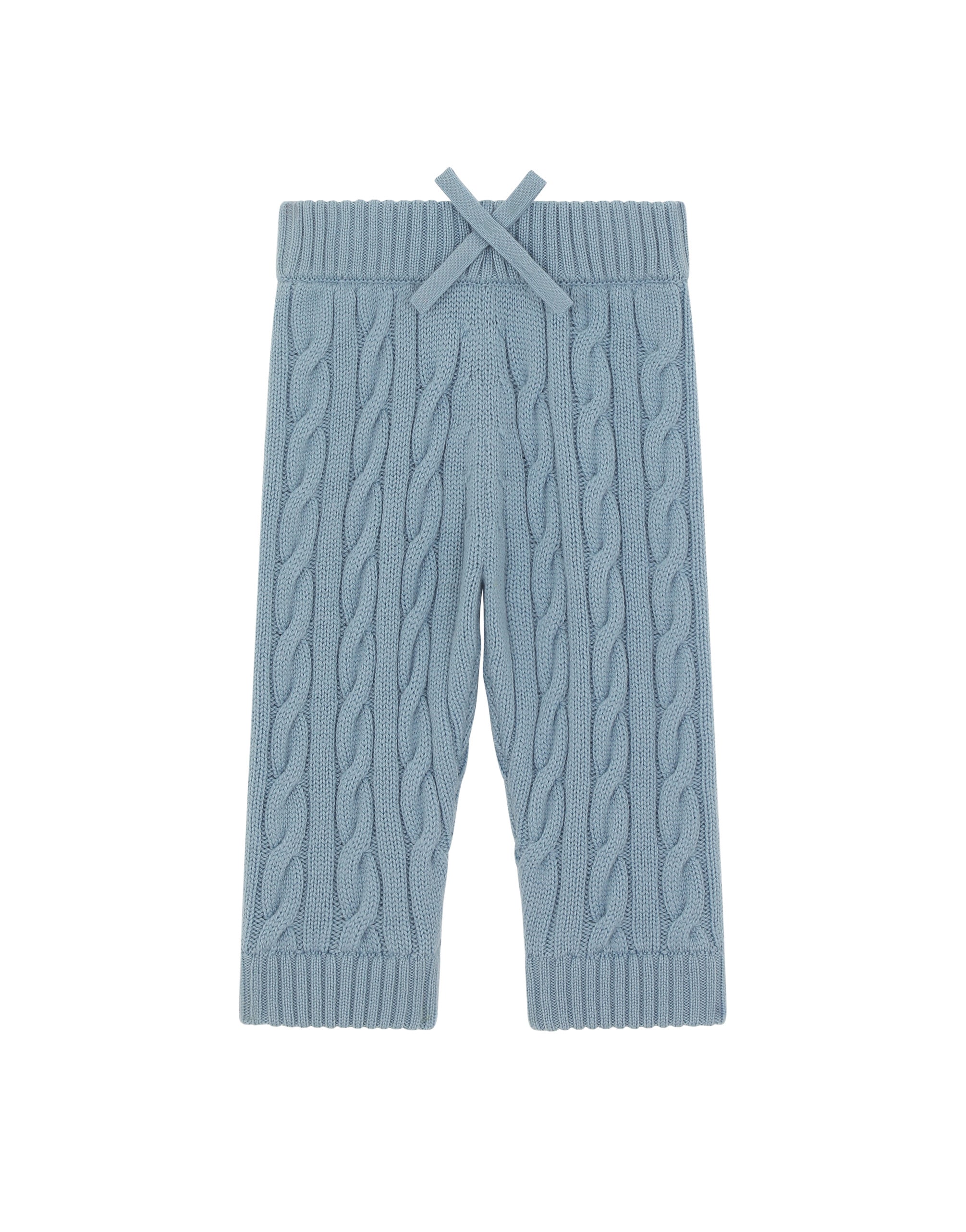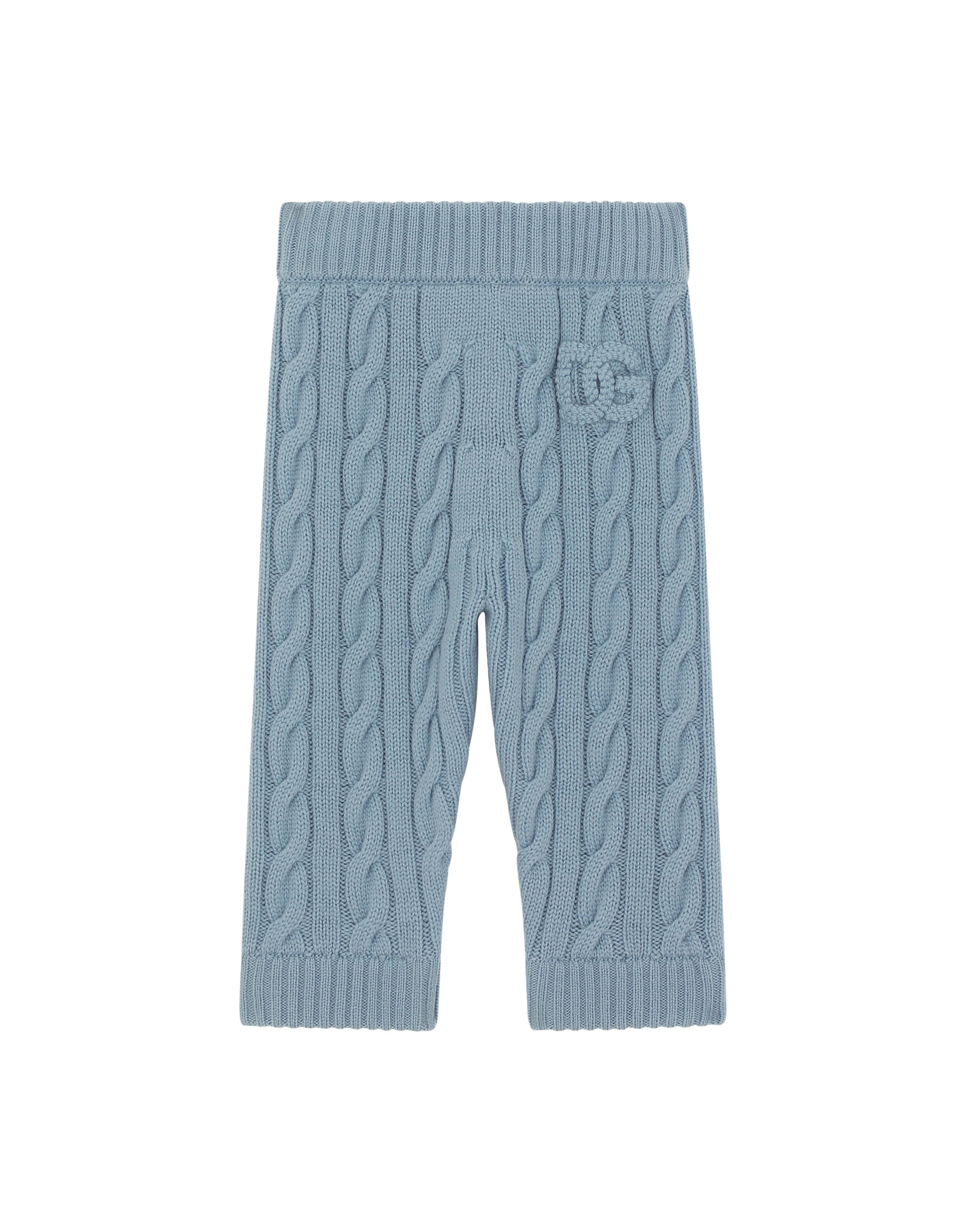 The Newborn Gifting capsule collection includes garments that have been designed for the utmost comfort of movement, which come in delicate shades and the most comfortable fabrics. These loose knit pants feature a cable knit and the embroidered DG logo patch. • Regular fit • 7-gauge knit • Embroidered knit DG logo patch on the back • Unlined • The item in the size 6/9 months measures 37 cm - 14.6 inches in length • Made in Italy