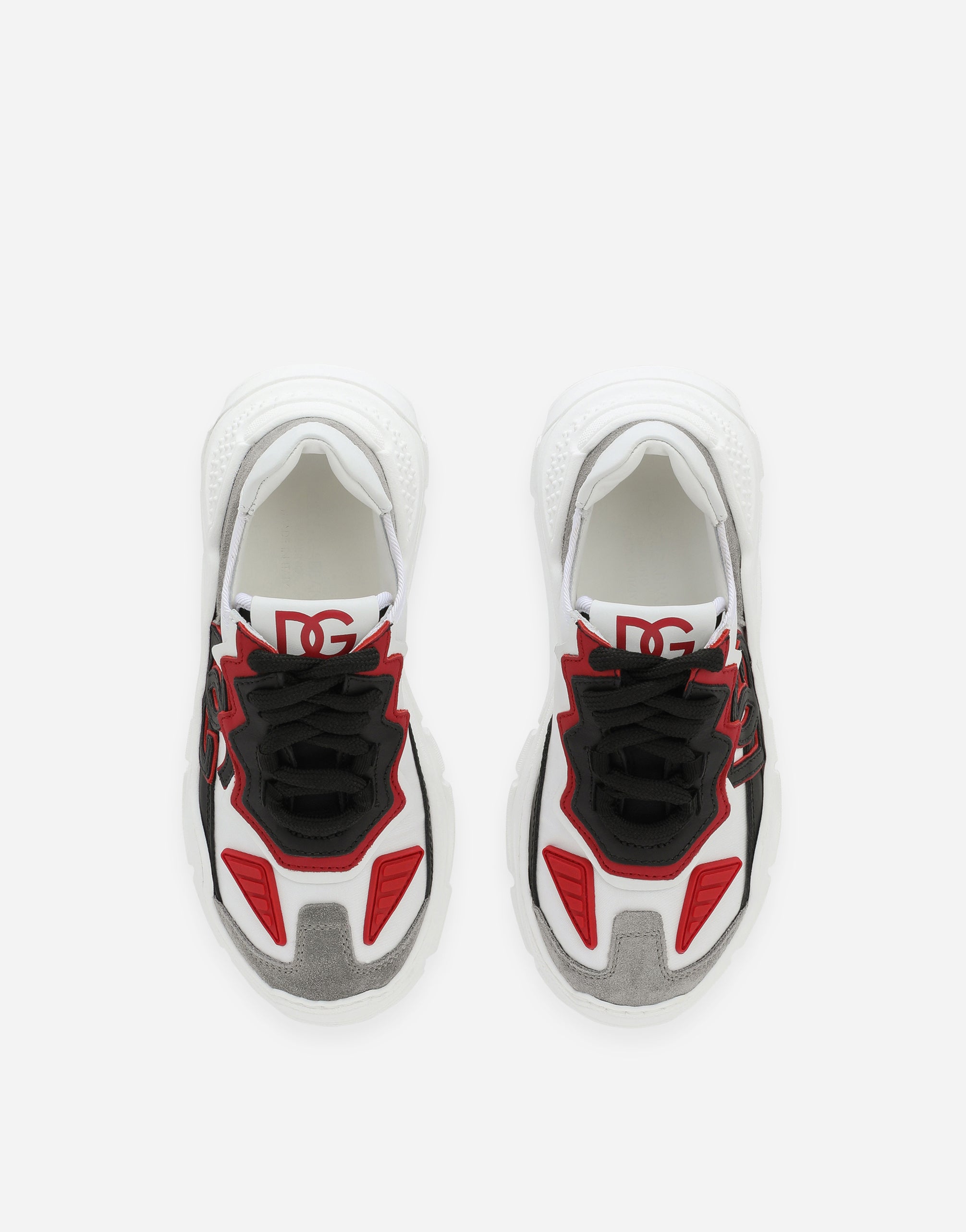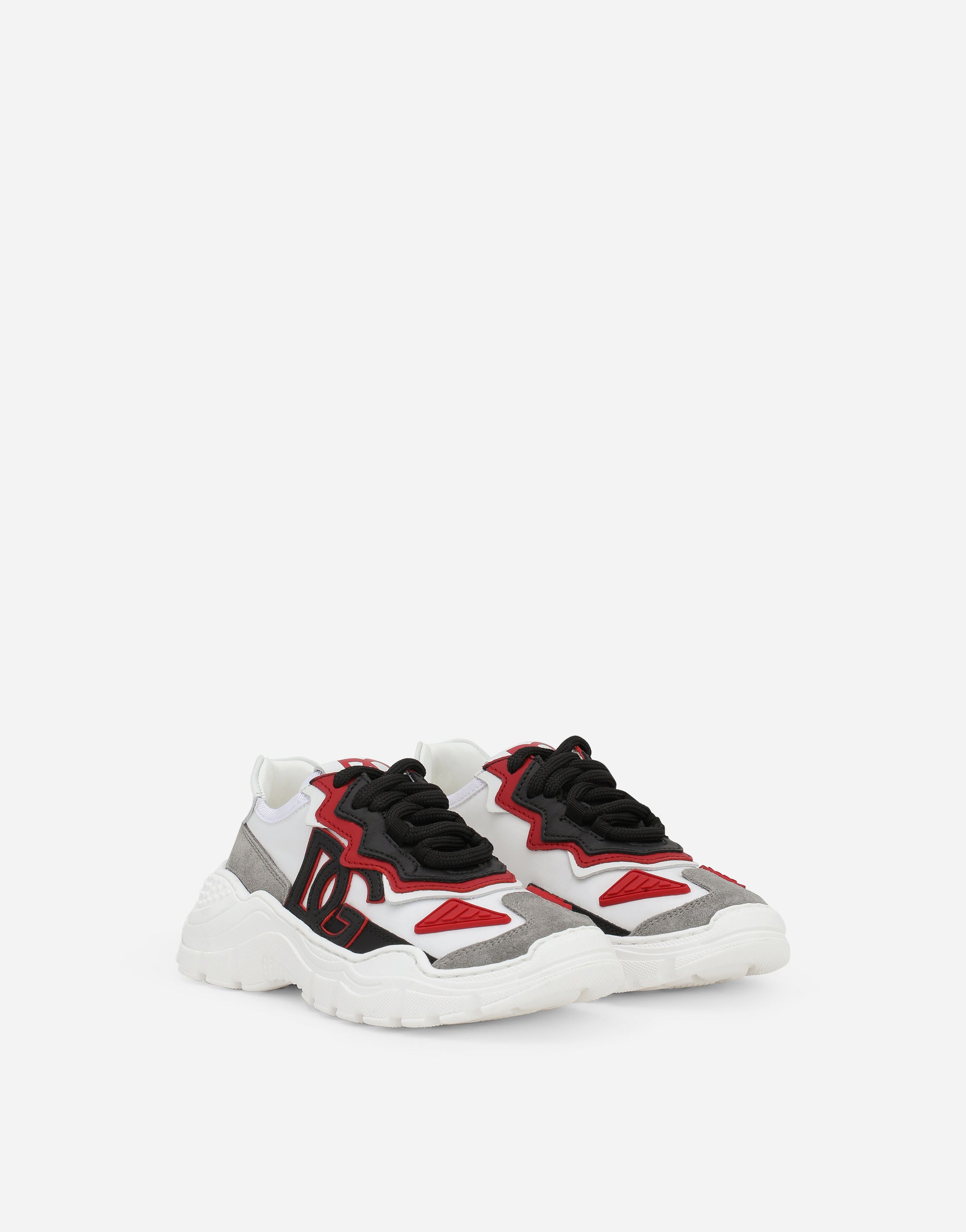 With Joy Therapy, Dolce&Gabbana is enhancing joy, color and a desire to smile. The inspiration and energy of the 80s give life to a joyful, fun and positive collection that has been revamped in a new contemporary light. Neon yellow, hot pink and bright orange, vibrant hues and luminous color block accents revere a desire to celebrate and express yourself through the game of fashion. These Daymaster sneakers are perfect with casual, sporty looks and perfect for anyone looking for everyday comfort. • Nylon upper with suede and rubber inserts and the DG logo patch • Tubular laces • Tongue with branded calfskin label • Contrasting branded heel cup • Breathable calfskin footbed with heat-stamped logo • Extra-light rubber outsole and bottom assembly • Made in Italy