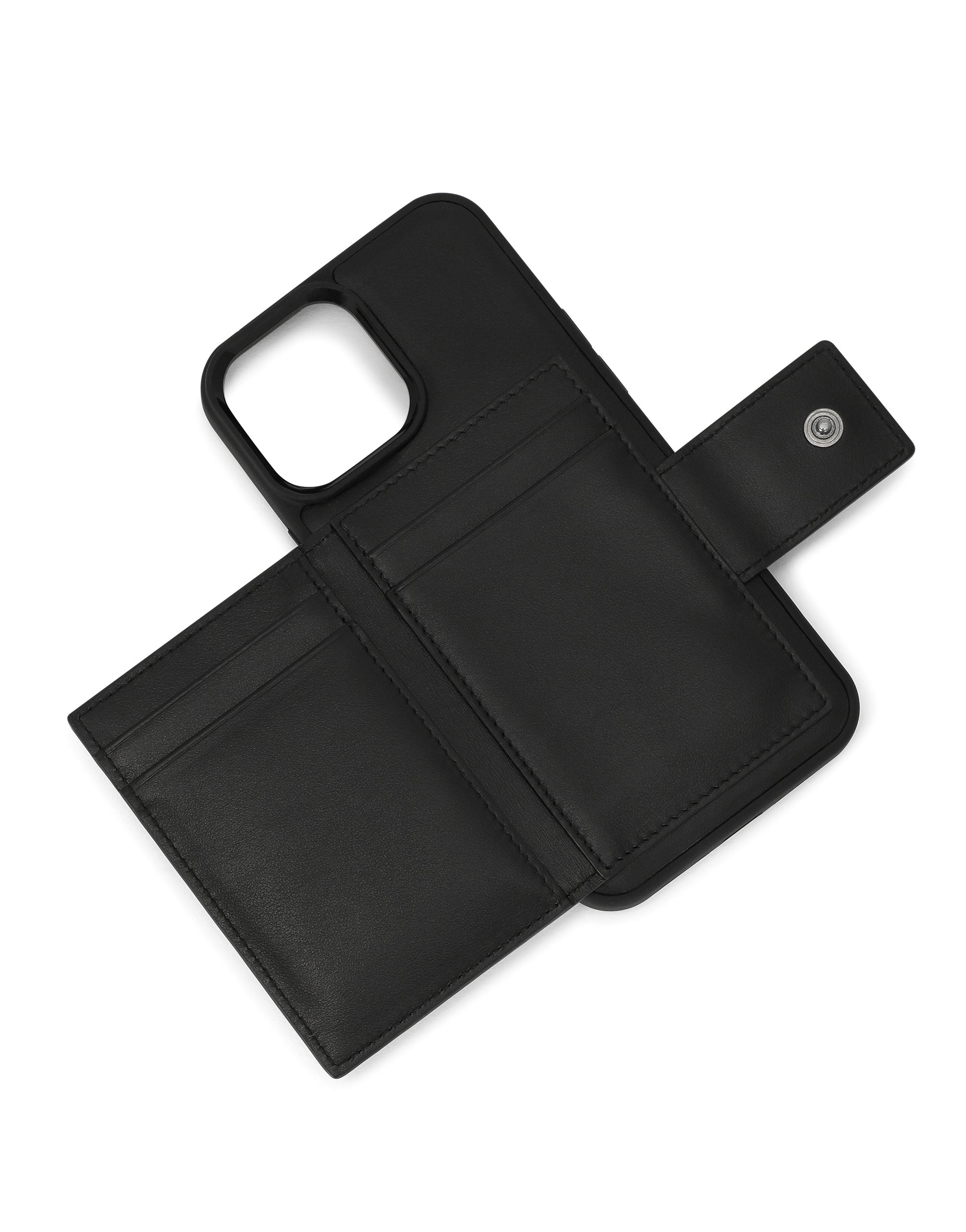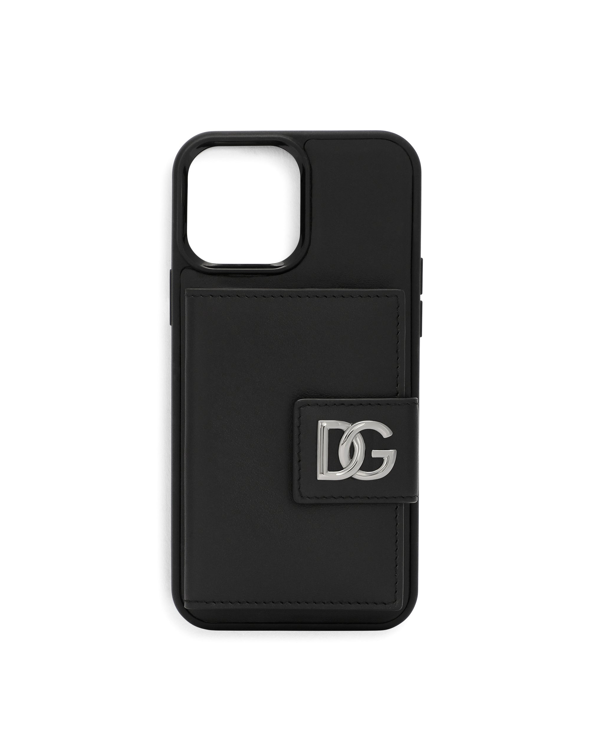 This iPhone 13 Pro Max cover comes in calfskin. It features an integrated card holder in the panel and the ruthenium-plated DG logo. • Four card slots • Openings for the camera and side buttons • PVC shell • Measurements: 16 x 8 x 1.5 cm • Made in Italy