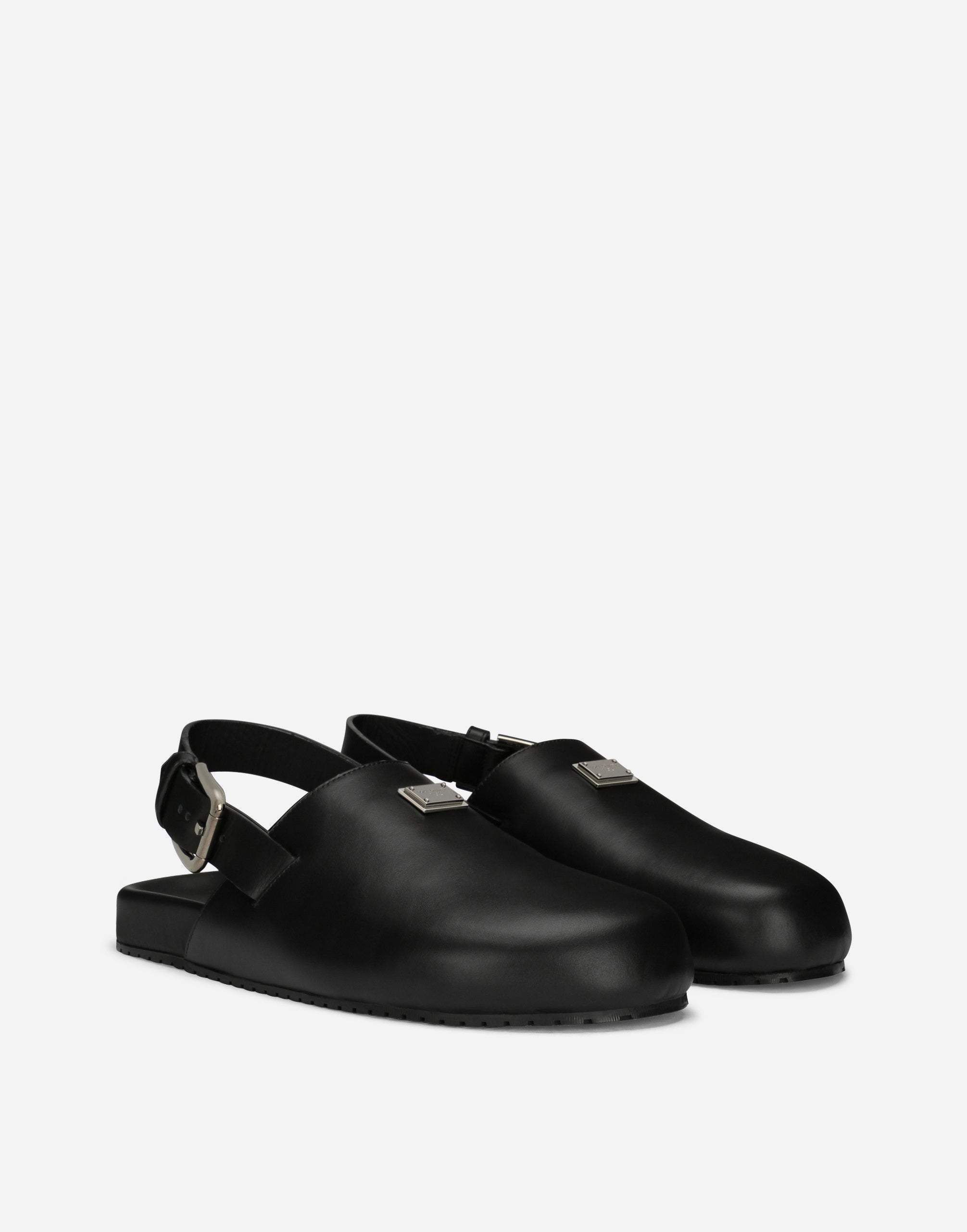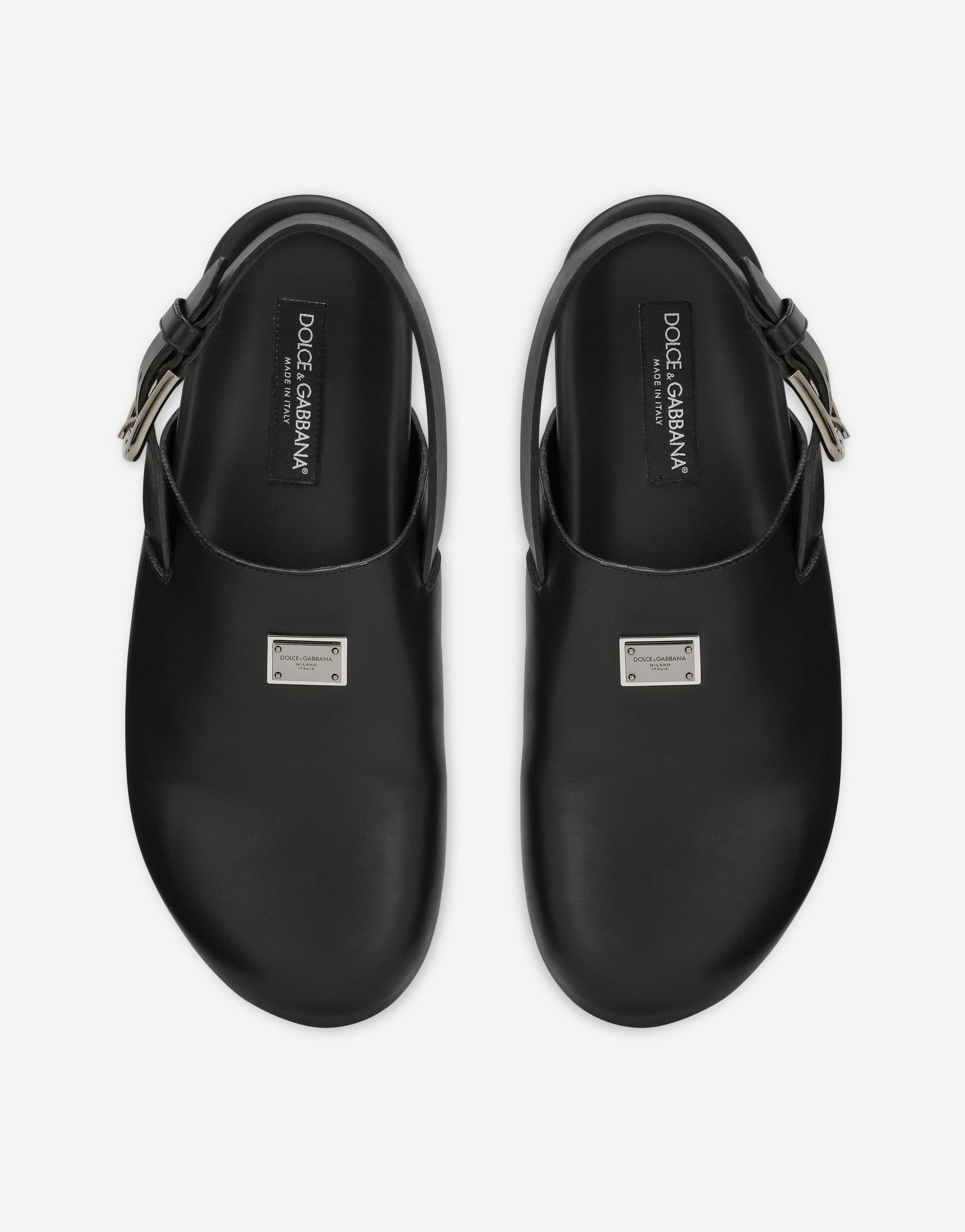 Versatile and contemporary, the new mules from the D.G. Day line come in calfskin with a branded tag. Calfskin mules embellished with ruthenium-plated metal logo tag: • Black • Adjustable calfskin strap • Calfskin footbed with branded label • Branded rubber sole • Item comes with a branded dust bag • Made in Italy
