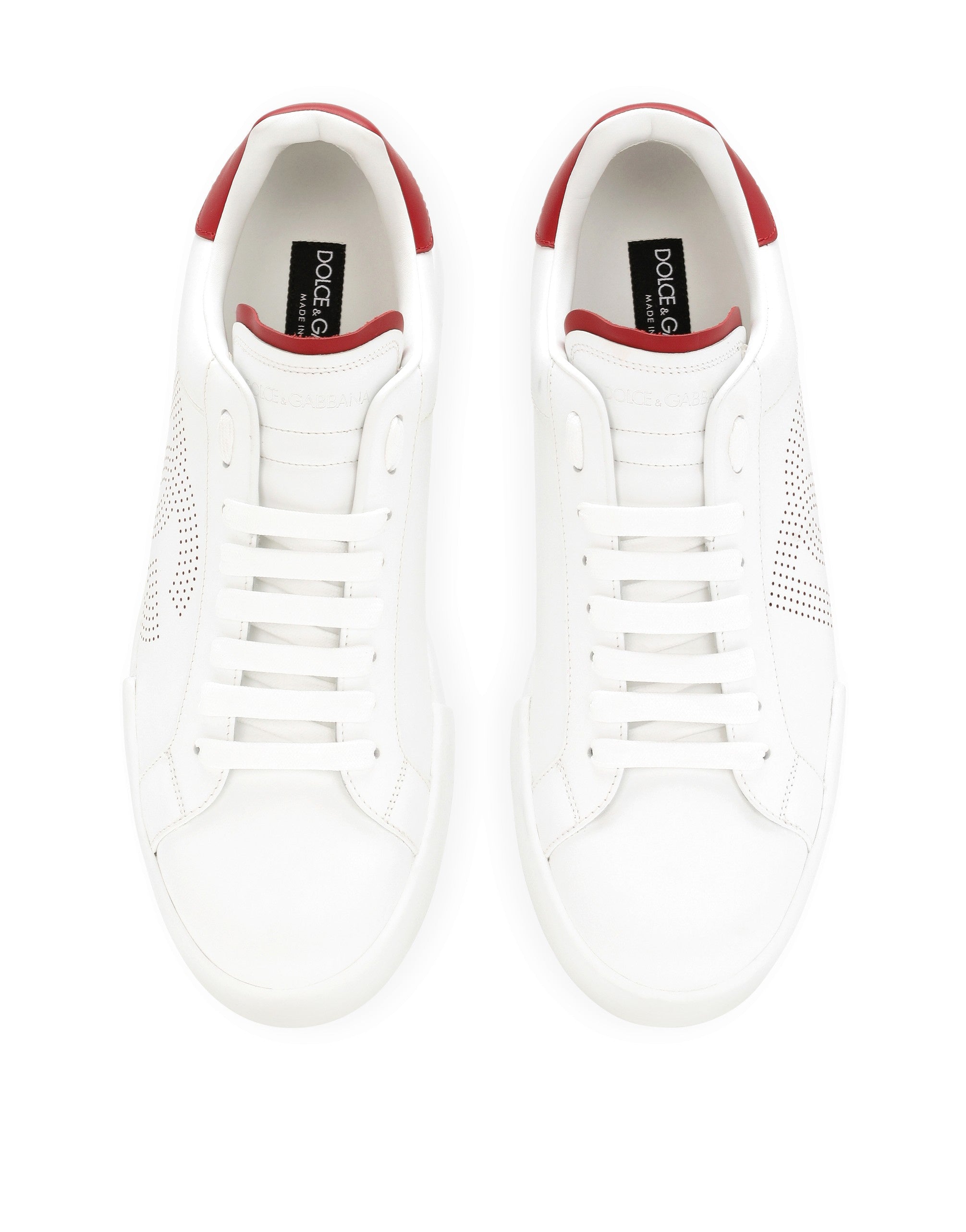 Iconic and timeless, these iconic Portofino sneakers come with new details. Featuring the perforated DG logo, they come crafted in calfskin. Calfskin Portofino sneakers: • White • Contrasting calfskin heel cup with DG logo • Flat laces • Calfskin tongue with debossed logo • Calfskin footbed with branded label • Rubber bottom assembly and branded sole • Item comes with a branded dust bag • Made in Italy