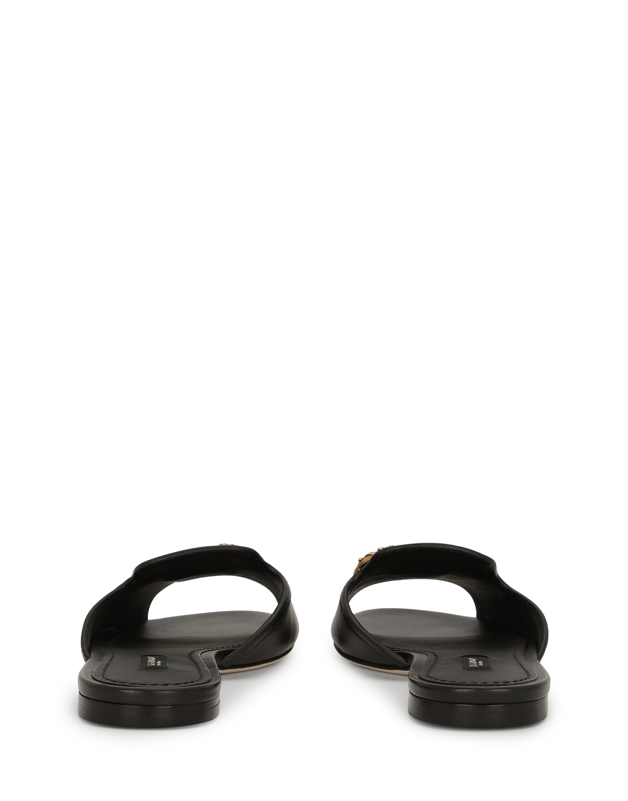 Bianca line calfskin sliders with DG AMORE logo applied to the upper: • Calfskin upper • Goatskin insole with logo-marked label • Logo-marked leather sole • Made in Italy External composition: 100% Calfskin Internal composition: 76% Goatskin 24% Calfskin