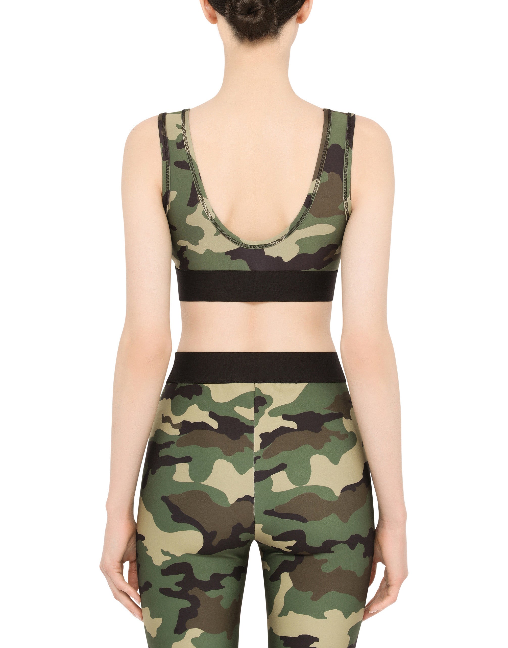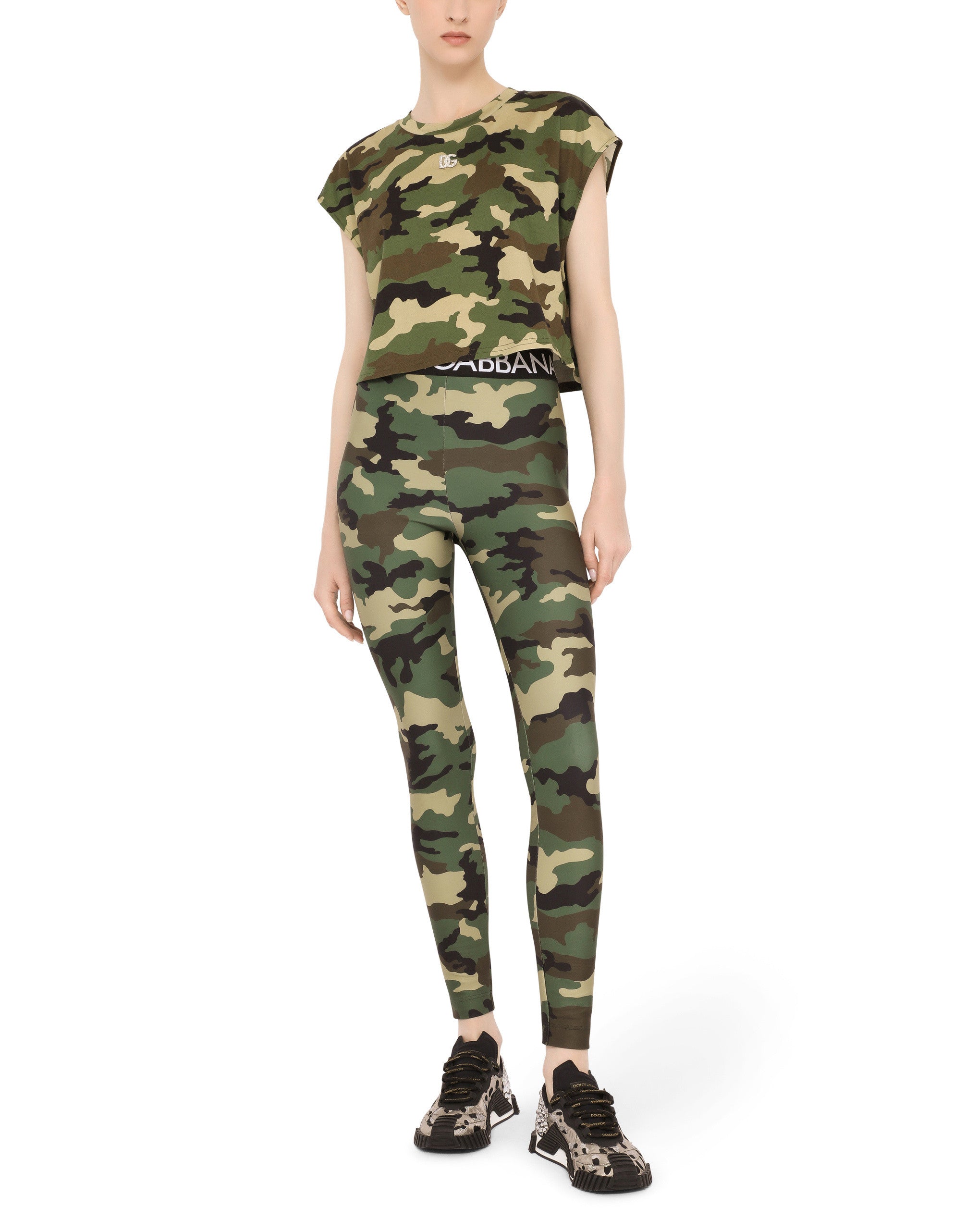 In this collection Dolce&Gabbana is rewriting the rules of fashion, women and modernity and infusing it with joy and optimism, creatively merging textures, colors and styles in a modern way and drawing inspiration from the 2000s. This top flaunts an updated camouflage print that has become a question of styling and not of concept, merging in a pleasant mix and match with the rest of the collection to give you glamorous and contemporary looks. • Round neck • Sleeveless • The piece measures 31 cm from the rear collar seam on a size IT 40 • The model is 175 cm tall and wears a size IT 40 • Made in Italy