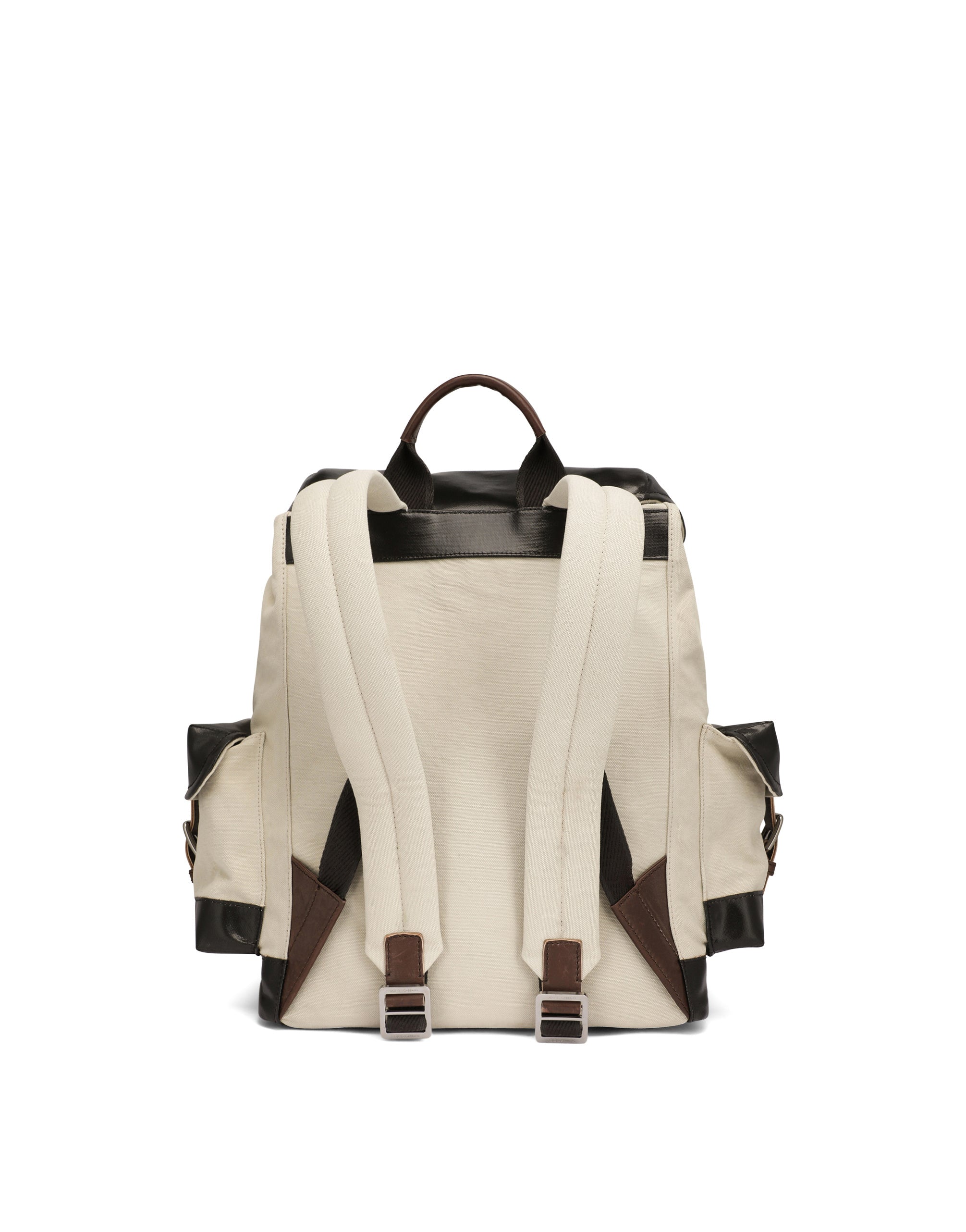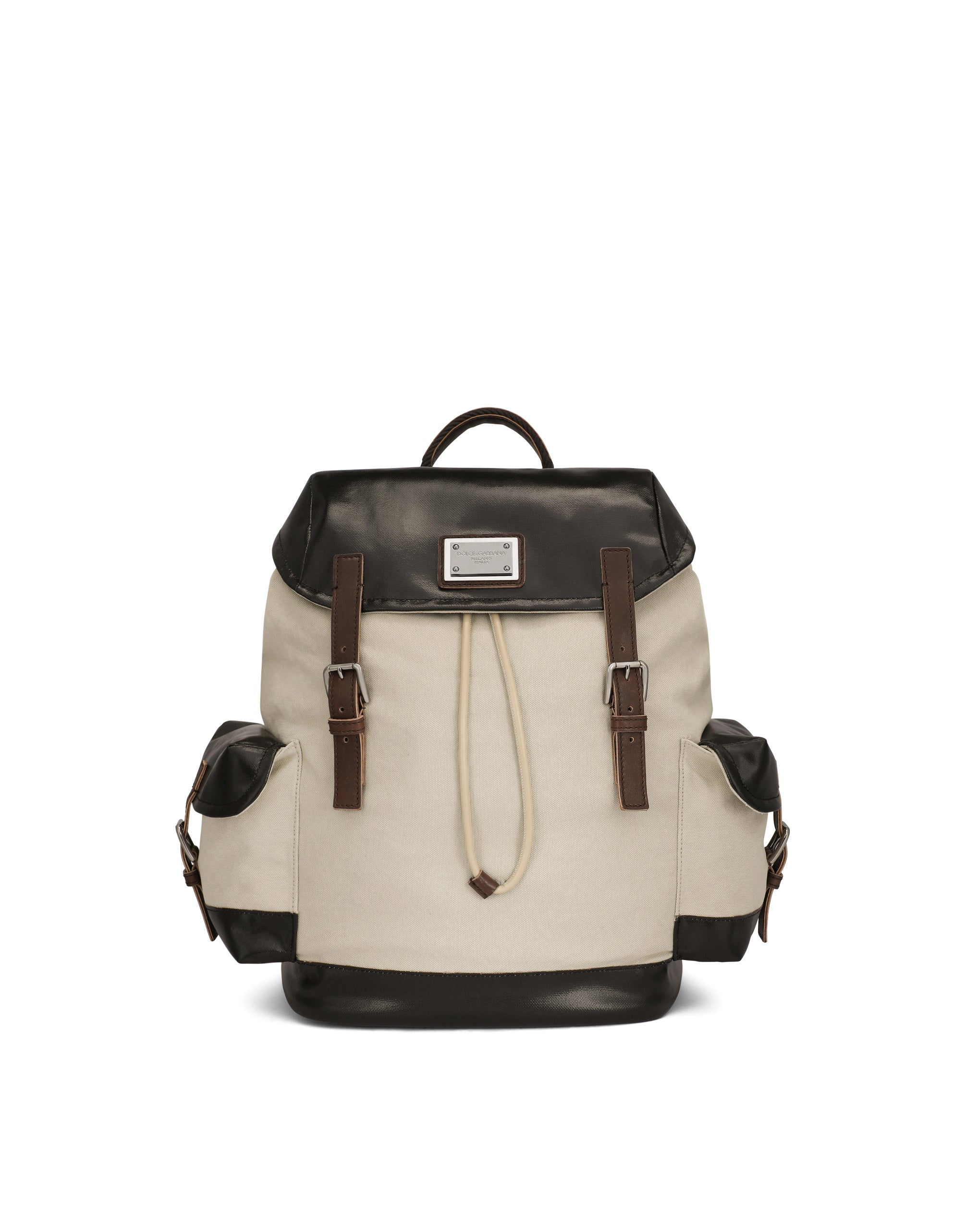 The “Re-Edition” fashion show is an evocative journey back to the brand’s origins, where the past and present meet to give life to an innovative vision and interpretation of our archives. This canvas backpack features calfskin details and the ruthenium-plated metal tag with logo: • Double fastening with adjustable calfskin straps, a top flap and a drawstring • Side pocket with adjustable calfskin straps • Adjustable canvas shoulder straps with calfskin details • Inner pocket with zipper • Item comes with a branded dust bag • Measurements: 43 x 38 x 19 cm • Made in Italy