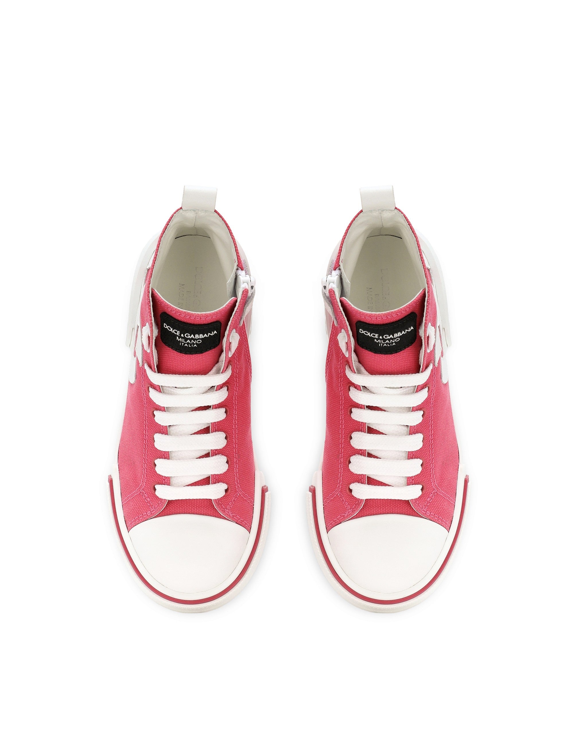 Dolce&Gabbana is giving shape to a timeless closet, composed of iconic pieces that are perfect for everyday wear. The innovative materials and exclusive details reaffirm the brand’s distinctive style. Canvas Portofino Space high-top sneakers with DG logo patch: • Pink • Flat laces • Side zipper • Calfskin footbed with debossed logo • Branded rubber sole and rubber bottom assembly • Item comes with a branded dust bag • Made in Italy