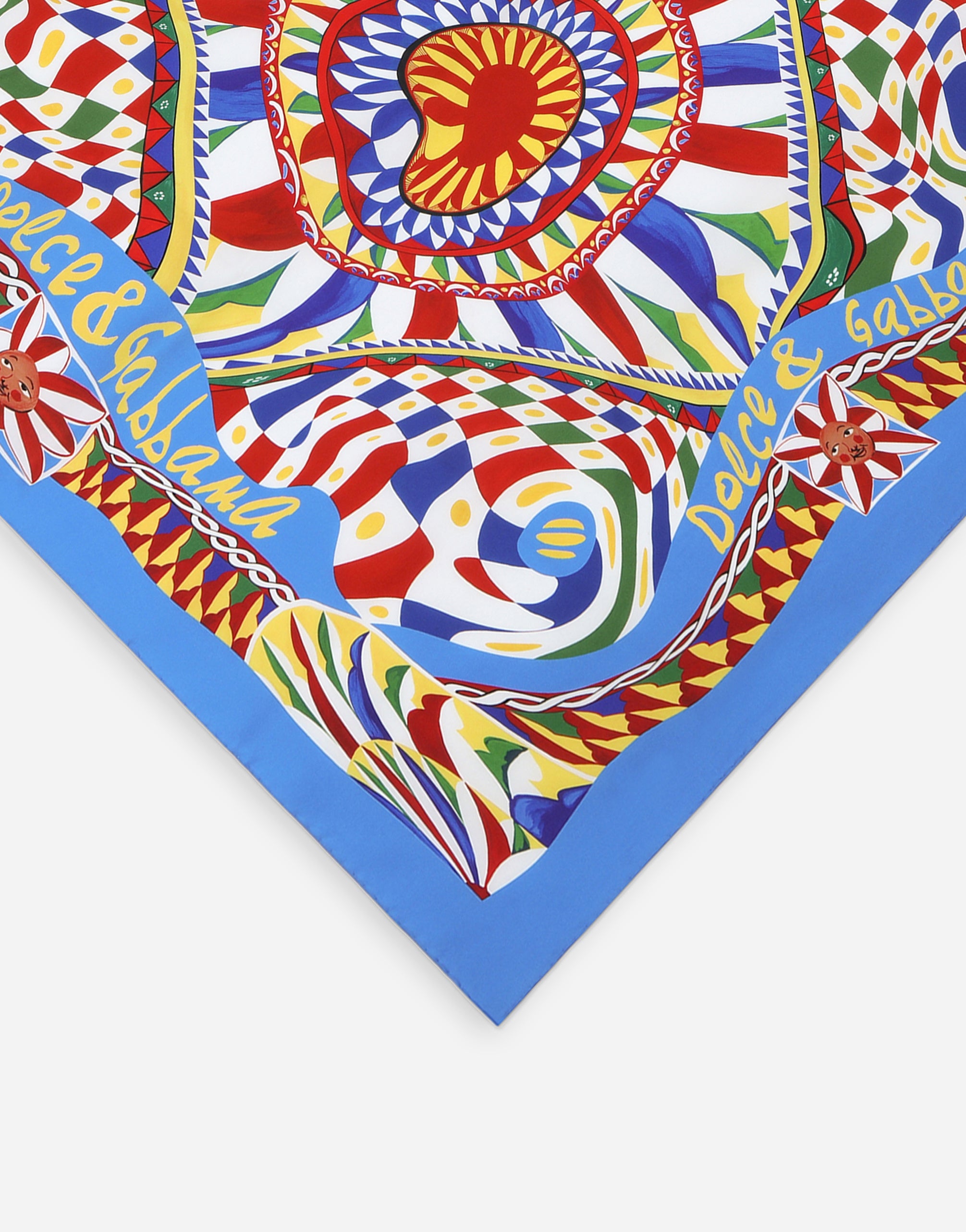Since the very beginning, the style of the Sicilian Carretto carts has been an indelible part of Dolce&Gabbana. The amazement that these marvelous, beautiful works of art inspire when you first see them led our designers to put a fresh spin on the vision behind them. The colors are reworked through the eyes of the provocative and experimental artwork of the ‘60s, resulting in a psychedelic take on the classic Carretto style. Youthful and sophisticated, the resulting mix is breathtaking in its colors. Carretto-print twill scarf: • Multi-colored • Hand-sewn hem • “Dolce&Gabbana” logo • Measurements: 90 x 90 cm • Made in Italy The difference in the print placement that you may find on this product is a feature of Dolce&Gabbana’s “Handmade” pieces. A detail that makes every garment or accessory unique and exclusive.