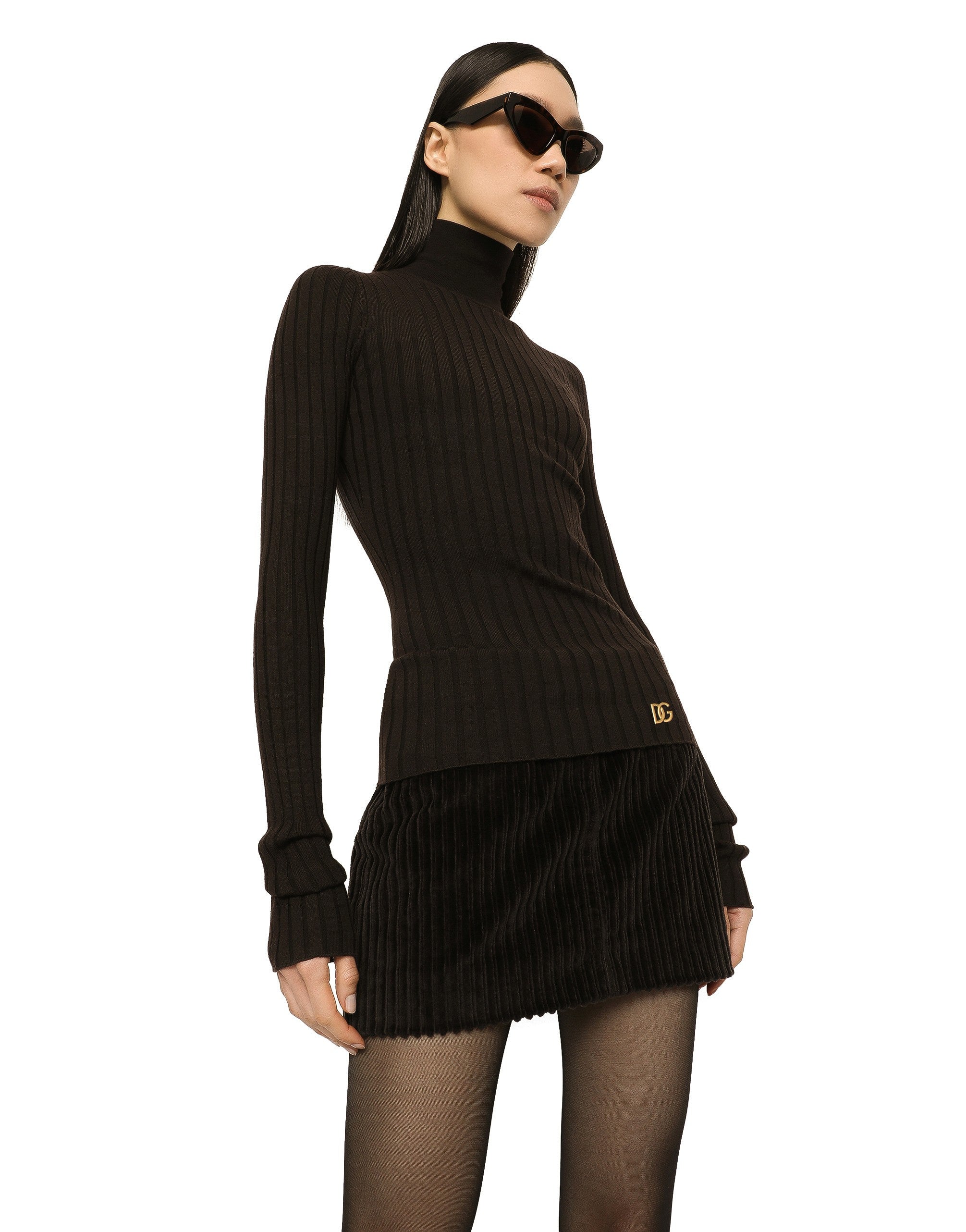 The Cammello collection represents emotion, sensuality, but also balance. Neutral, warm and timeless camel overlays the iconic leopard print, creating a new take on relaxed, enveloping femininity. This world is inhabited by various nuances, ranging from camel to warm orange hues and even various spice colors. A collection that is the veritable expression of casual, urban style, perfect for different occasions - unmistakable, unique and sophisticated. Ribbed cashmere turtle-neck sweater: • Brown • 15-gauge knit • High neck • Long sleeves • Slim fit • The piece measures 60 cm from the shoulder seam on a size IT 40 • The model is 175 cm tall and wears a size IT 40 • Made in Italy