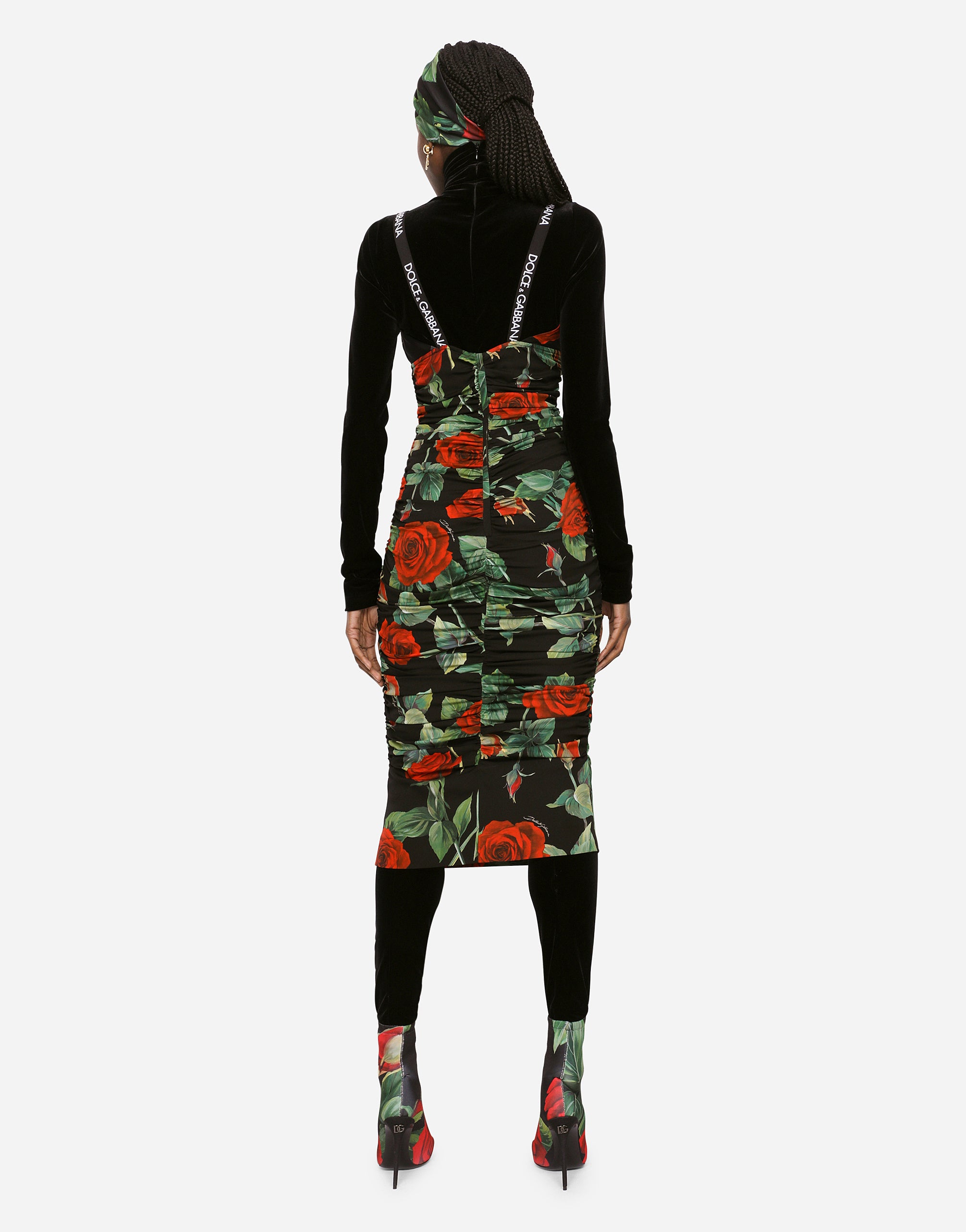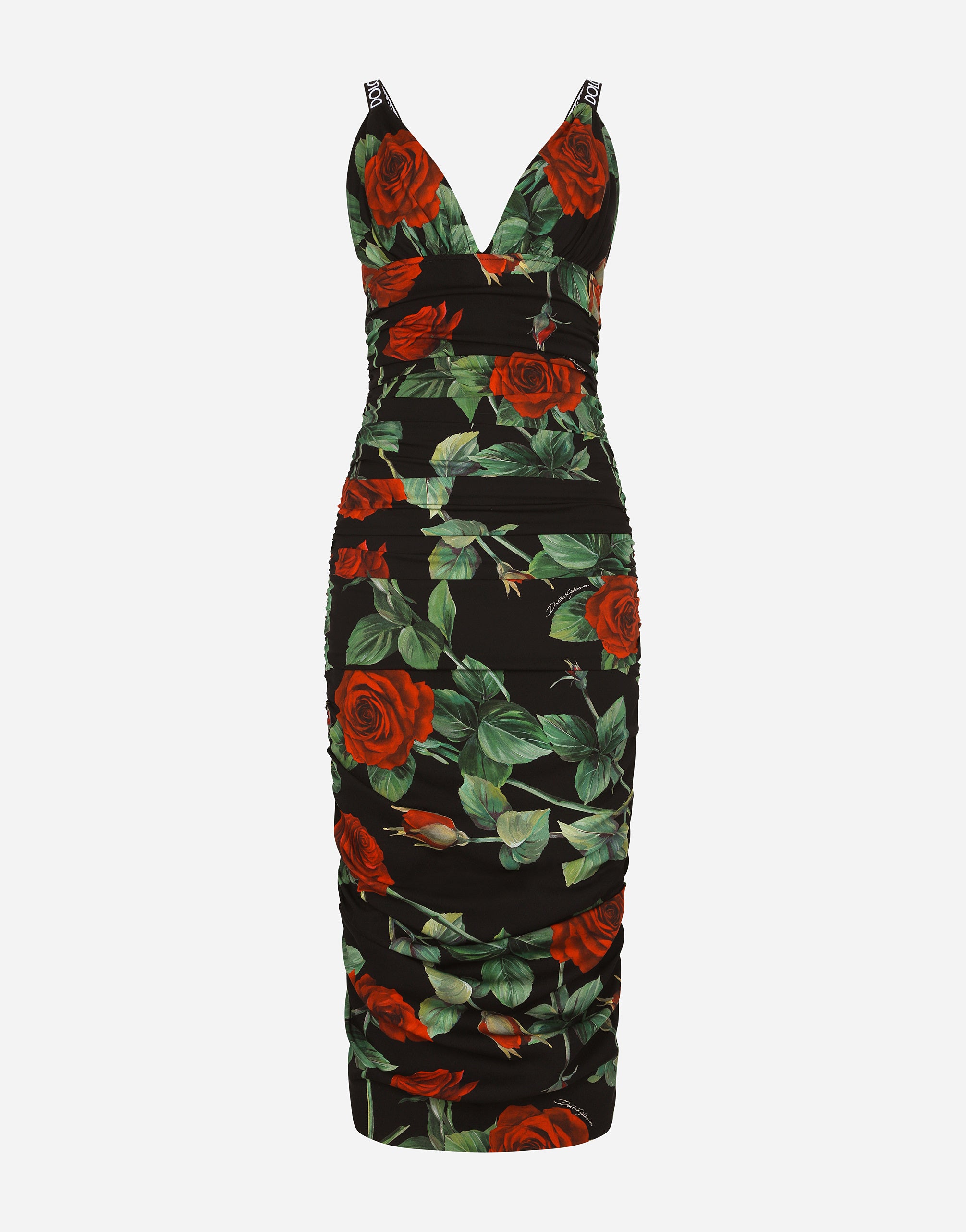 In its collections, Dolce&Gabbana emphasizes all its love for florals and takes meticulous care to celebrate this blooming world in a continuous game of endless renewal. Active, yet sensual pieces made from fine fabrics, such as this silk charmeuse dress with draping and branded stretch straps, become cult pieces for your closet. • Wrap V-neck • Sleeveless with branded adjustable stretch shoulder straps • Unlined • Rear zipper and hook-and-eye fastening • The piece measures 81 cm from the center back on a size IT 40 • The model is 175 cm tall and wears a size IT 40 • Made in Italy
