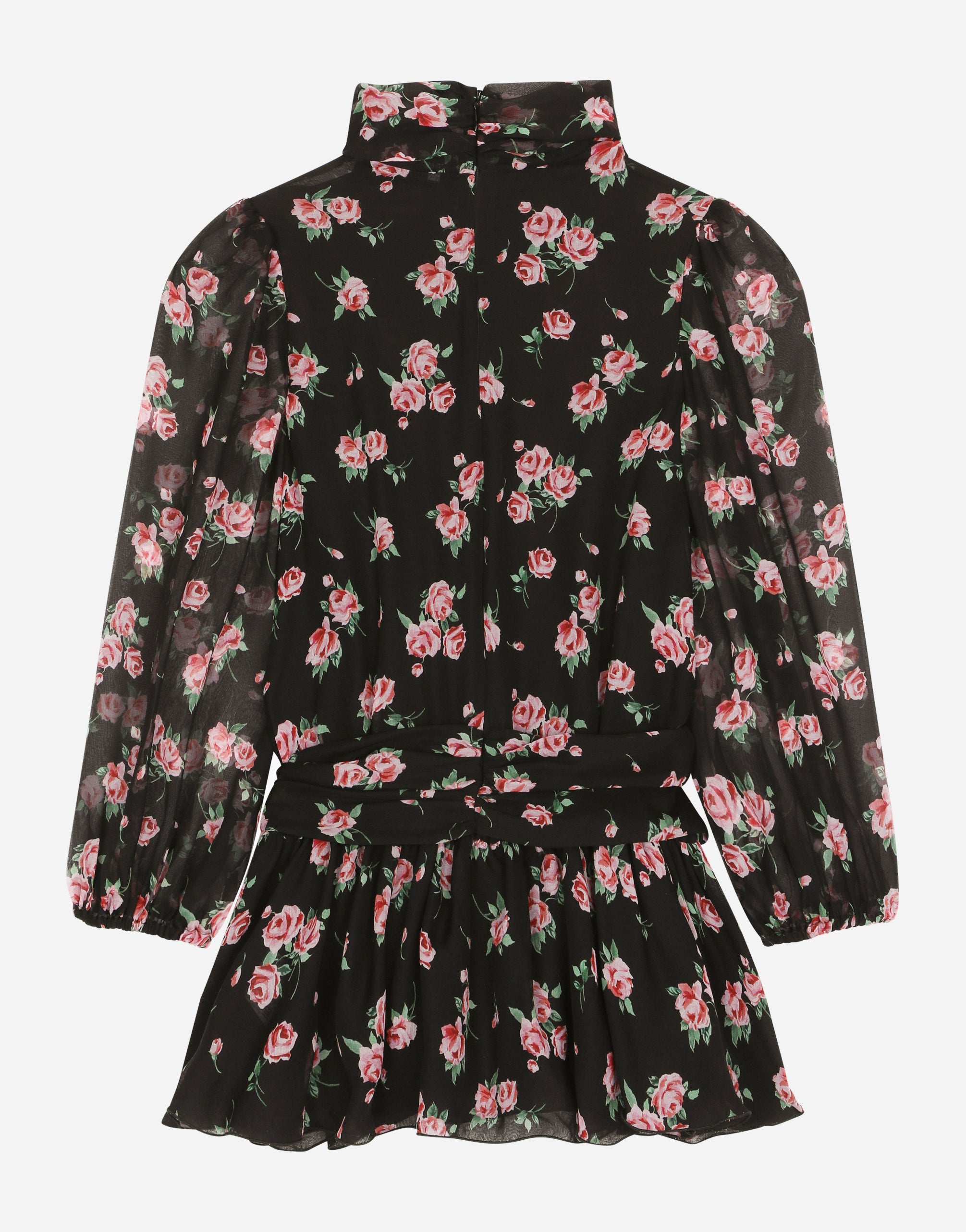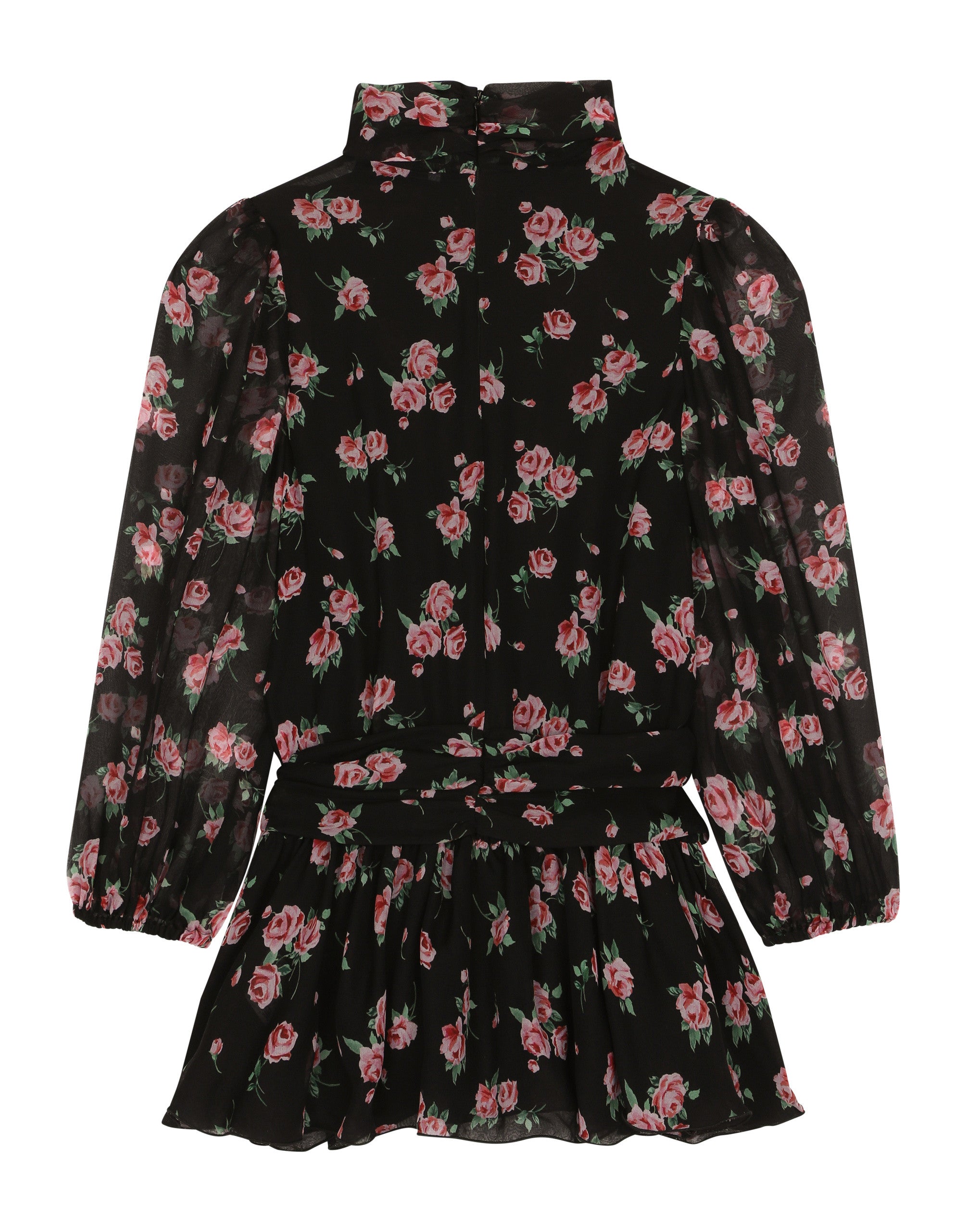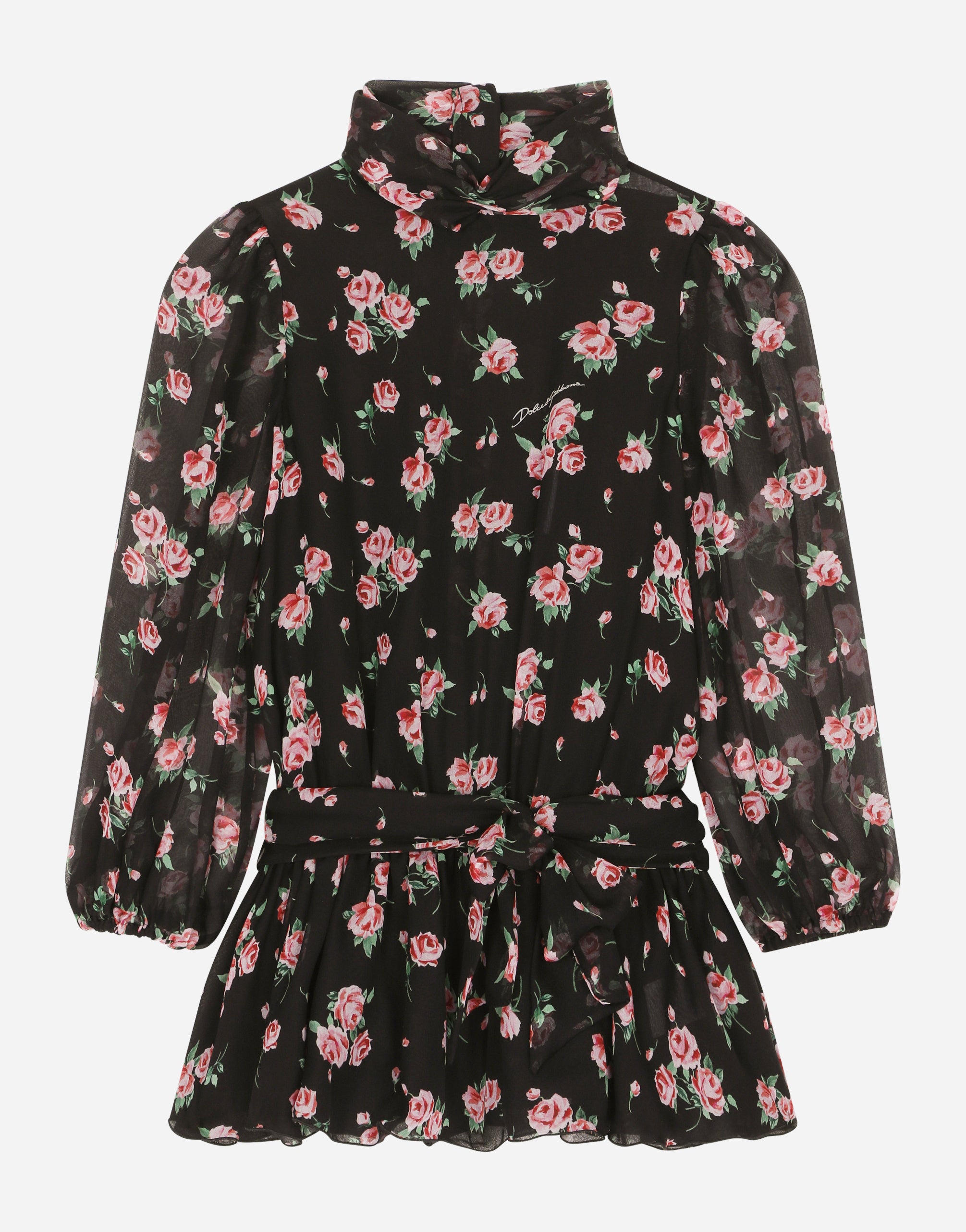 The girl’s Prateria Collection is inspired by the women’s 2001 New Hippy Collection, where the desert and meadows become bohemian and glamorous. Vaguely vintage/grunge looks come made up of volume and special pieces flaunt light printed and solid-color fabric details, smock stitching, corduroy, faux fur and a print distinguished by delicate and joyful multi-colored wildflowers for fun and ironic little girls. Chiffon dress with long sleeves: • Multi-colored • Regular fit • High neck with front tie • Long sleeves with stretch cuffs • Lined • Concealed zipper fastening on the back • Rose print • Gathered drop-waist skirt • Lined • The item in the size 6 years measures 61.5 cm from the shoulder seam • Made in Italy The difference in the print placement that you may find on this product is a feature of Dolce&Gabbana’s “Handmade” pieces. A detail that makes every garment or accessory unique and exclusive.