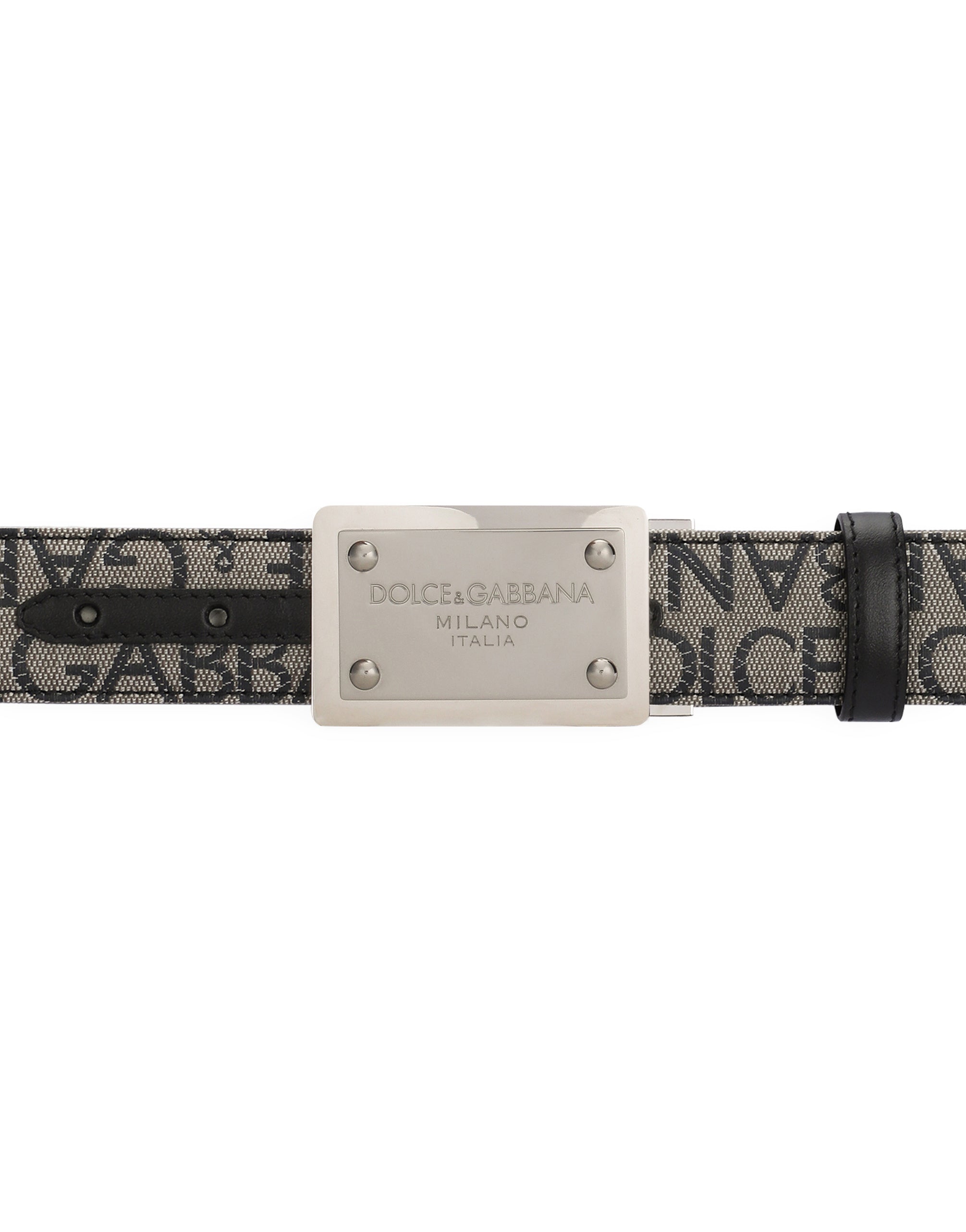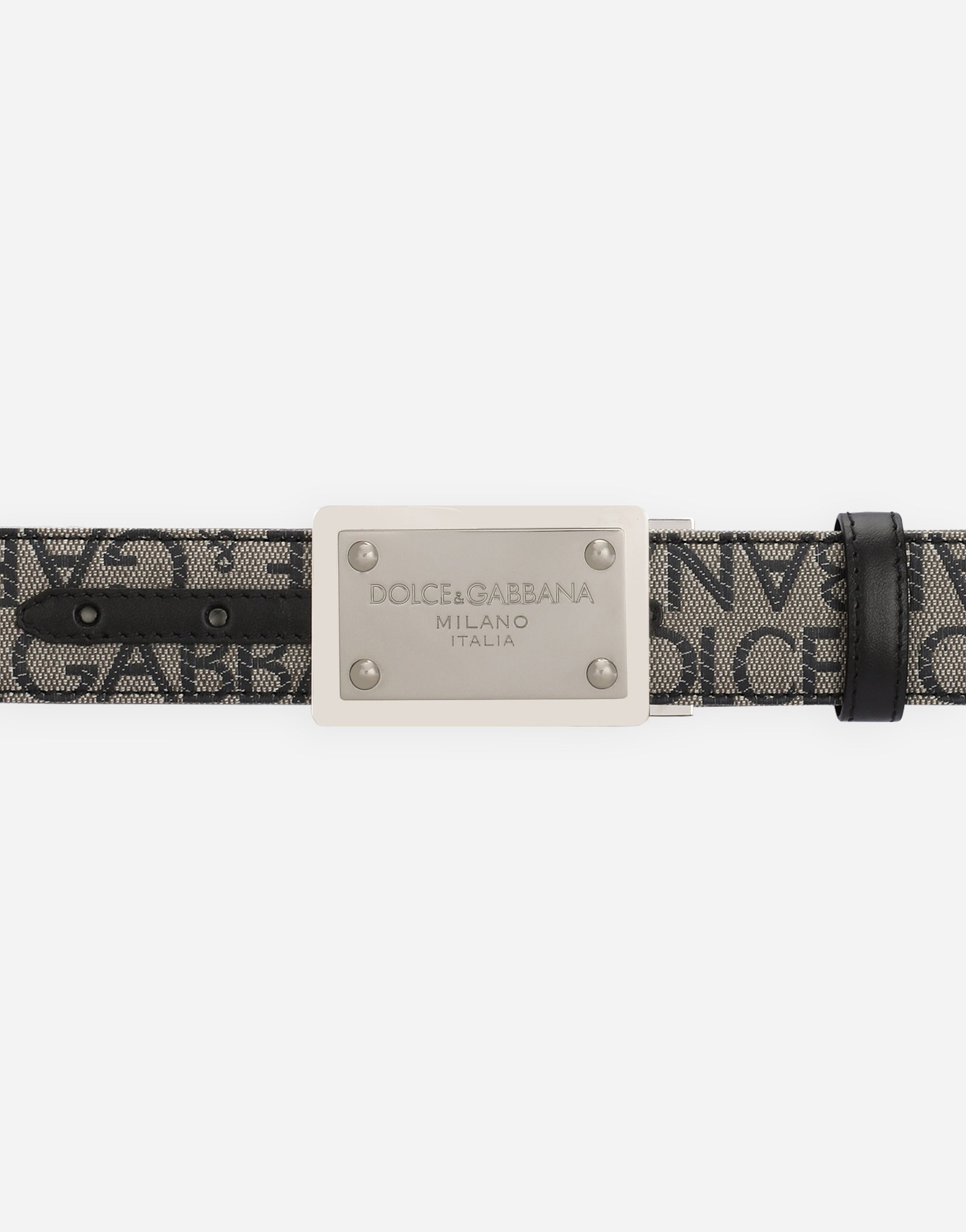Past and present meet to give rise to a vision and an innovative interpretation of our archives. The coated fabric belt features the all-over jacquard Dolce&Gabbana logo. Coated jacquard belt with the all-over jacquard DG logo: • Brown • Branded tag in ruthenium-plated metal • The belt strap is 35 mm in height • Dome popper fastening beneath the buckle and belt loop stop • Made in Italy