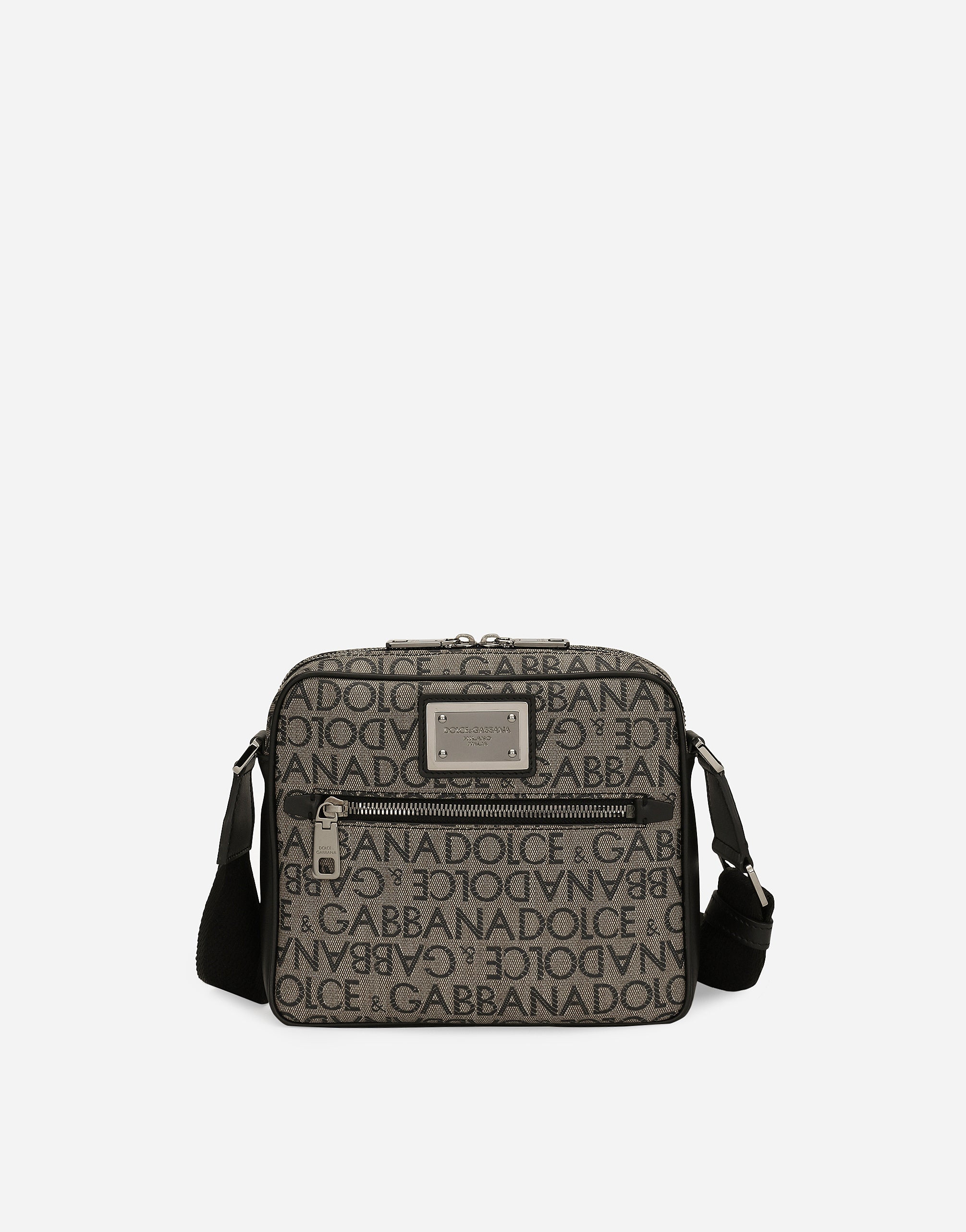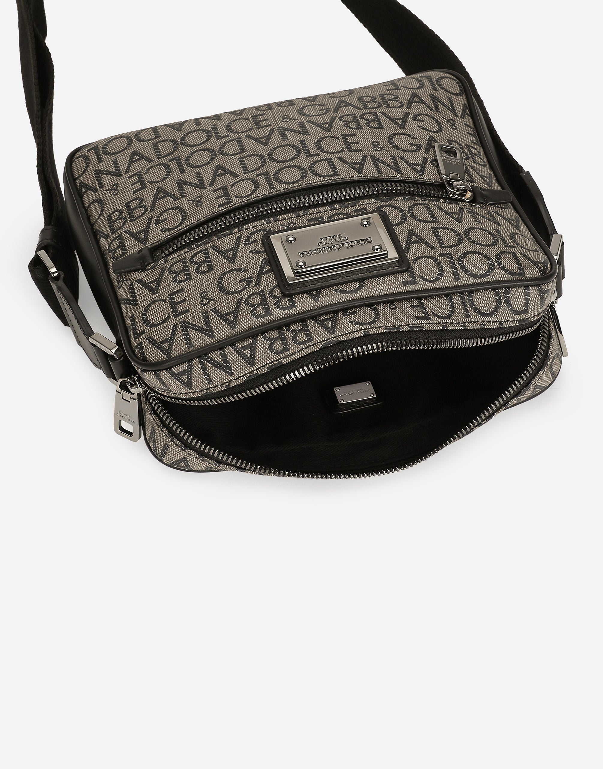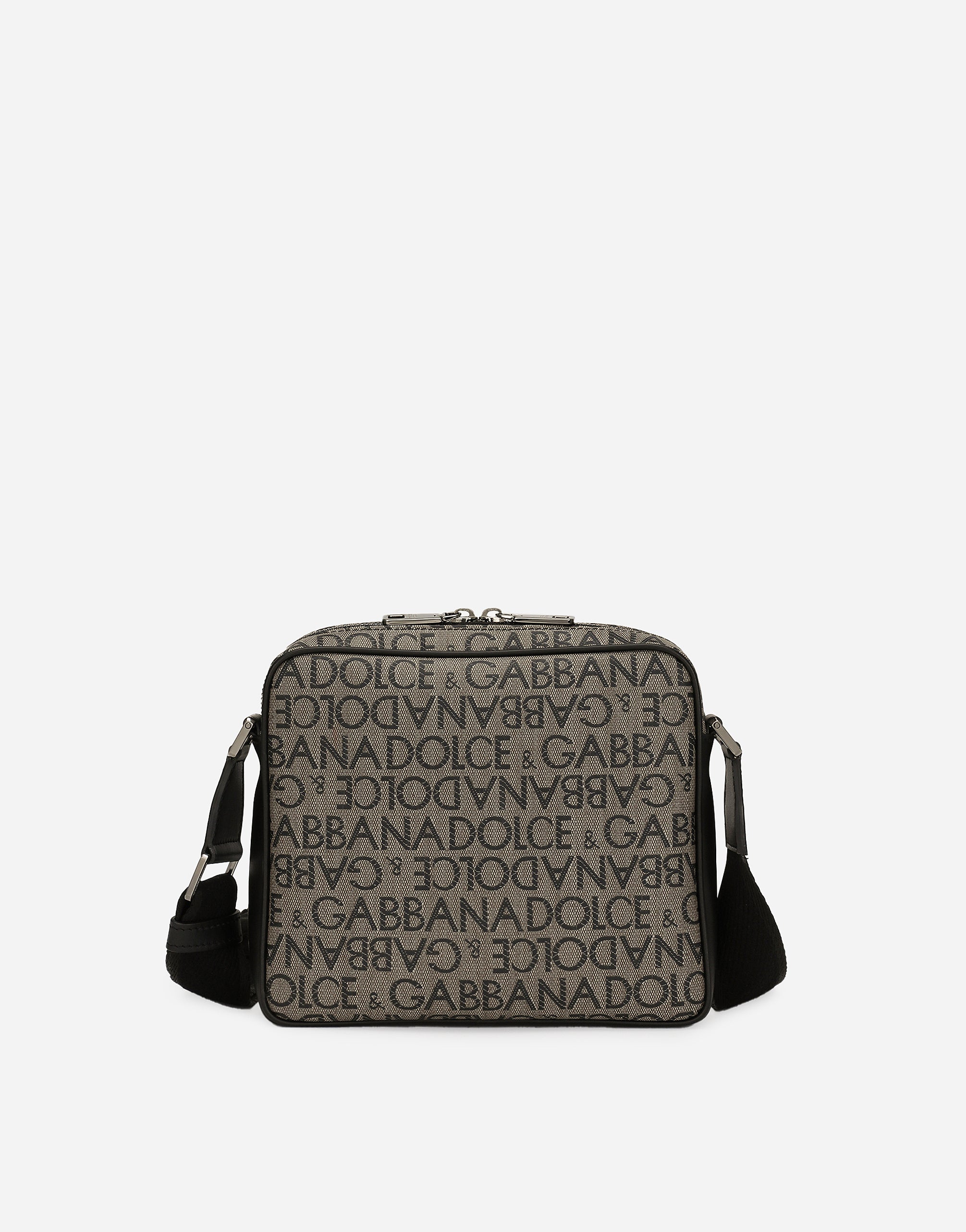 Past and present meet to give rise to a vision and an innovative interpretation of our archives. Practical and versatile, this coated fabric crossbody bag features the all-over jacquard Dolce&Gabbana logo. Coated jacquard crossbody bag with all-over Dolce&Gabbana logo: • Blue • Branded tag in ruthenium-electroplated metal • Top fastening with double zipper and slider with logo • Flat front pocket with zipper featuring branded slider • Adjustable and detachable tape strap with calfskin details • Fabric lining, a zipped pocket with branded slider and two flat pockets • Item comes with a branded dust bag • Measurements: H18 x W21 x D4.5 cm • Made in Italy