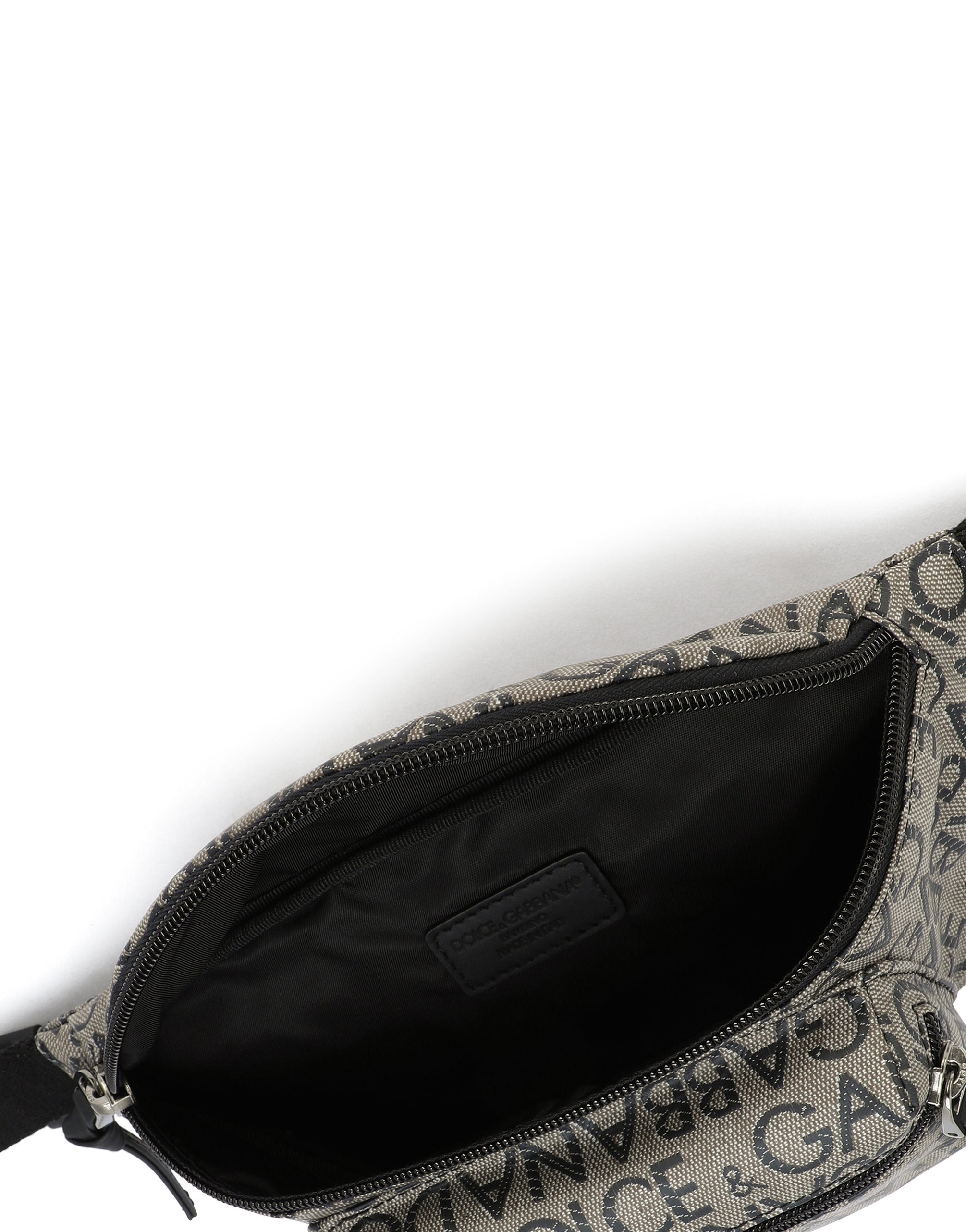 For the Kids Boy Collection, Dolce&Gabbana is drawing inspiration from the Re-Edition fashion show. An evocative journey back to the brand’s origins, where the past and present meet to give life to an innovative concept and interpretation of our archives. A contemporary vision that will allow the younger generations to discover a past rich in creative ideas and personal interpretations. Coated nylon belt bag with logo print: • Zipper fastening and double pocket with logo tag on the front • Adjustable canvas belt • Snap-buckle on the back with DG logo • Shiny ruthenium-plated nickel-free plating • Inner label with heat-stamped logo • Nylon lining • Measurements: 23 x 13 x 8 cm • Made in Italy