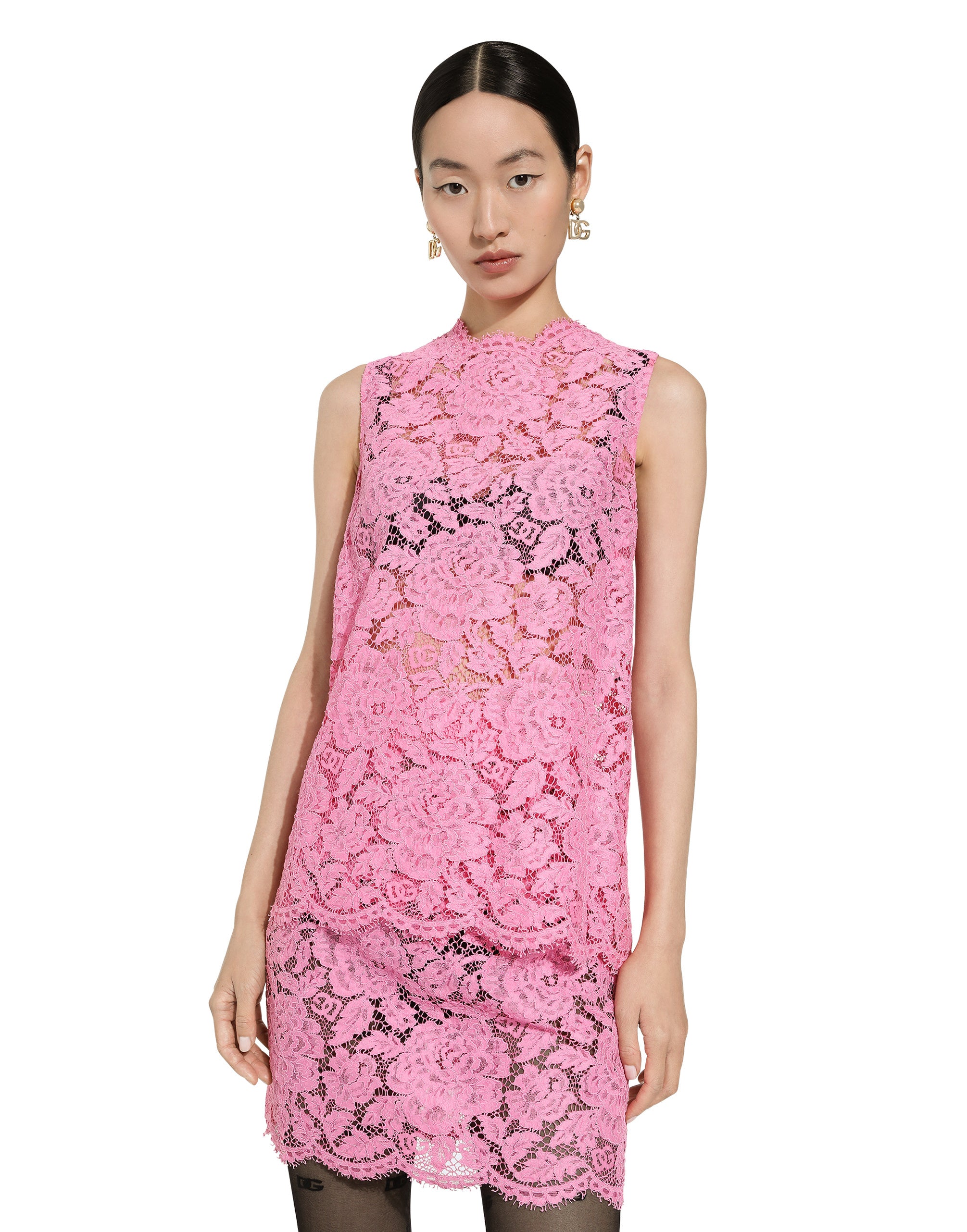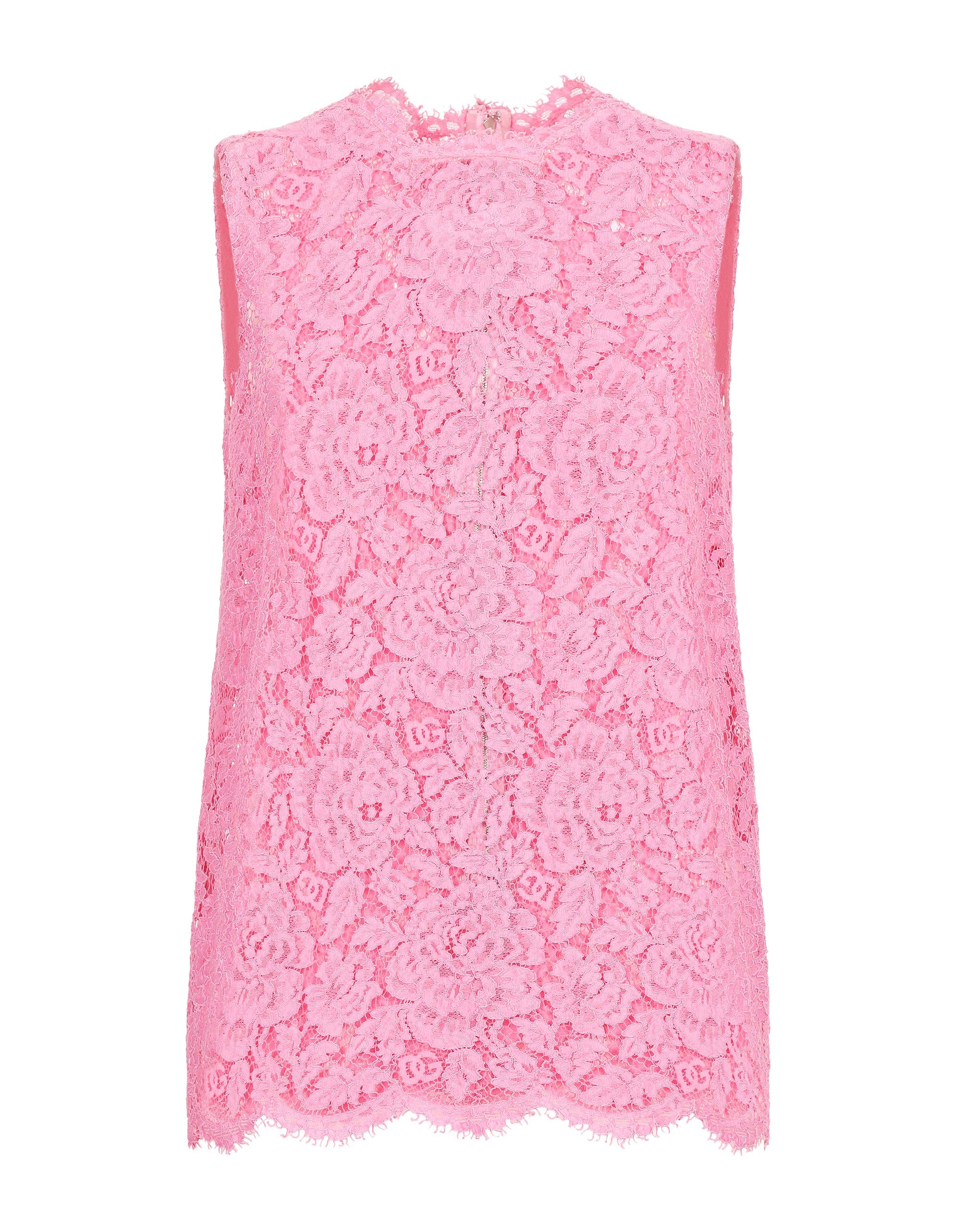 This refined lace top stands out for its elegant details and high-quality craftsmanship, perfect for adding a touch of class to any outfit. Cordonetto lace top with flower: • White • Sleeveless • Scallops brought back to the neckline • Opening at the center back with covered zip • The model is 175 cm tall and wears size 40 IT • Made in Italy