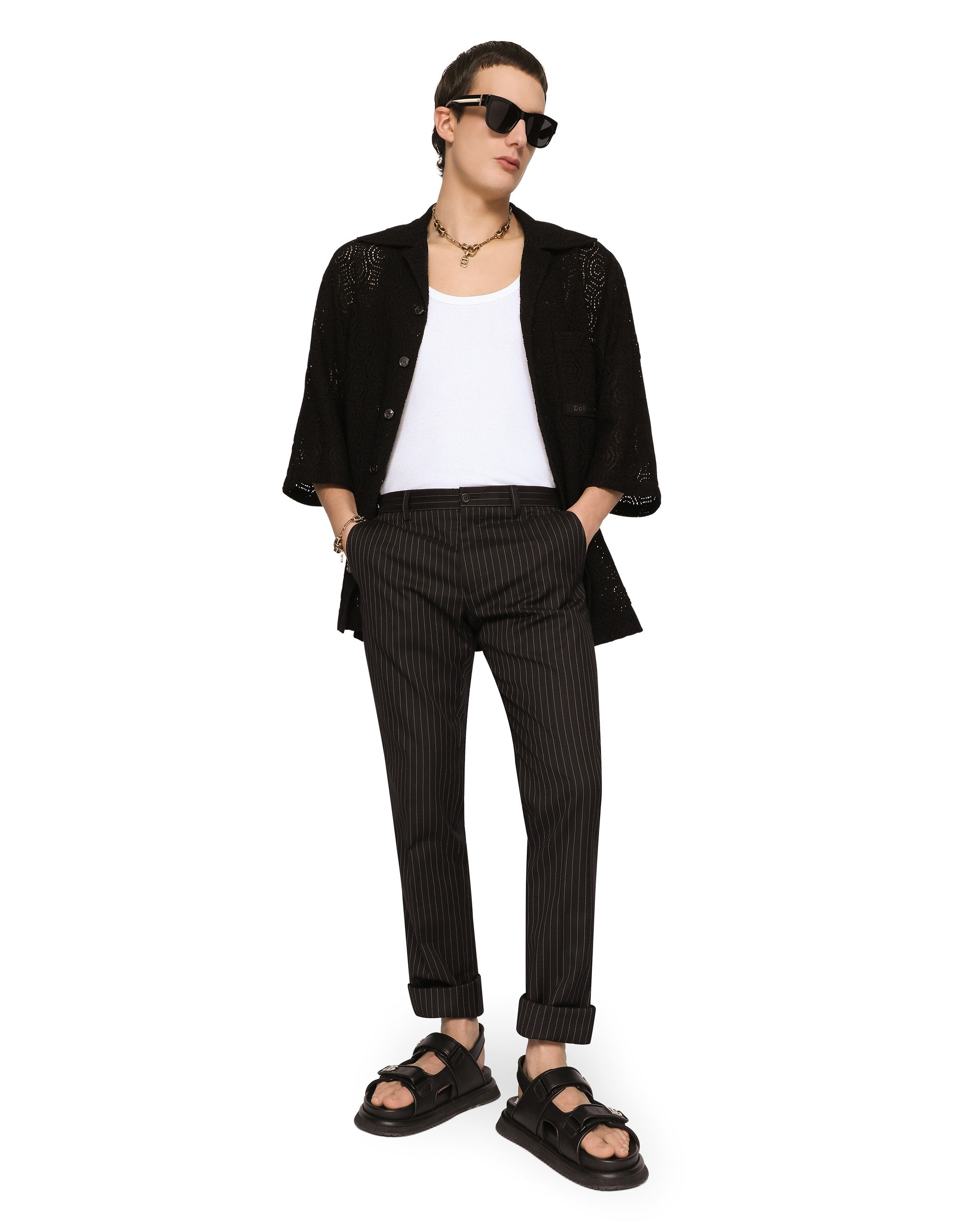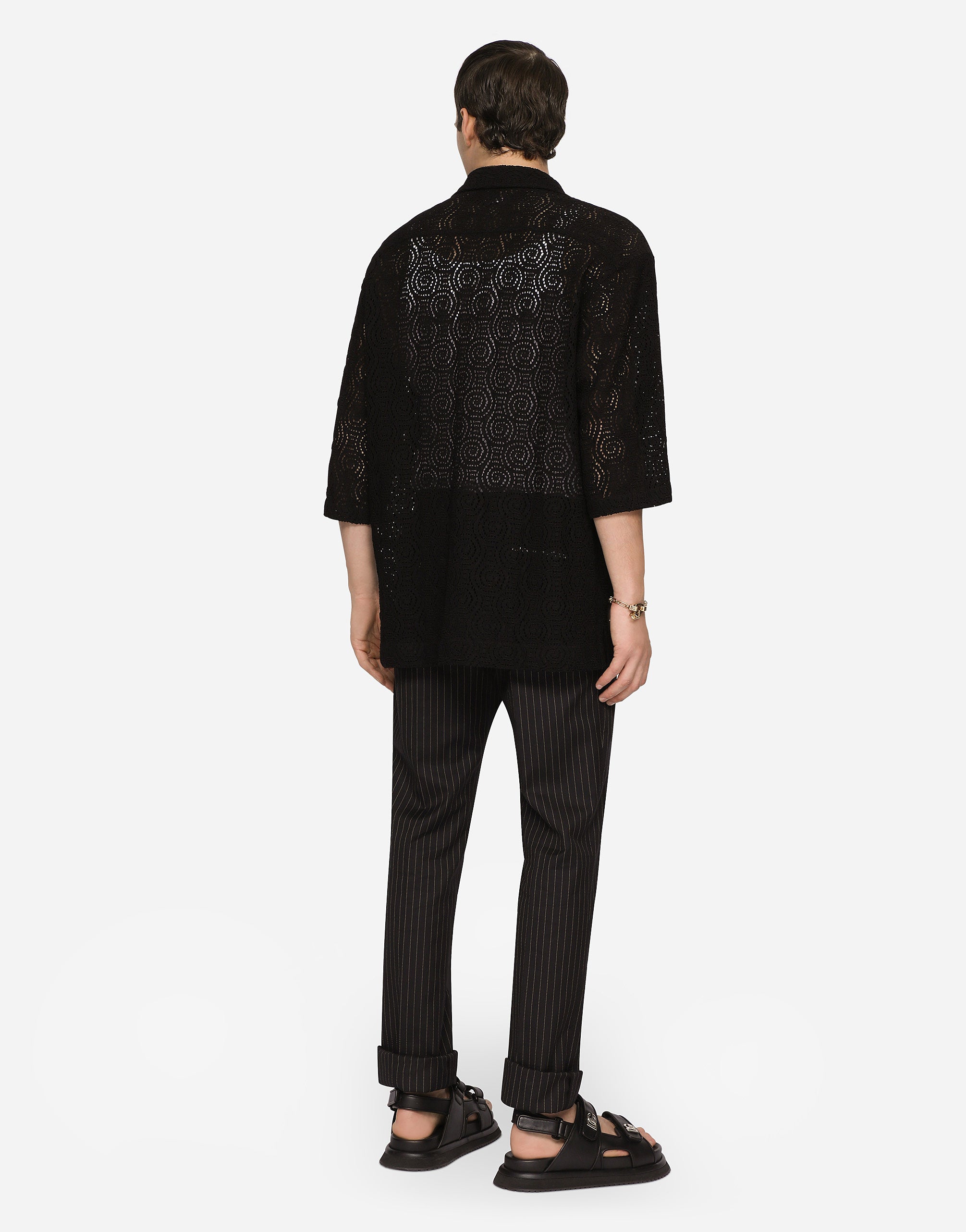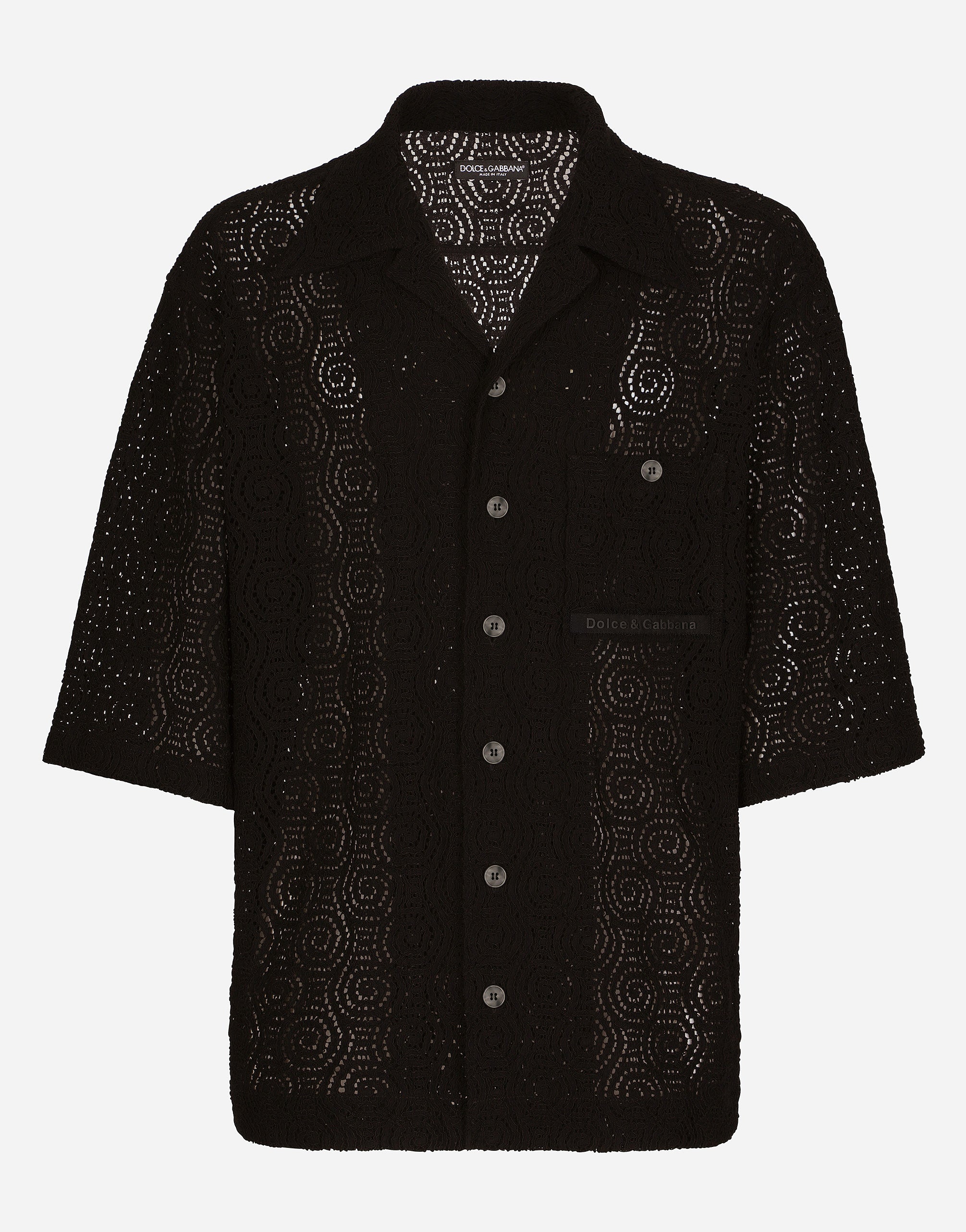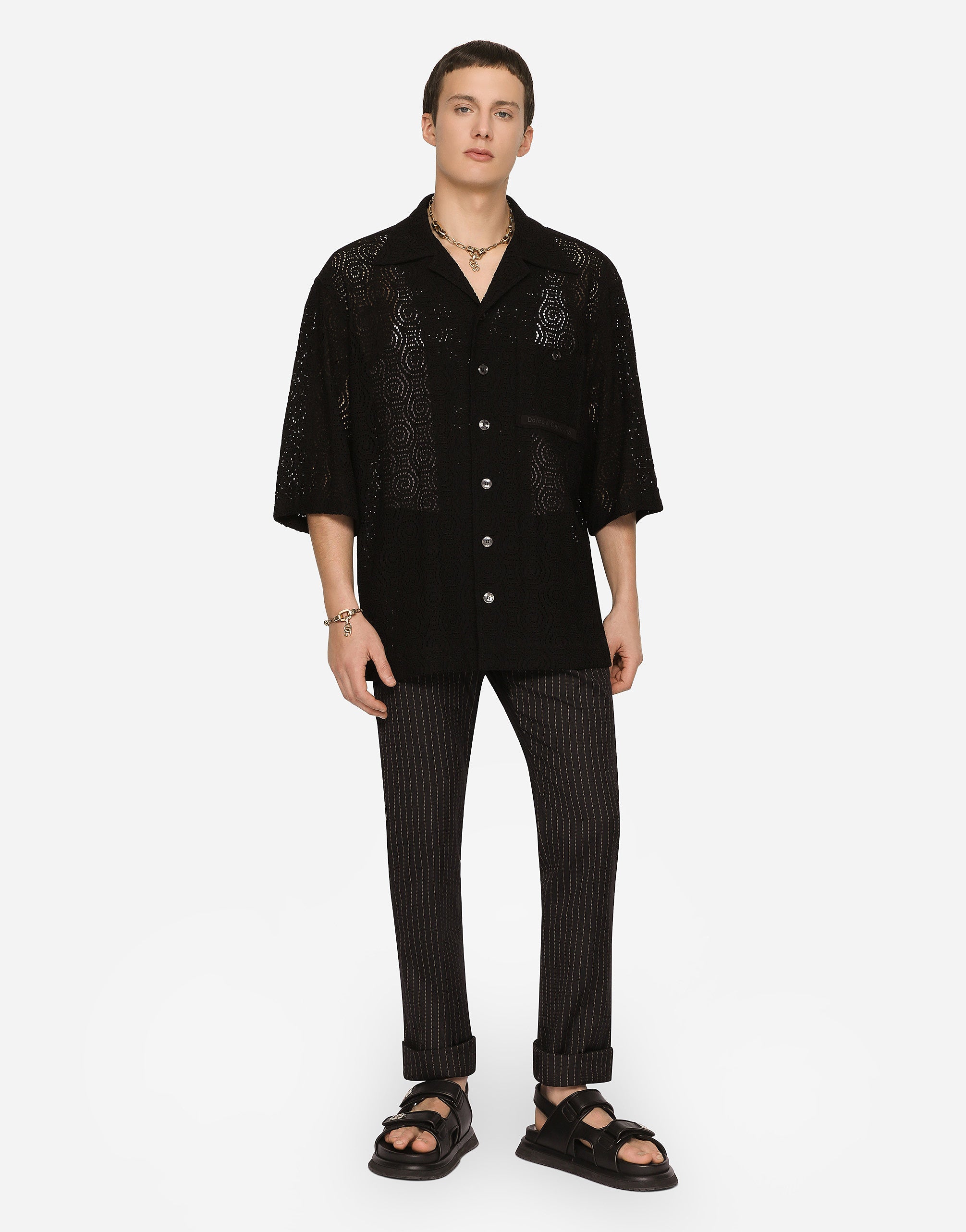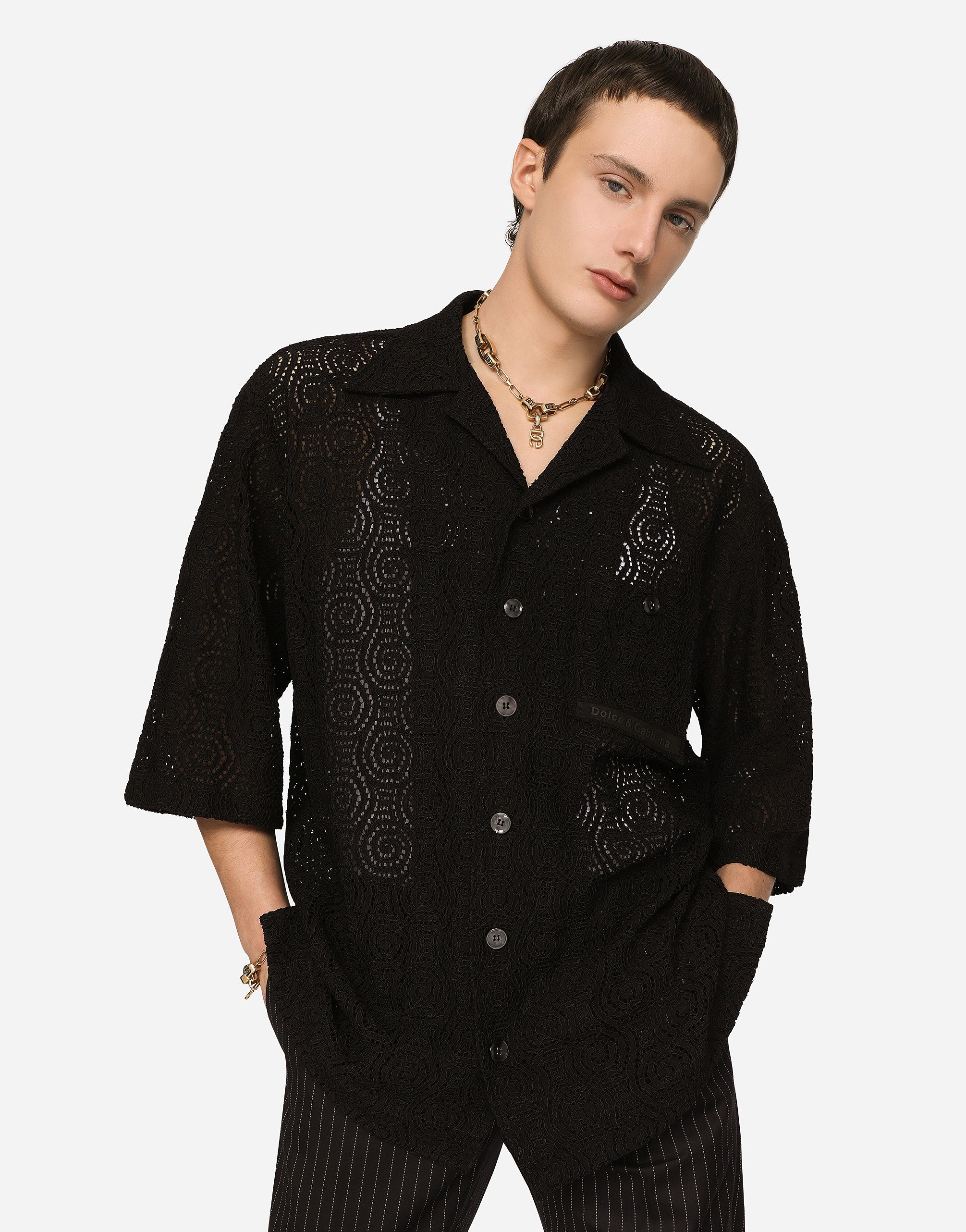 In the “Profondo Sud” Collection, Dolce&Gabbana’s signature aesthetic has undergone a contemporary evolution through the use and reworking of iconic fabrics and details that are reinterpreted in terms of shapes and pairings. The color black comes paired with polka-dot, stripe and DG-logo prints. Cordonetto lace shirt. • Loose Hawaiian fit • Shirt-style collar • Short sleeves • Button fastenings • The piece measures 80 cm from the rear collar seam on a size IT 40 • The model is 185 cm tall and wears a size IT 40 • Made in Italy