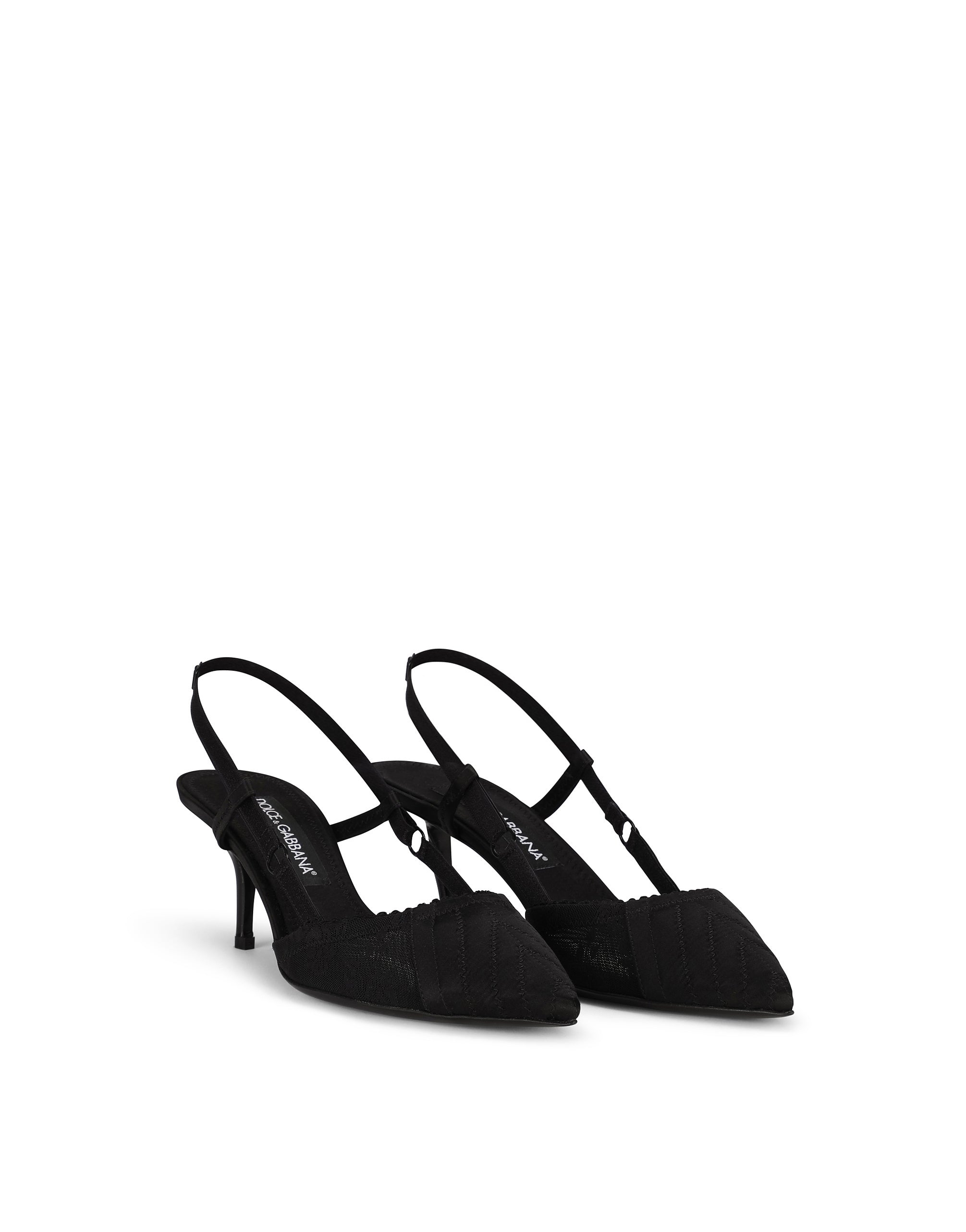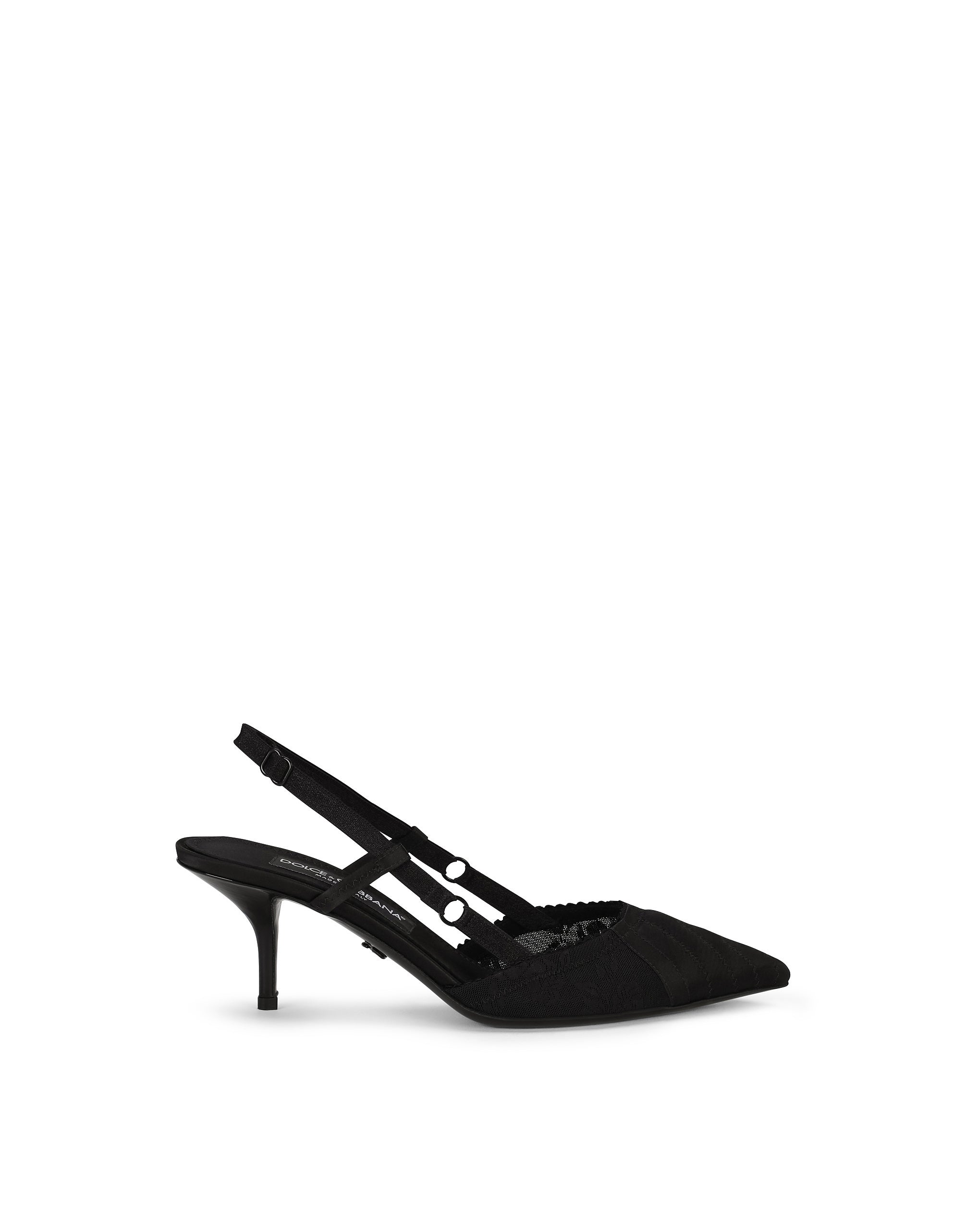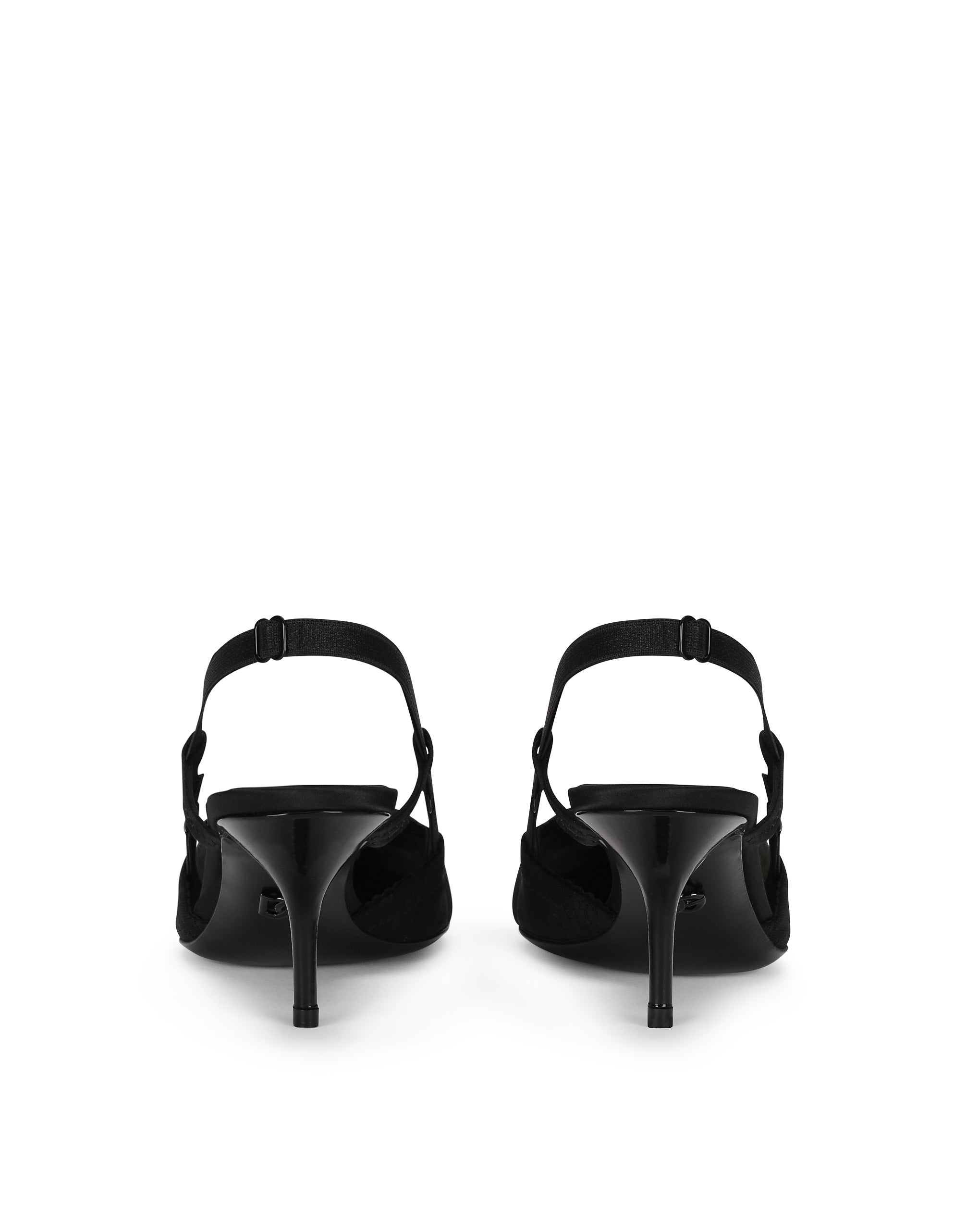 Iconic corsetry is given a modern edge to create a new version of the brand’s signature aesthetic and the image of a feminine, unique woman. The straps of iconic corsets transform into the straps of these Cardinale slingbacks that come in corset-style satin with floral jacquard details. • Quilted corset-style satin upper • 60 mm - 2.4 inches heel • Satin insole with branded label • Black leather sole with logo • Item comes with themed packaging • Made in Italy