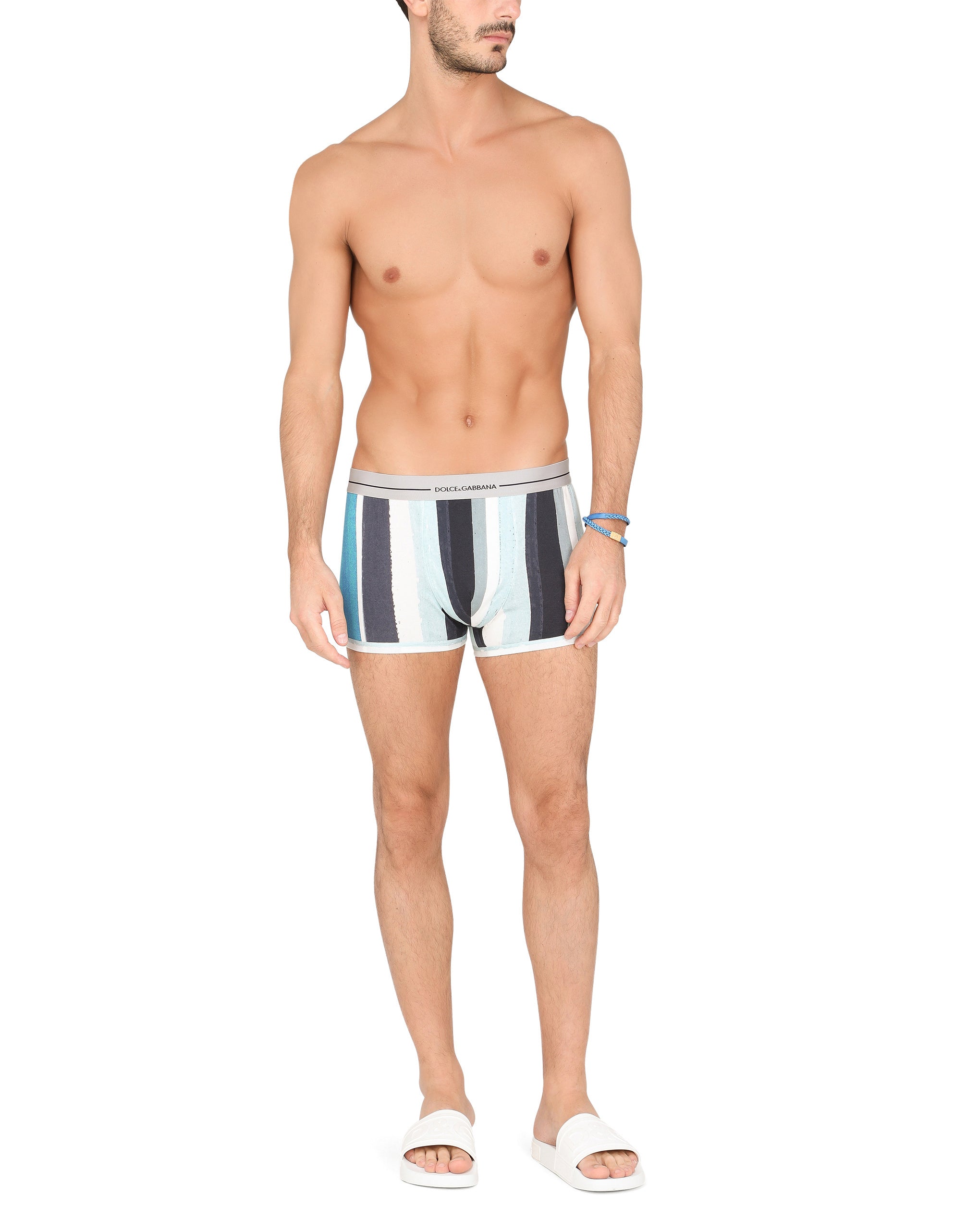 Practical and comfortable men’s underwear in cotton jersey: • Brushstroke-print regular boxers • Soft elasticated waistband with placed logo • Loose fit • Sizes available: from II to VII External composition: 100% Cotton