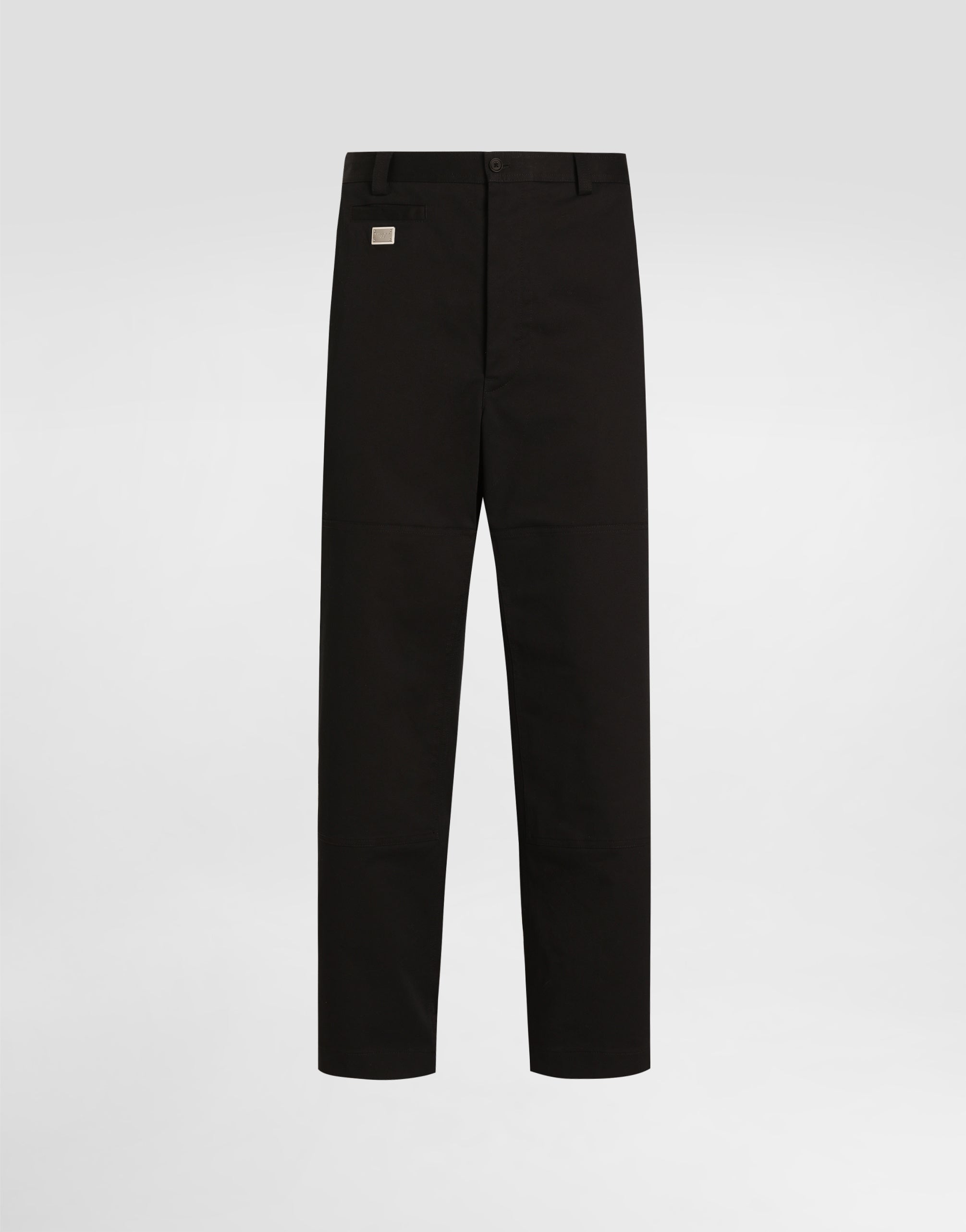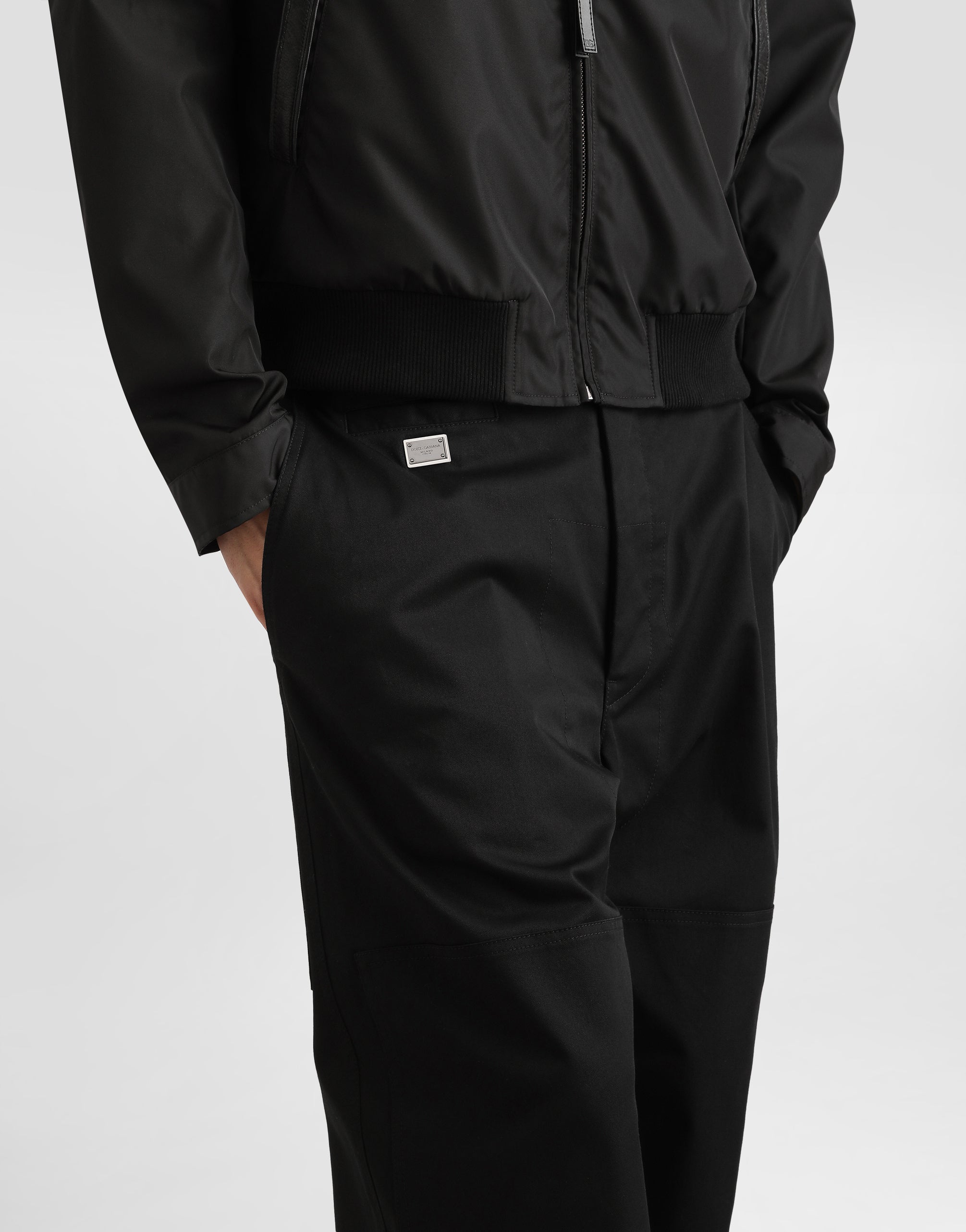 The DNA Men's Collection reimagines daily wear with bold contrasts, meticulous details, and innovative silhouettes. Outerwear stands out with clean lines and high-tech materials, merging sportiness with sophistication in sweaters, sweatshirts, and trousers. A striking color palette, including Black Sicily, caramel, cream, burgundy, and stone gray, pairs with iconic prints like Leopard and Polka dots, enhancing the collection's authentic and refined look. Cotton gabardine cargo pants with a metal tag and the Dolce&Gabbana logo: • Burgundy • Regular fit • Belt loops on the waist • Fly-covered zipper and button fastening • Patch side pockets with flap and button • Front slant pockets and buttoned flap pockets on the back • The item measures 108 cm on the outer leg and the hem is 26 cm wide on a size IT 48 • Made in Italy