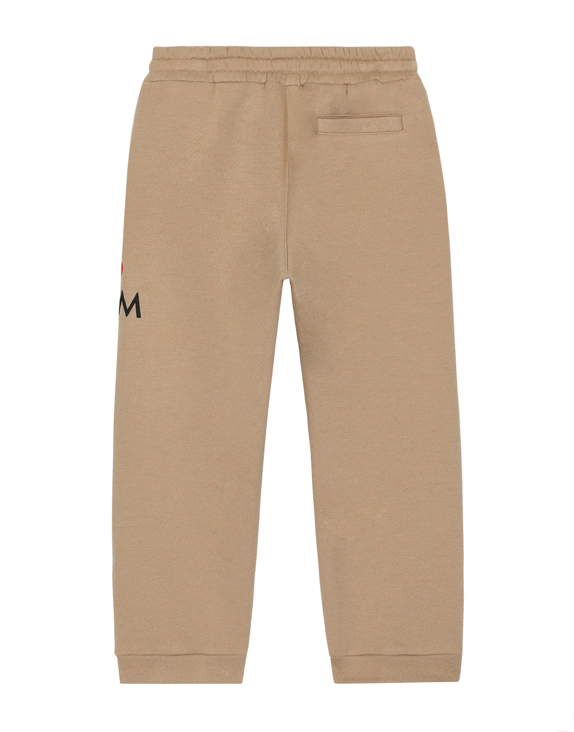 The girl’s Prateria Collection is inspired by the women’s 2001 New Hippy Collection, where the desert and meadows become bohemian and glamorous. Vaguely vintage/grunge looks come made up of volume and special pieces flaunt light printed and solid-color fabric details, smock stitching, corduroy, faux fur and a print distinguished by delicate and joyful multi-colored wildflowers for fun and ironic little girls. Cotton jogging pants with “I love denim” embroidery: • Beige • Oversize fit • Embroidery on the left leg • Stretch knit waistband with drawstring • Side pockets and single-welt back pocket • Stretch knit cuffs • Unlined • The item in the size 6 years measures 71 cm in length • Made in Italy The difference in the print placement that you may find on this product is a feature of Dolce&Gabbana’s “Handmade” pieces. A detail that makes every garment or accessory unique and exclusive.