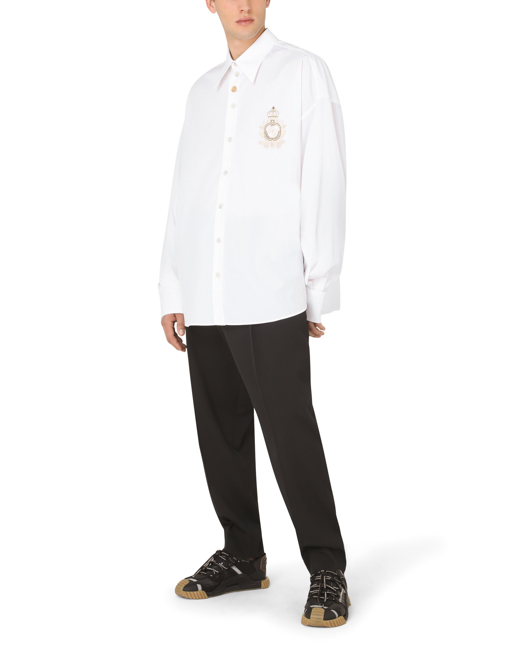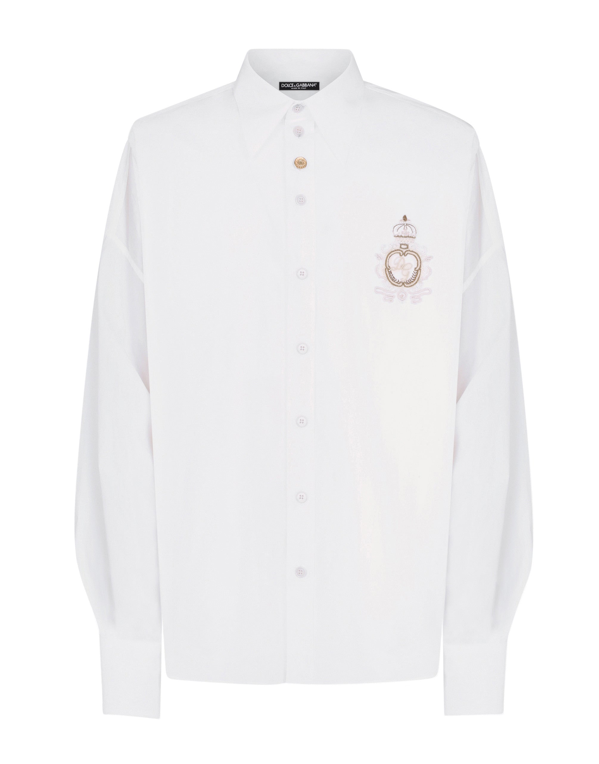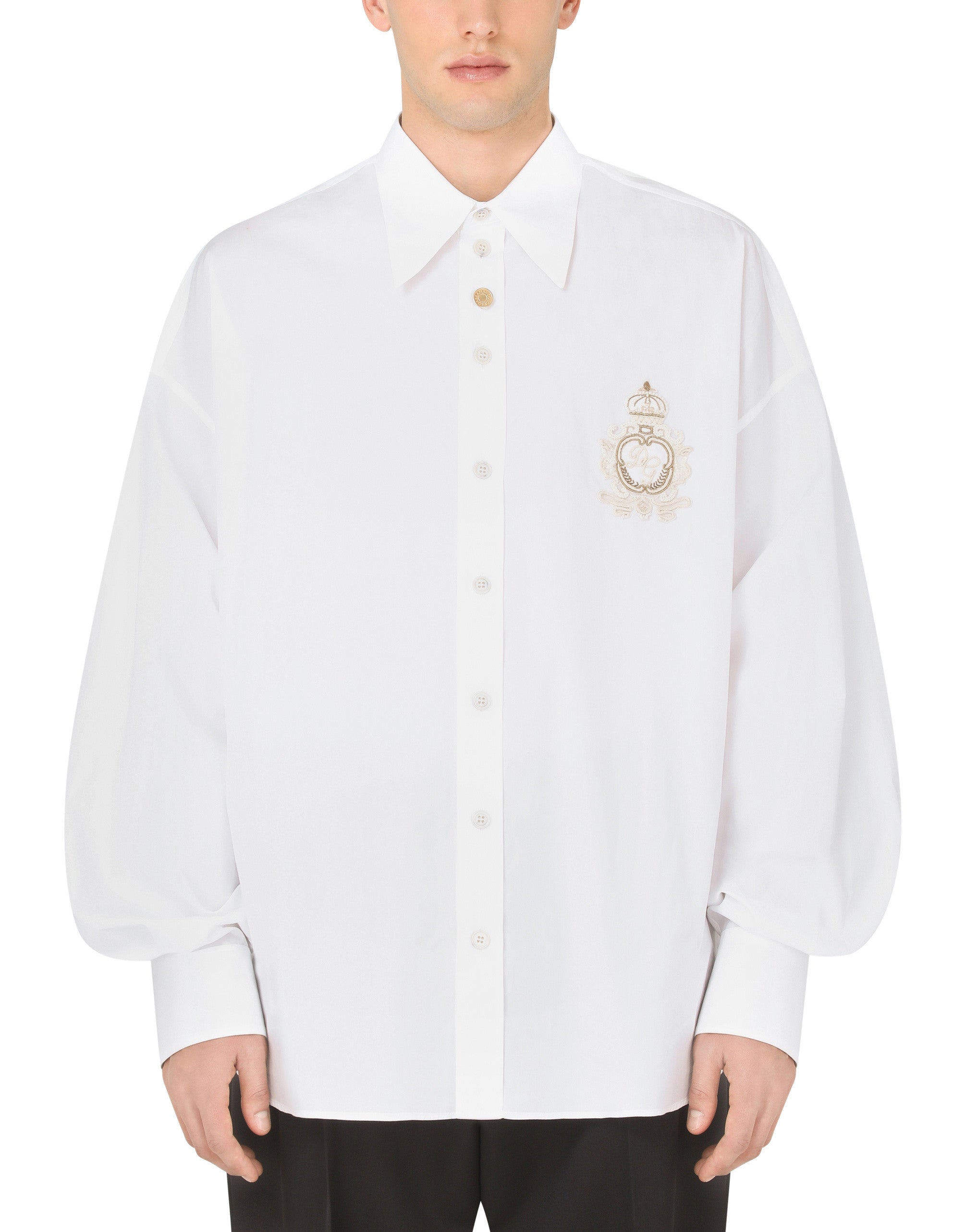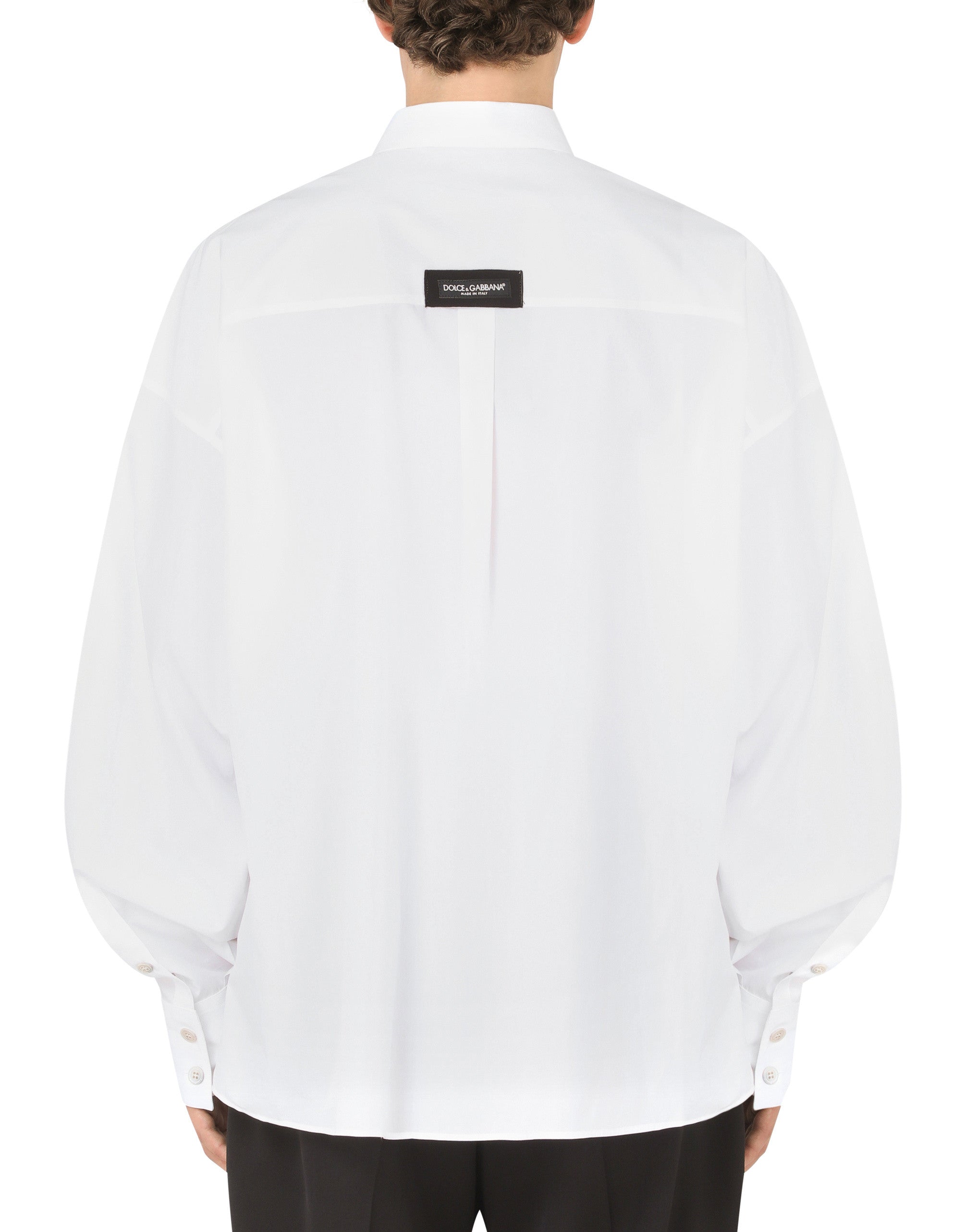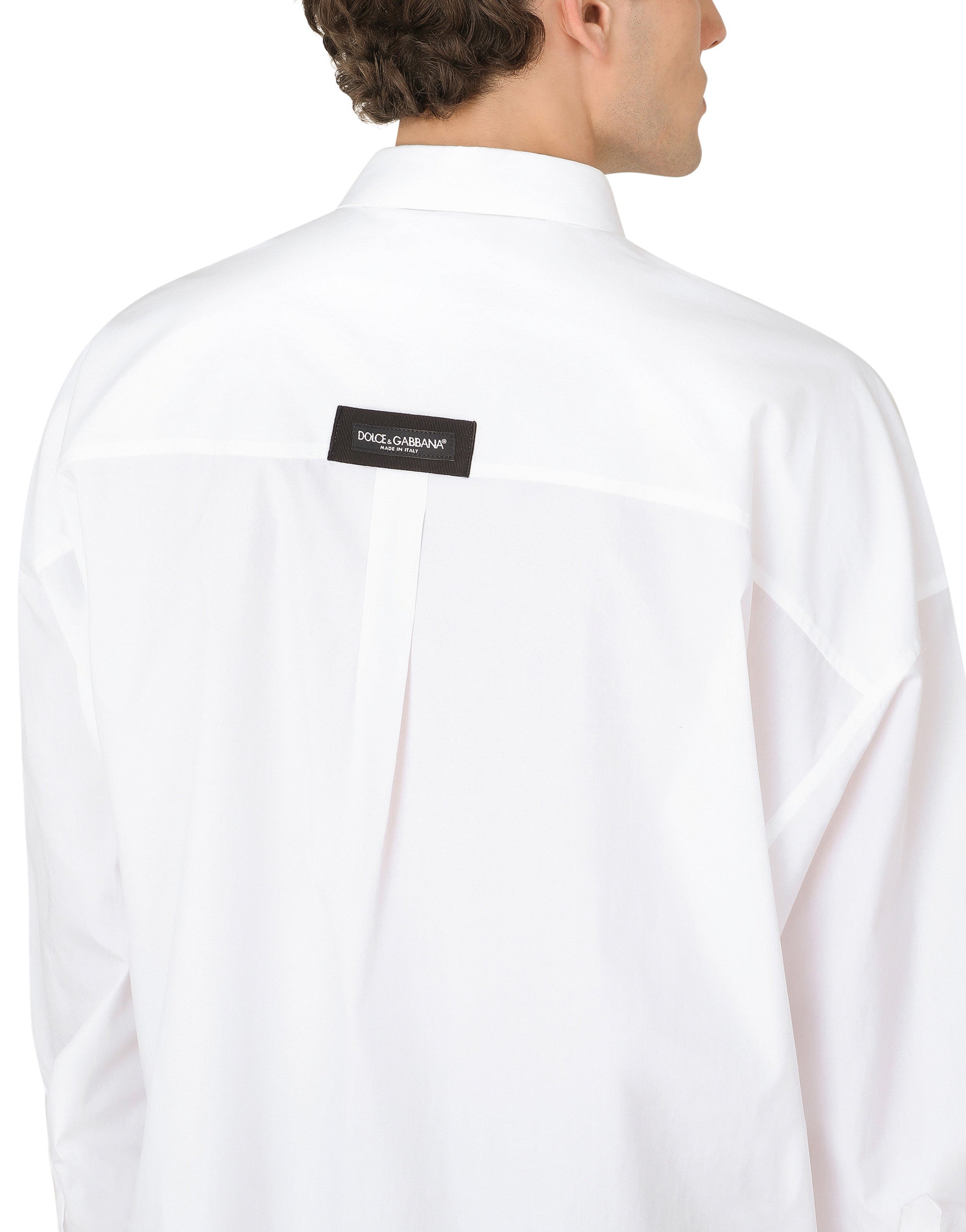 In the Dolce&Gabbana collection, our Sicilian roots and tailoring expertise mix with layering and new volume to create a sophisticated and contemporary update on our signature aesthetic. Cotton shirt with French wire DG patch and the Dolce&Gabbana logo on the back: • Loose fit • Kent collar • Long sleeves • Mother-of-pearl button fastenings • Rear yoke with inverted pleat on hem • The piece measures 80.50 cm - 31.7 inches from the rear collar seam on a size IT 40 • The model is 185 cm - 72.8 inches tall and wears a size IT 40 • Made in Italy External composition: 100% Cotton
