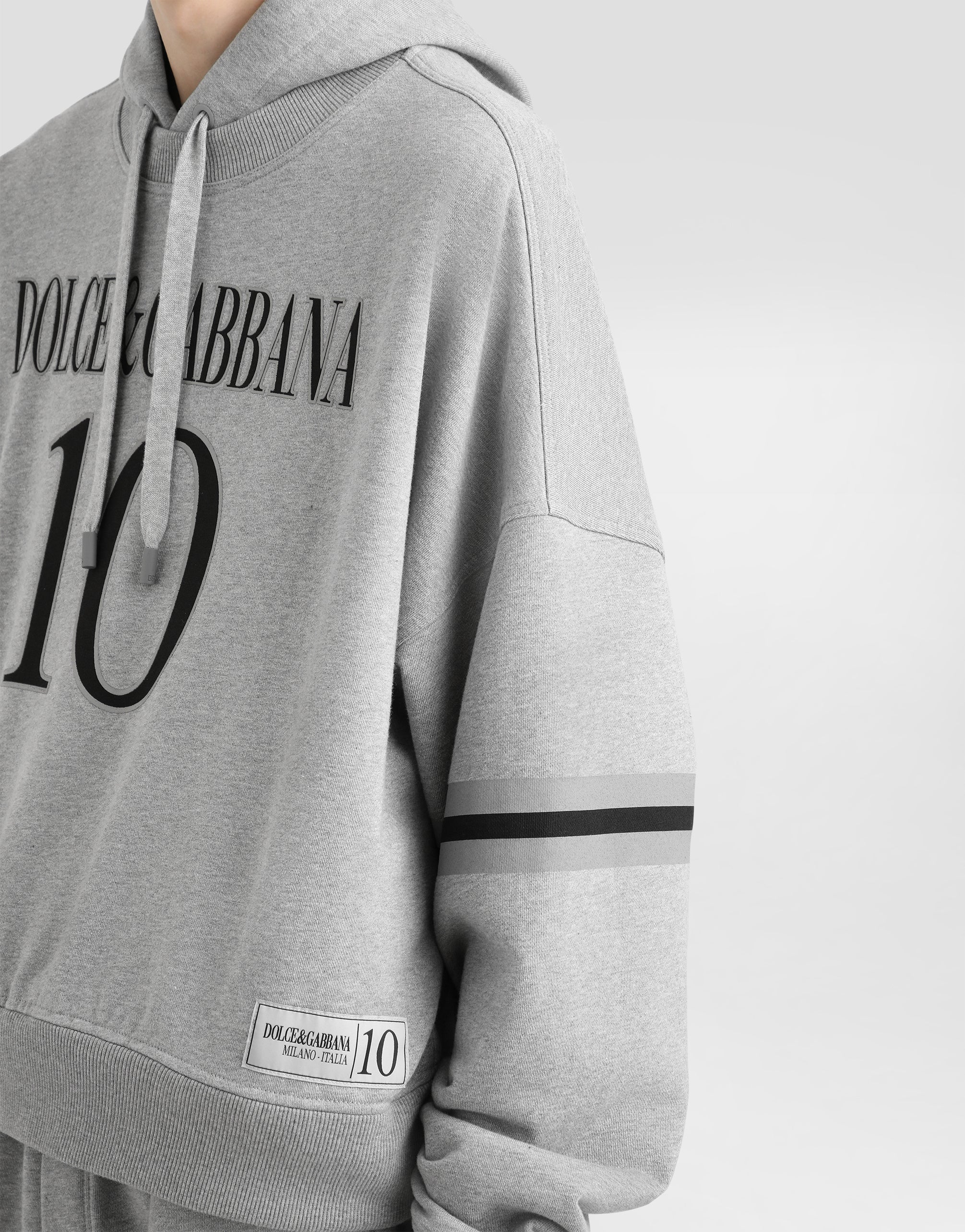 The DNA Men's Collection reimagines daily wear with bold contrasts, meticulous details, and innovative silhouettes. Outerwear stands out with clean lines and high-tech materials, merging sportiness with sophistication in sweaters, sweatshirts, and trousers. A striking color palette, including Black Sicily, caramel, cream, burgundy, and stone gray, pairs with iconic prints like Leopard and Polka dots, enhancing the collection's authentic and refined look. Cotton jersey sweatshirt with Dolce&Gabbana logo print: • Gray • Oversize fit • Fine-rib neck, sleeves and hem • Long sleeves • The piece measures 69 cm from the shoulder seam on a size IT 48 • Made in Italy