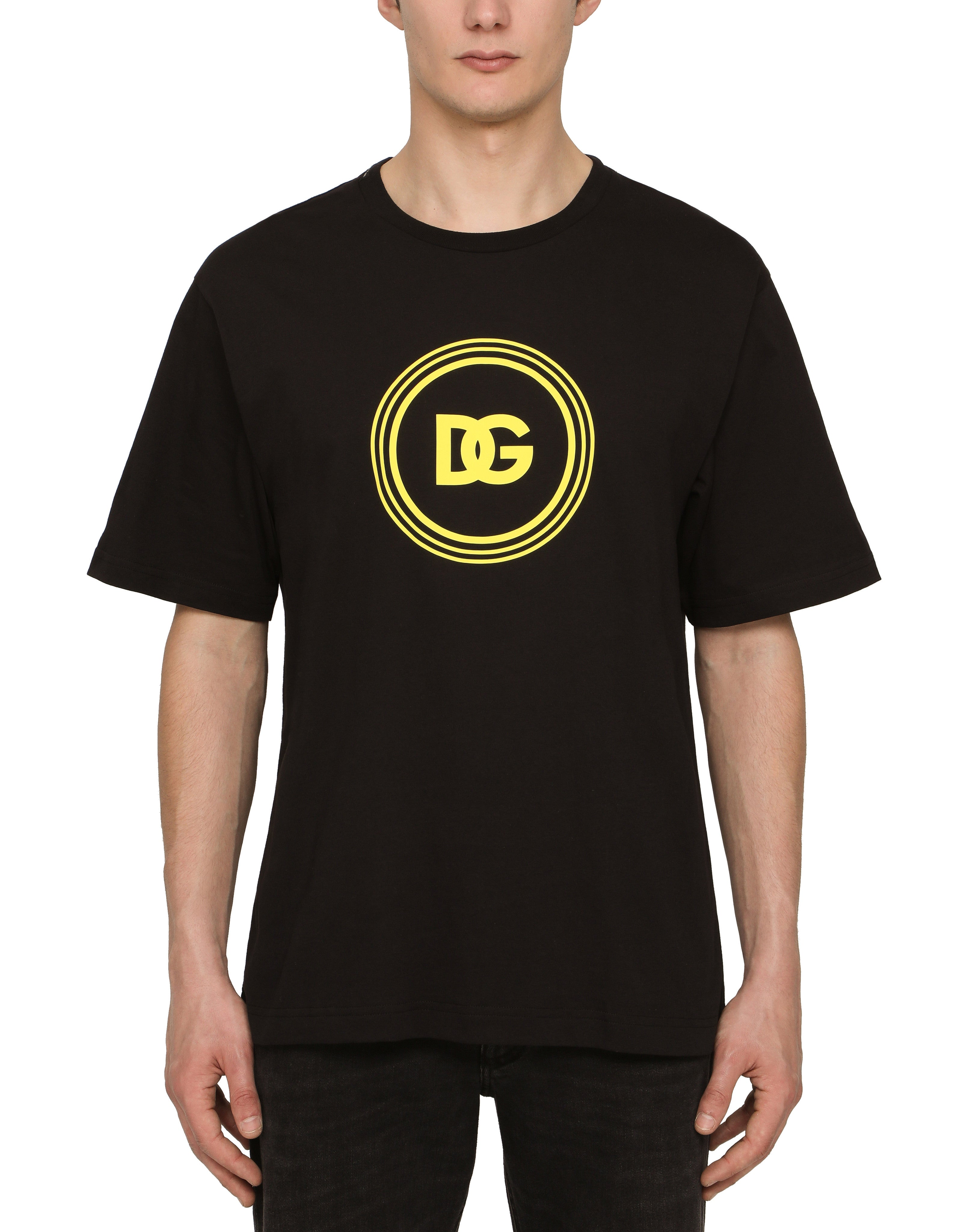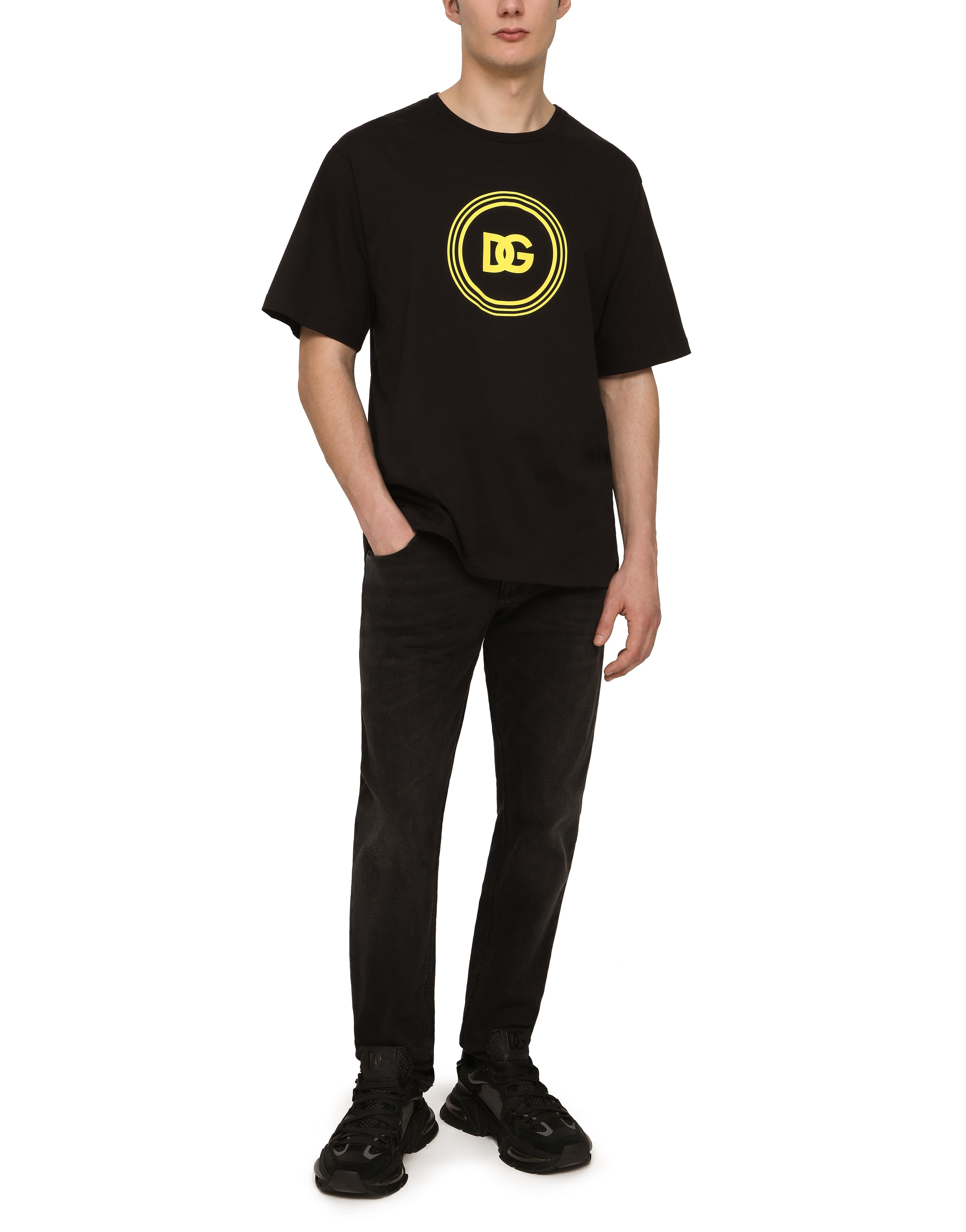 T-shirt made of cotton jersey with DG logo print: • Loose regular fit • Crew neck • Short sleeves • Black • The item measures 72 cm from the back neckline on a IT size 48 • The model is 185 cm tall and is wearing an IT size 48 • Made in Italy External composition: 100% Cotton
