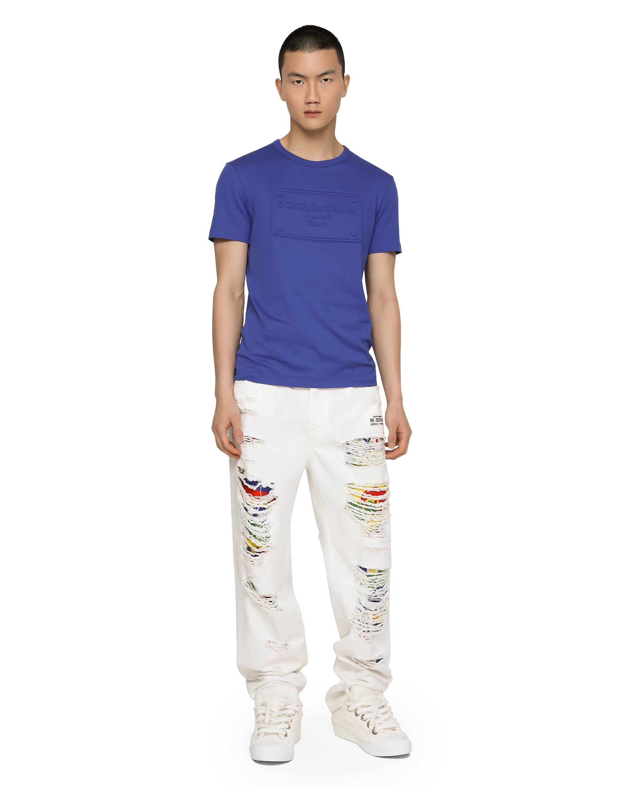 In the “Sport” Collection, basic clothing pieces become emancipated from their purely sporty function to become contemporary and unique everyday outfits. Cotton jersey T-shirt with embossed Dolce&Gabbana logo. • Regular fit • Round neck • Short sleeves • The piece measures 71.5 cm from the rear collar seam on a size IT 48 • The model is 185 cm tall and wears a size IT 48 • Made in Italy