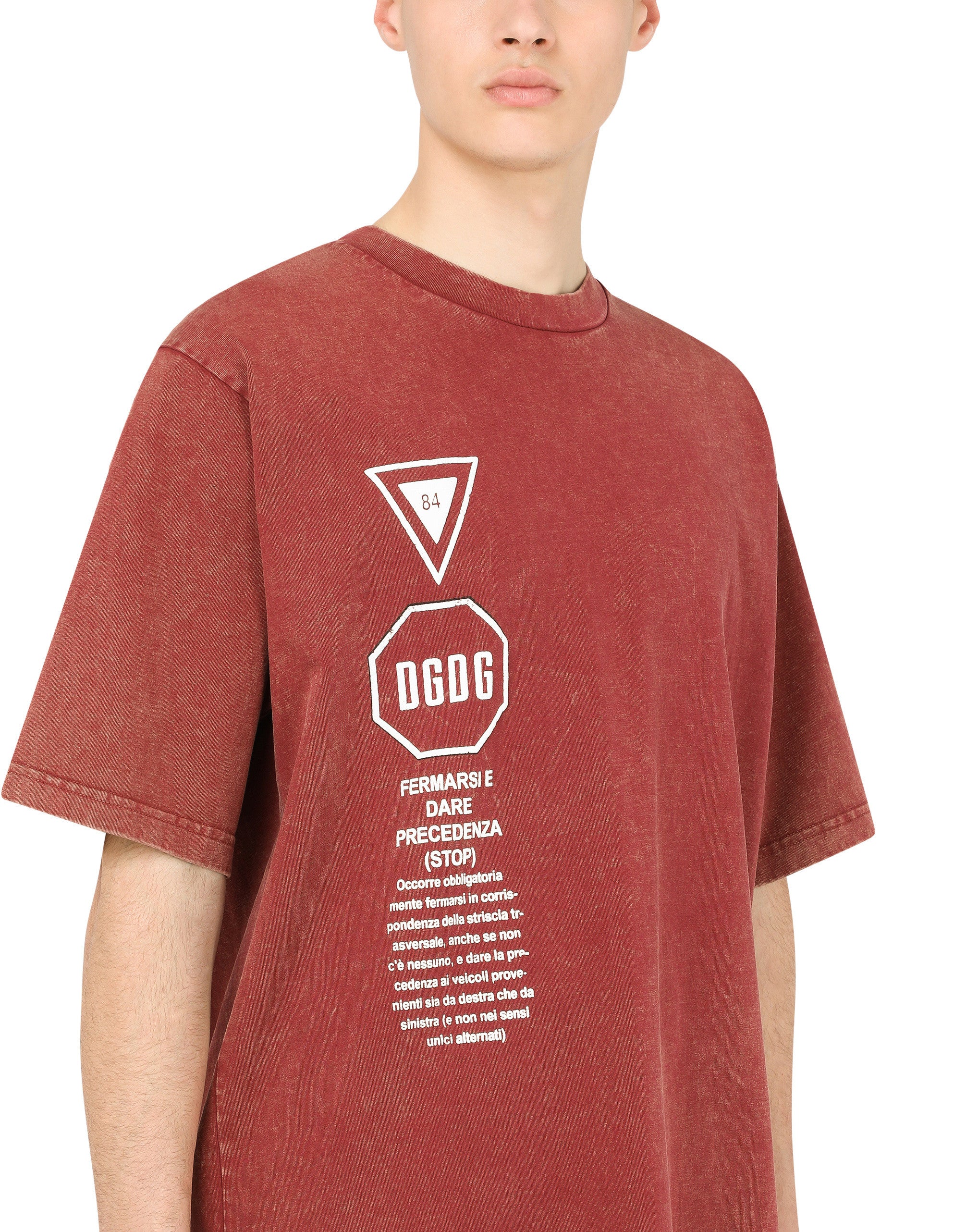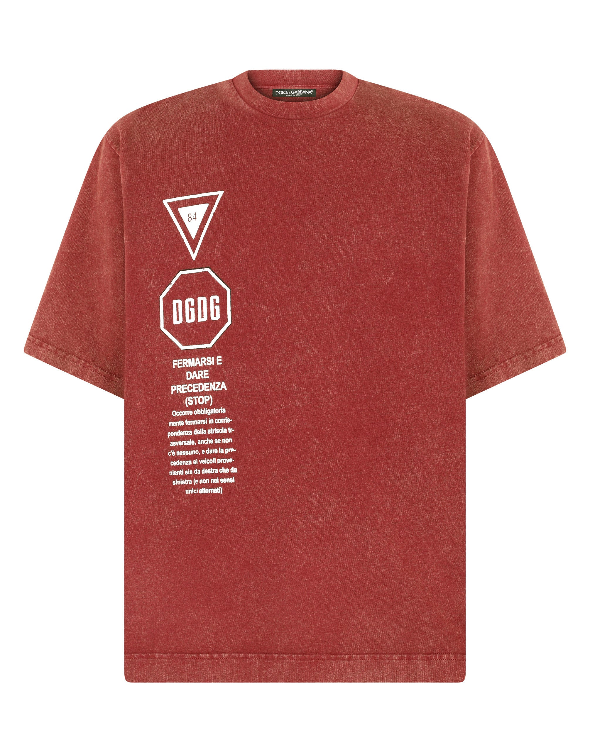 The Street Patchwork Collection tells the story of street’s influence in contemporary society. The city, rich in all forms of culture, becomes the star, giving everyone the opportunity to feel free to express themselves through fashion. The result is young, comfortable and contemporary style. Cotton jersey T-shirt with road-sign print: • Oversize fit • Round neck • Short sleeves • The piece measures 75.5 cm - 29.7 inches from the rear collar seam on a size M • The model is 185 cm - 72.8 inches tall and wears a size M • Made in Italy External composition: 100% Cotton
