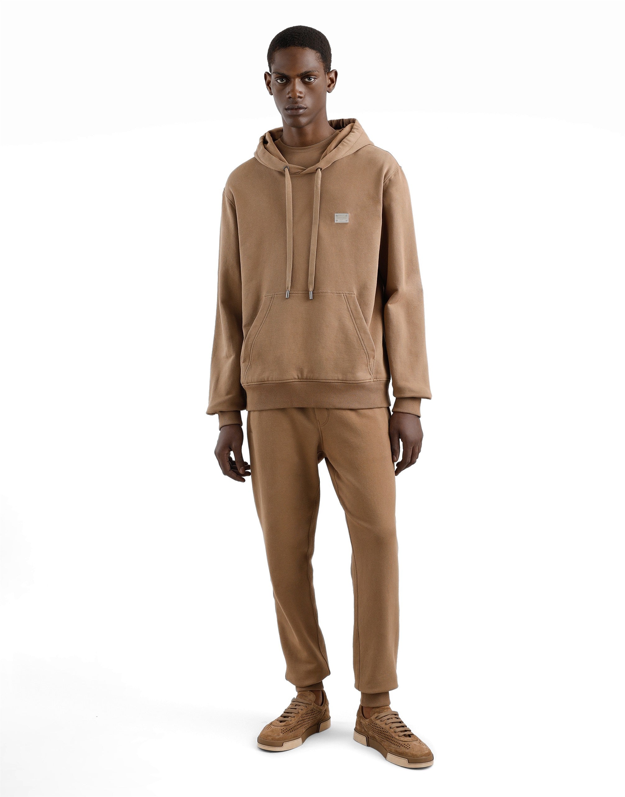 The DNA Men's Collection reimagines daily wear with bold contrasts, meticulous details, and innovative silhouettes. Outerwear stands out with clean lines and high-tech materials, merging sportiness with sophistication in sweaters, sweatshirts, and trousers. A striking color palette, including Black Sicily, caramel, cream, burgundy, and stone gray, pairs with iconic prints like Leopard and Polka dots, enhancing the collection's authentic and refined look. Cotton piqué T-shirt with metal tag and logo: • White • Regular fit • Knit neck, sleeves and hem • Short sleeves • The piece measures 71.5 cm from the shoulder seam on a size IT 48 • Made in Italy