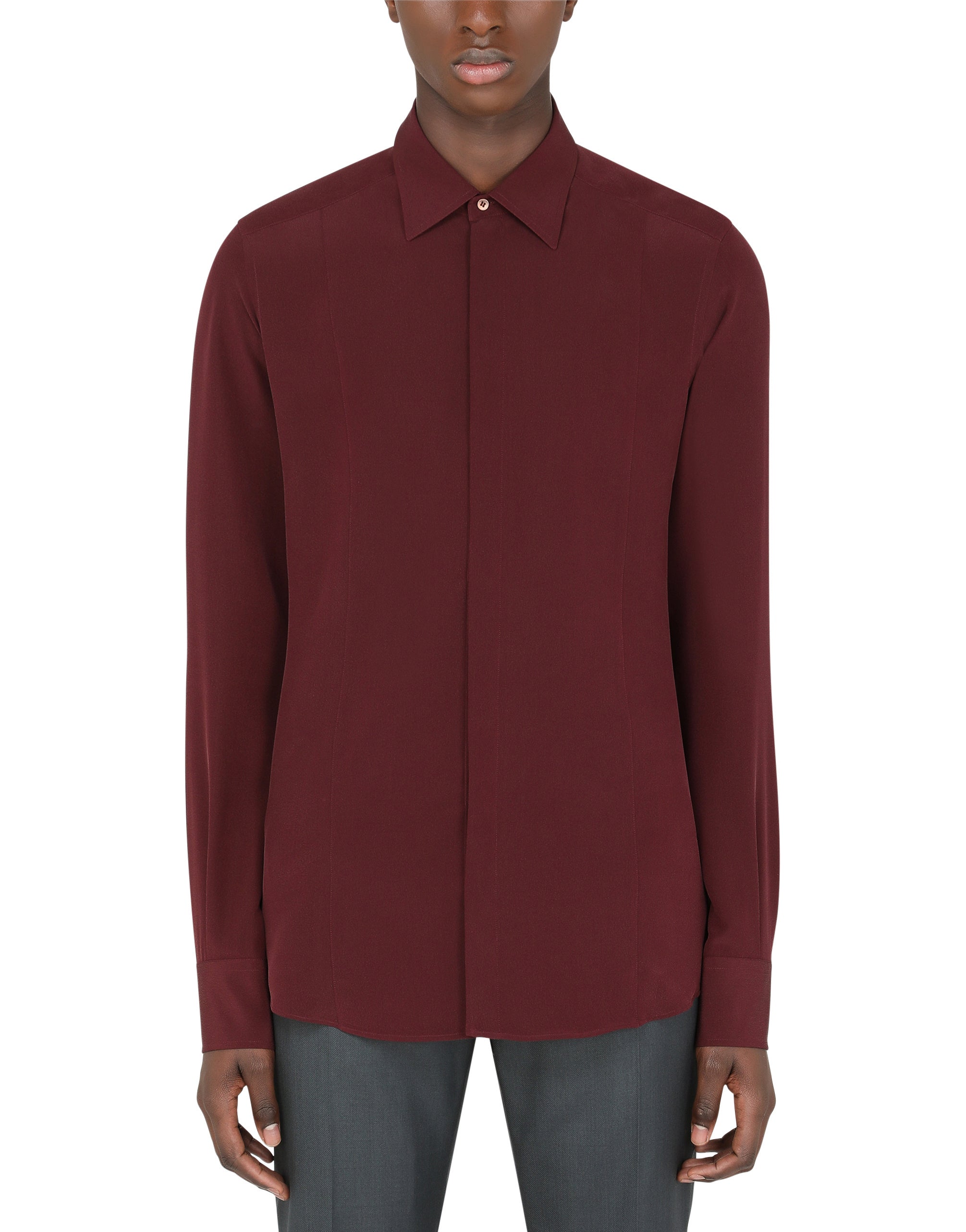 The search for new, fine fabrics combined with Dolce&Gabbana’s tailoring expertise form the very essence of the “Sartoria Eccentrica” collection. It has given rise to a new concept of tailoring, one that is elegant and sophisticated and pairs perfectly with daywear garments. Tailored slim-fit shirt in silk crepe de chine. • Slim Gold fit • Kent collar • Long sleeves • Concealed buttoning • Soft placket • Rear box pleat and yoke • Darts down the back • The piece measures 80 cm - 31.5 inches from the rear collar seam on a size IT 40 • The model is 185 cm - 72.8 inches tall and wears a size IT 40 • Made in Italy