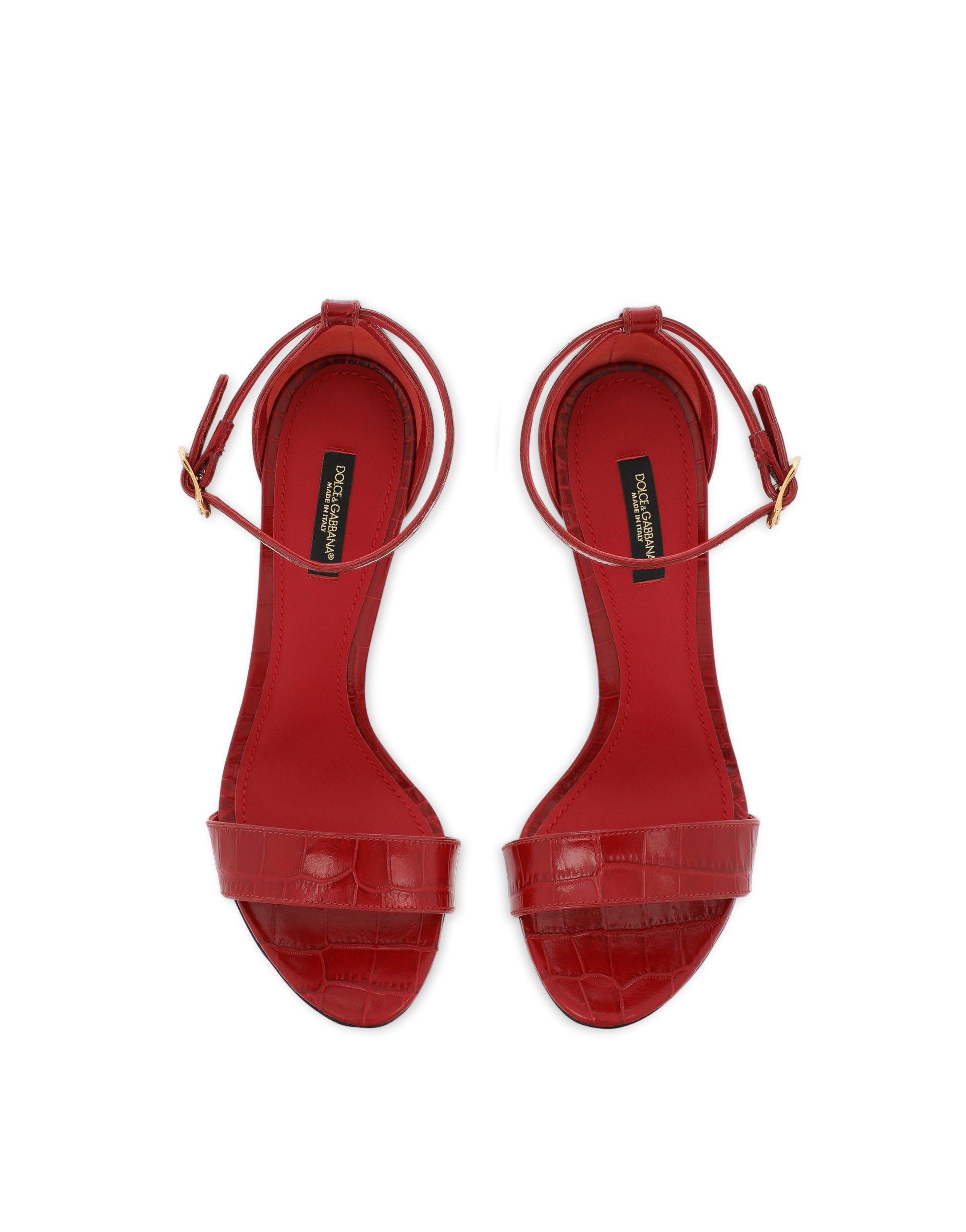 Feminine and elegant, these sandals come in a new version. Made from crocodile-print calfskin, they feature the sculptural baroque DG heel. • 105-mm heel • Strap with bejeweled buckle in vintage plated brass • Kidskin insole with branded label • Branded leather sole • Item comes with themed packaging • Made in Italy
