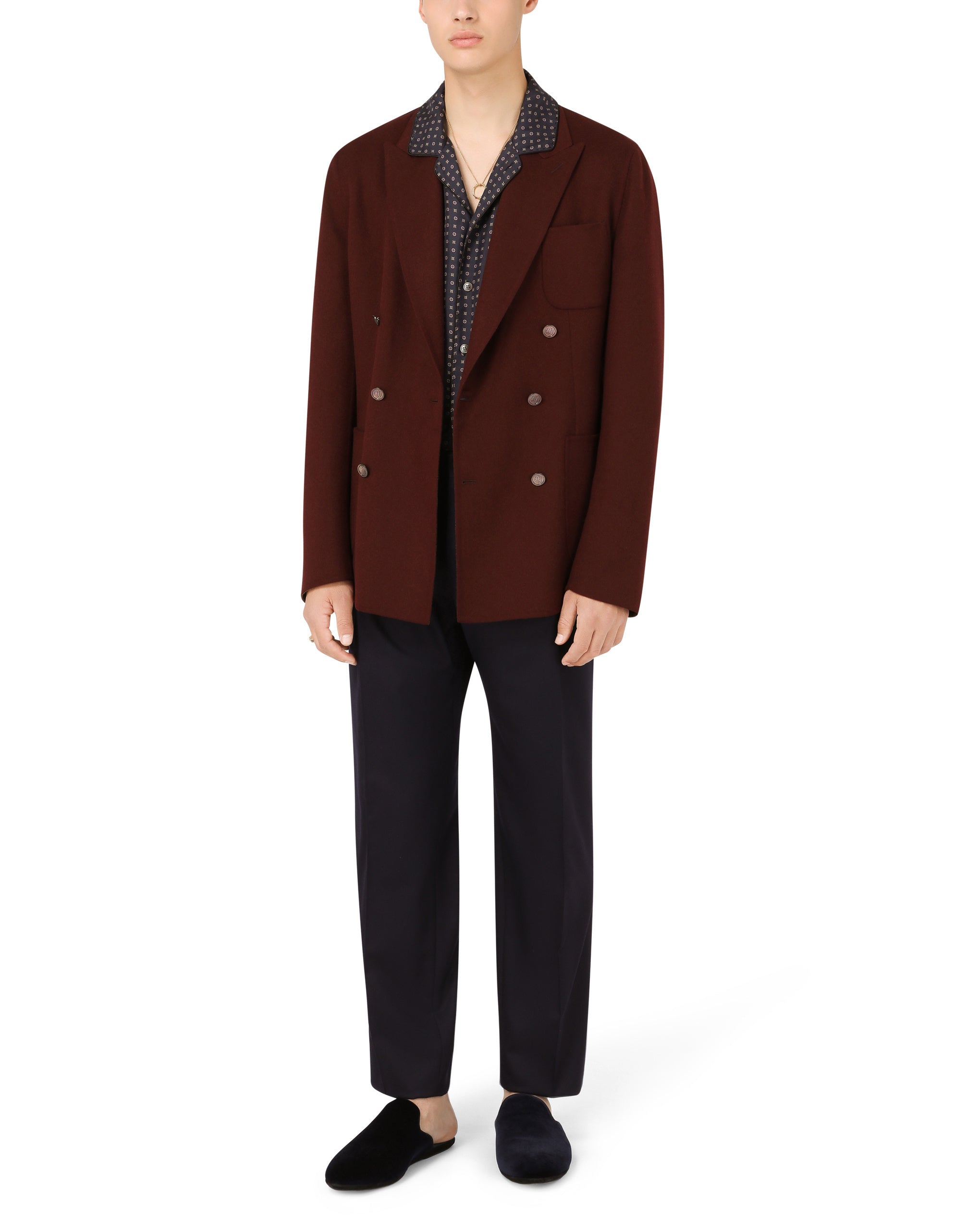 The Sartoriale Collection fuses wonderful sartorial constructions with fine fabrics. Garments embellished by embroidery, French wire patches and fine details, complemented by colorful accessories, create sophisticated and contemporary looks. Deconstructed double-breasted double wool jacket. • Regular fit • Peak lapels • Six-button fastening at the front • Outer patch pockets and breast pocket • Buttoned cuffs • Central vent • Unlined • The piece measures 73.5 cm - 28.9 inches from the rear collar seam on a size IT 48 • The model is 185 cm - 72.8 inches tall and wears a size IT 48 • Made in Italy
