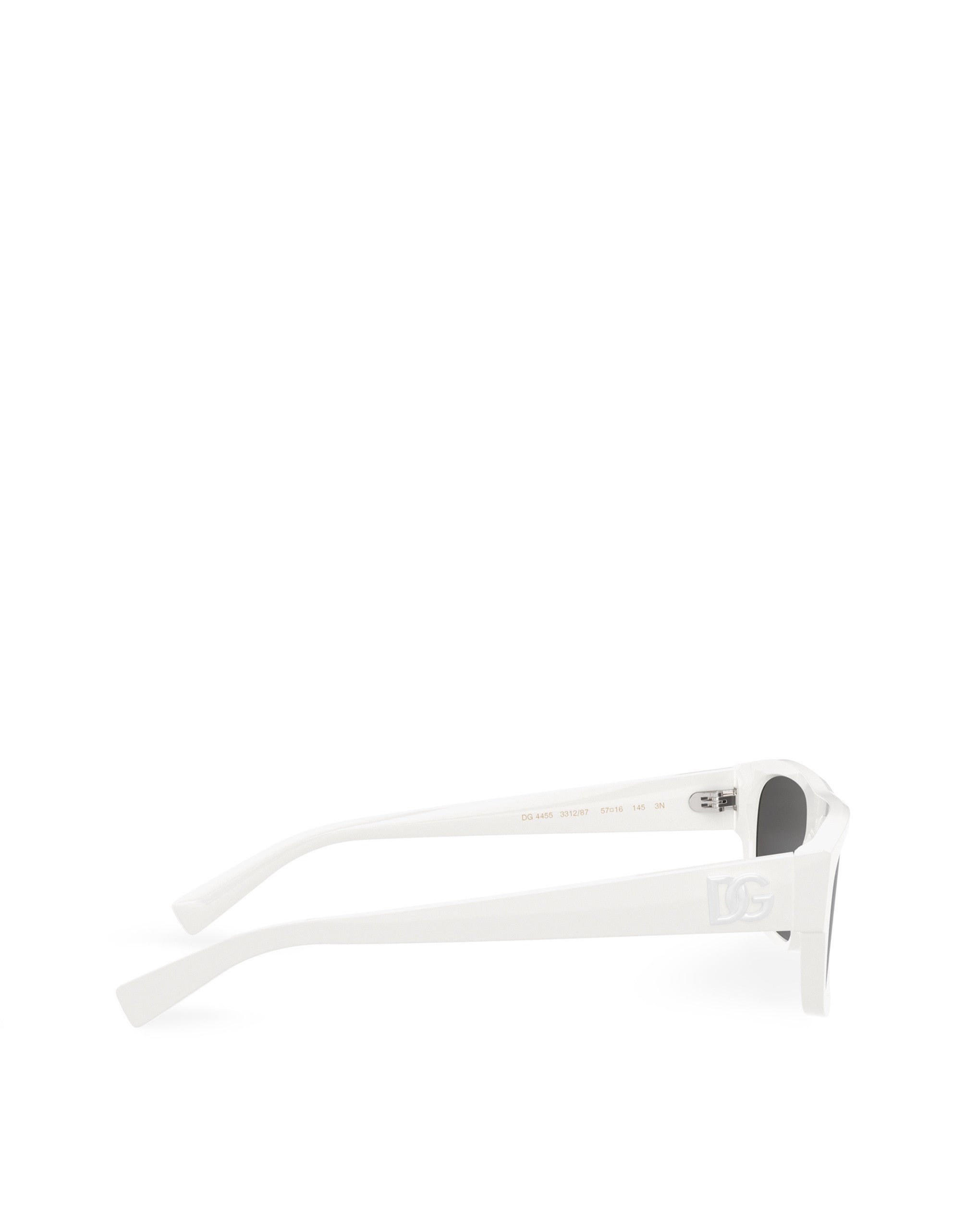 The new DG Crossed Style for a contemporary and modern look. DG monogram embellishes the temples. • White acetate frame • White acetate temples • Dark grey lenses • 100% UV protection • Size lens - bridge - temple: 57 -16 - 145 mm • Fitting: Standard • Packaging: Institutional • Made in Italy
