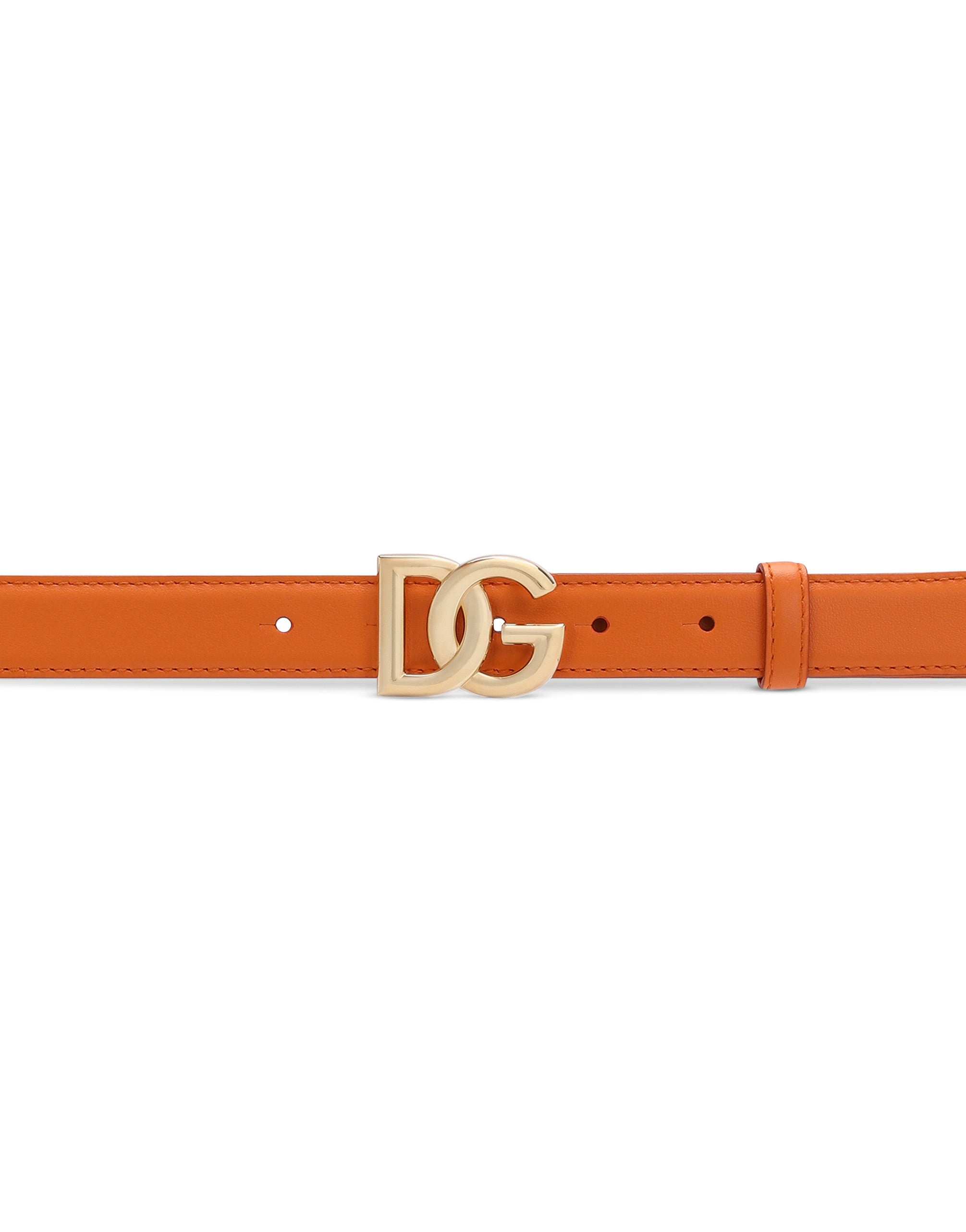 With its understated lines, this calfskin belt features the DG logo buckle in light gold-plated metal. • The belt strap is 25 mm in height • Dome popper fastening beneath the buckle and belt loop stop • Made in Italy