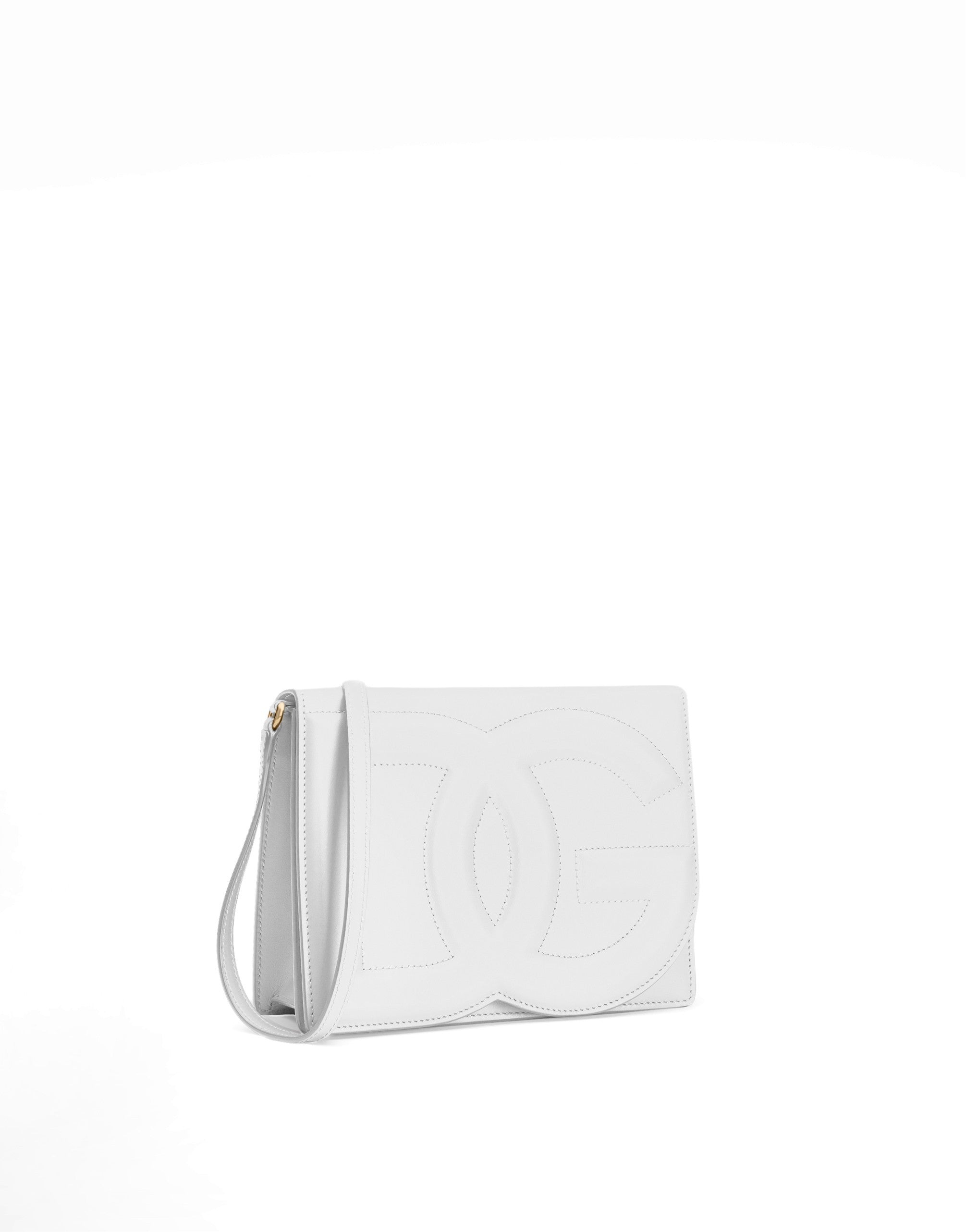 Iconic style is being given some contemporary edge, creating a new vision of the brand’s signature aesthetic. Defined by its refined geometric lines, this new crossbody bag pays tribute to our Logo, the undisputed star of the new collection. Coming in 100% calfskin, it features the quilted 3D-effect DG logo and the adjustable and detachable crossbody strap. • Flap fastening with concealed magnetic fastening • Alcantara lining, zipped pocket and a compartment with strap and press-stud button • Item comes with a branded dust bag • Measurements. 16 x 20 x 5.5 cm • Made in Italy