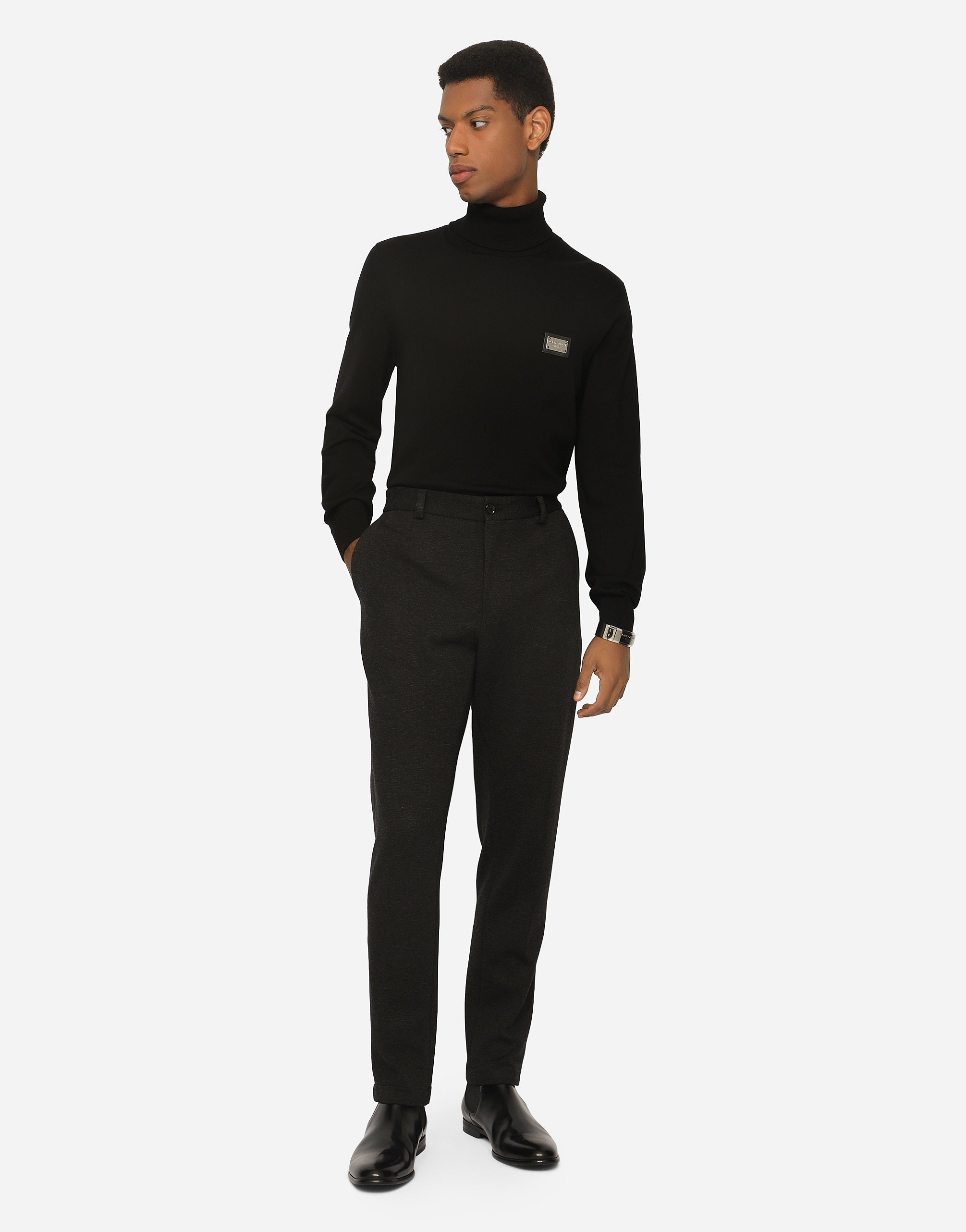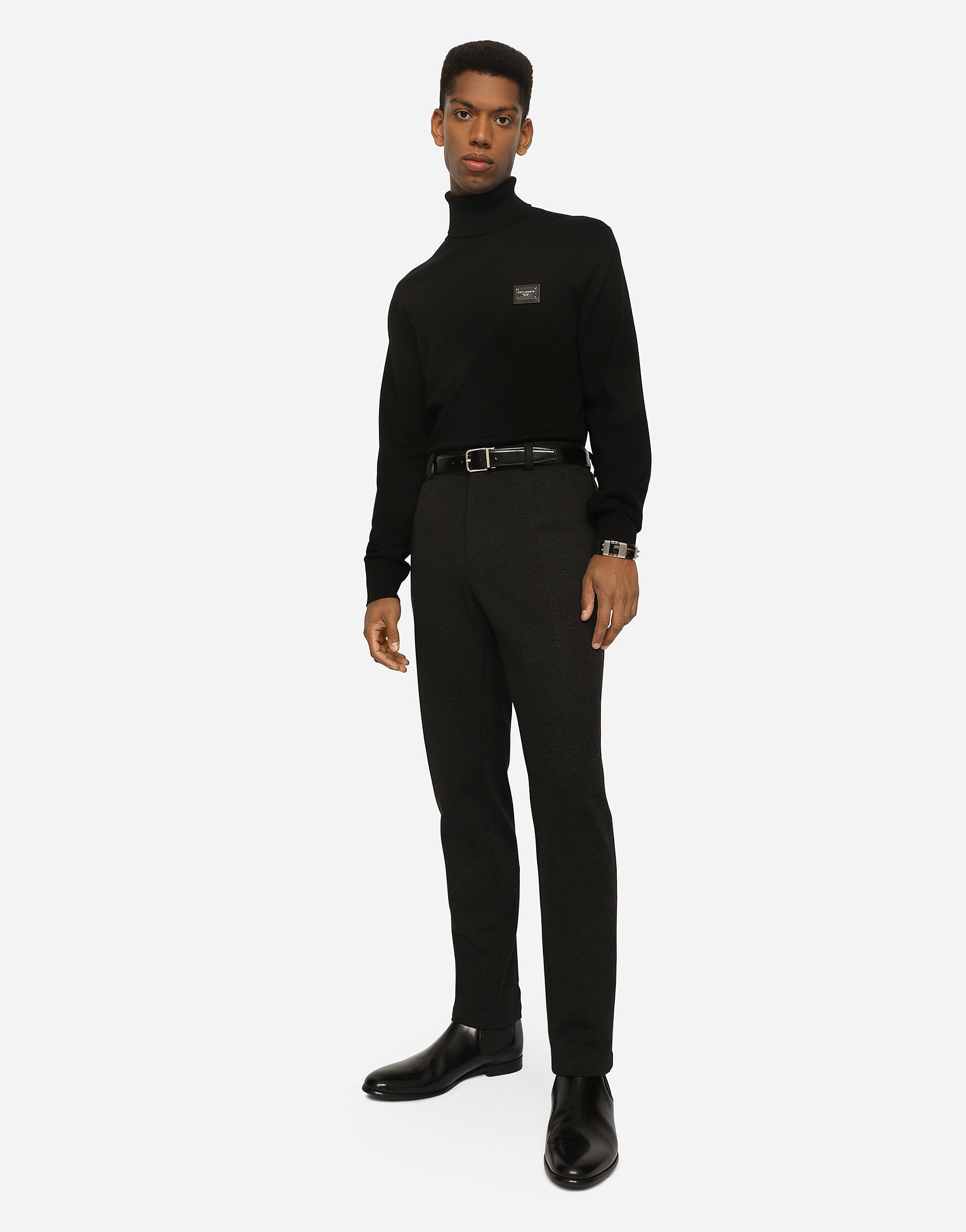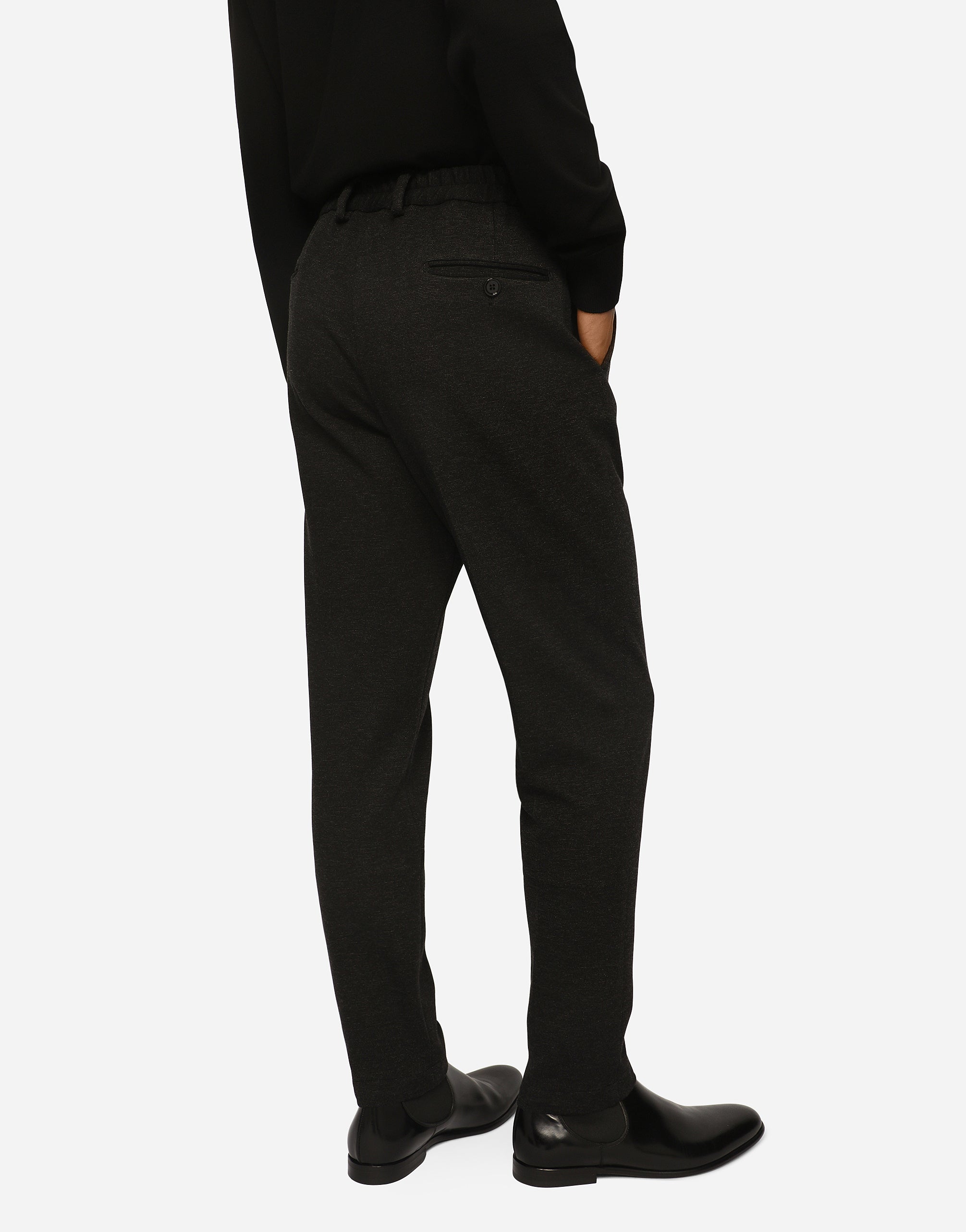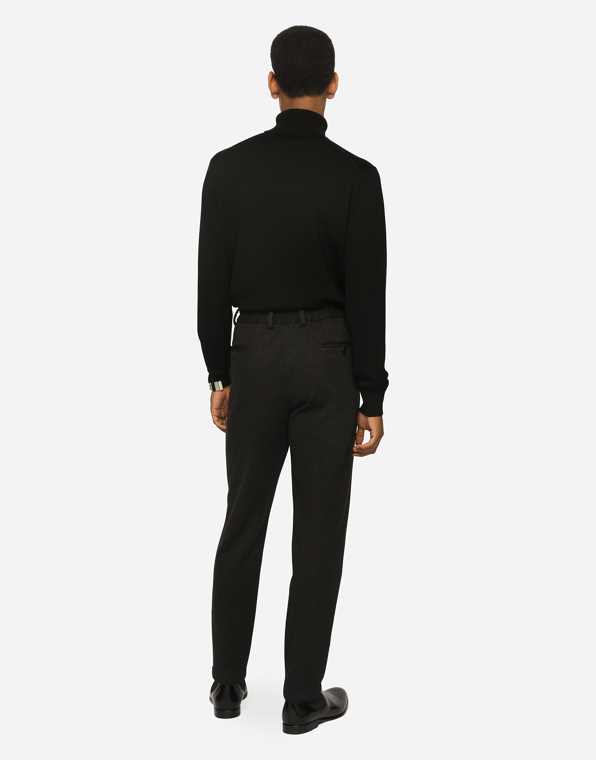 In the “Black Sicily” collection, the flawless and iconic Nero Sicilia black becomes Nero Urbano black. Paired with the Hawaiian prints and the DG Heart, all the featured looks flaunt and reveal new ways of pairing this color with a new current, innovative and utterly contemporary way. Tailored dotted stretch technical jersey pants with elasticated rear waistband: • Regular fit • Belt loops on the waist • Fly-covered zipper and button fastening • Front slant pockets and buttoned welt pockets at the back • The item measures 99 cm on the outer leg and the hem is 17 cm wide on a size IT 48 • The model is 185 cm tall and wears a size IT 48 • Made in Italy