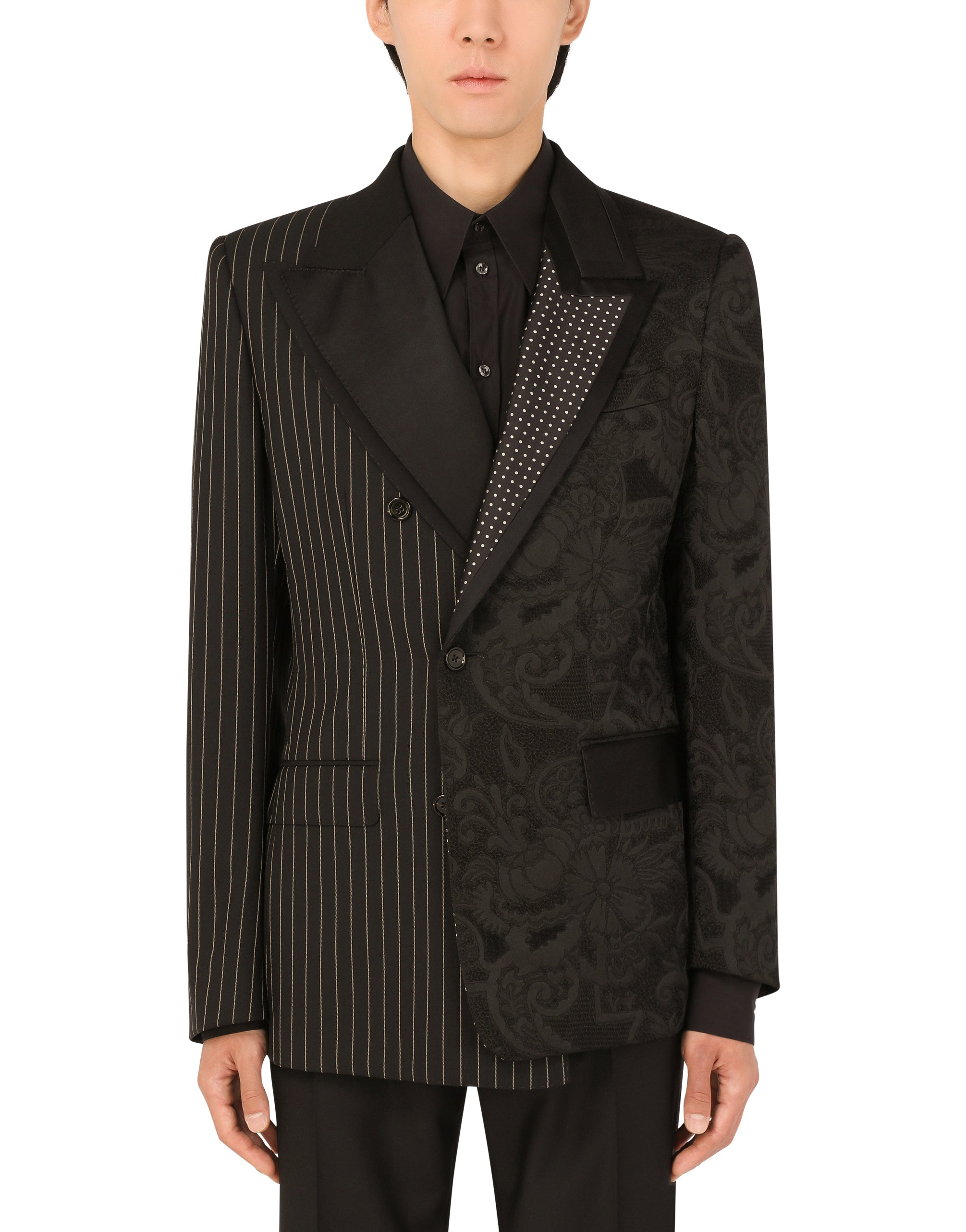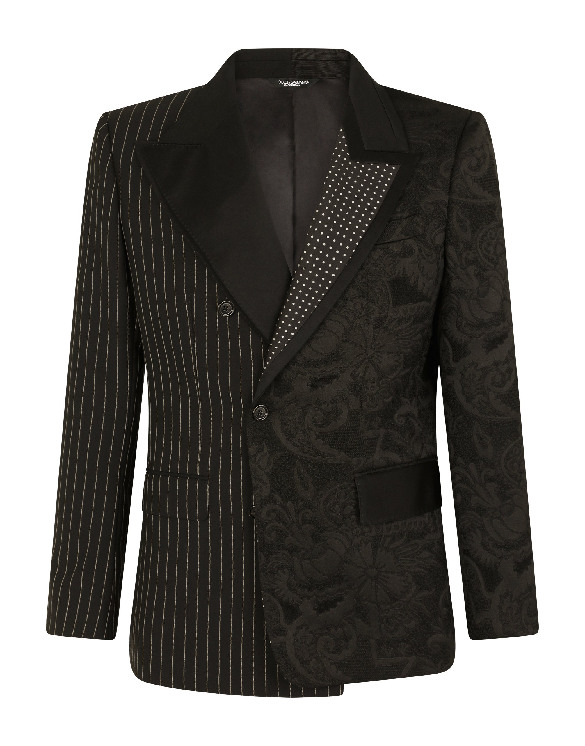 The “DG Light Therapy” fashion show is a tribute to life itself, positivity and folklore. Distinctive luminaries become wonderful photographic prints to create special, iconic pieces when combined with embroidery, crystals, sequins and jacquard designs. Elegant, asymmetrical double-breasted patchwork fabric jacket. • Slim Sicilia fit • Peak lapels • Single-button fastening on the front • Outer flap pockets and breast pocket, three inner welt pockets • Buttoned cuffs • Central vent • Lined • The piece measures 73.5 cm - 28.9 inches from the rear collar seam on a size IT 48 • The model is 185 cm - 72.8 inches tall and wears a size IT 48 • Made in Italy