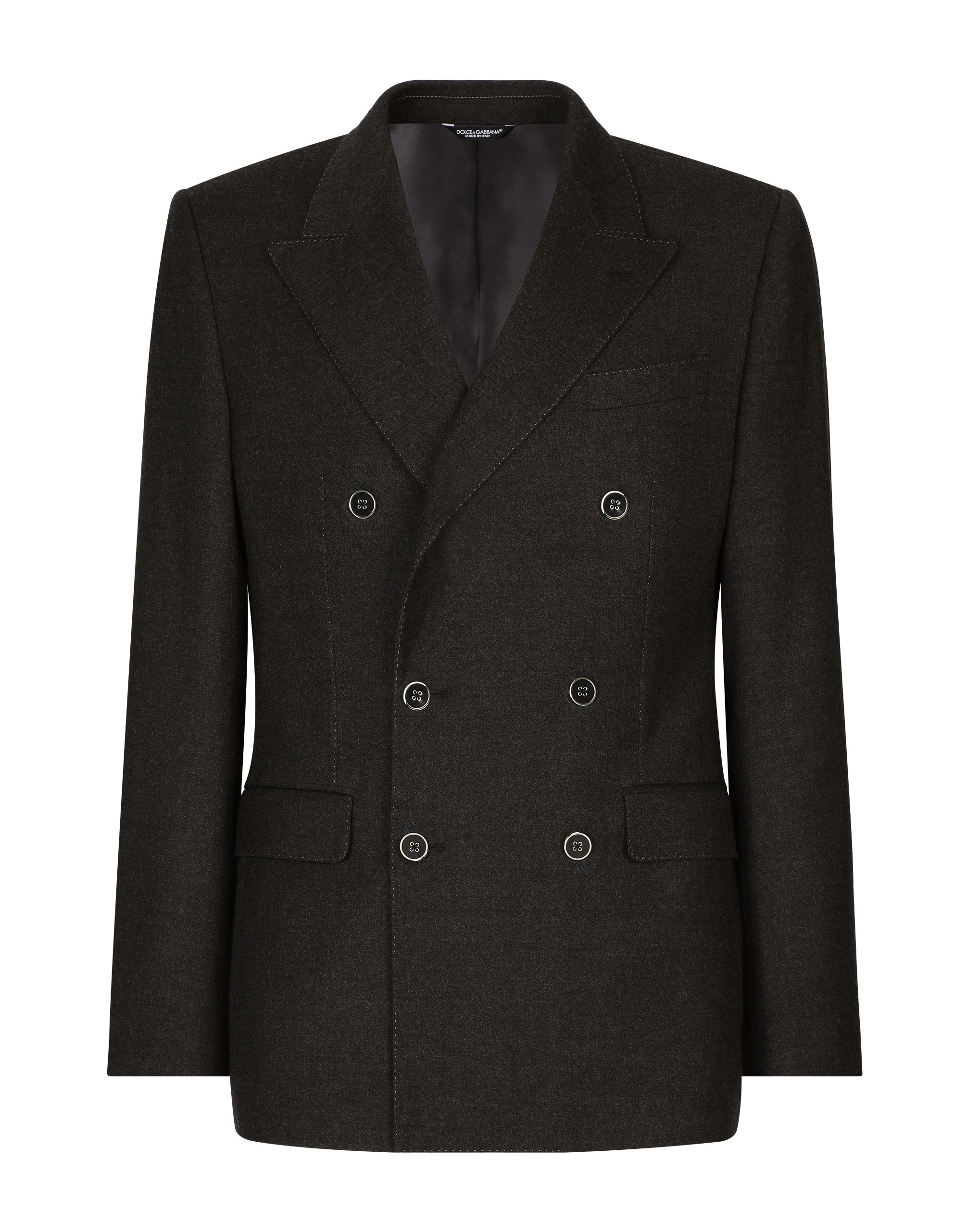Tailoring, an art form made of skill, harmony and heritage, is part of the Dolce&Gabbana world that the designers love to update and reinterpret every season. Devotees of Italian craftsmanship and exclusive sartorial heritage, in this collection the designers are presenting a new freedom to wear seemingly formal garments, a new concept of experiencing tailoring that balances urban elegance and comfort, creating a youthful, sophisticated, relaxed and profoundly updated style. Tailored double-breasted stretch wool flannel jacket with enameled buttons and Dolce&Gabbana embroidery on the under collar: • Gray • Slim Sicilia fit • Peak lapels • Button fastenings on the front • Outer flap pockets and breast pocket, inner welt pockets with button • Buttoned cuffs • Central vent • Lined • The piece measures 73.5 cm from the rear collar seam on a size IT 48 • The model is 185 cm tall and wears a size IT 48 • Made in Italy