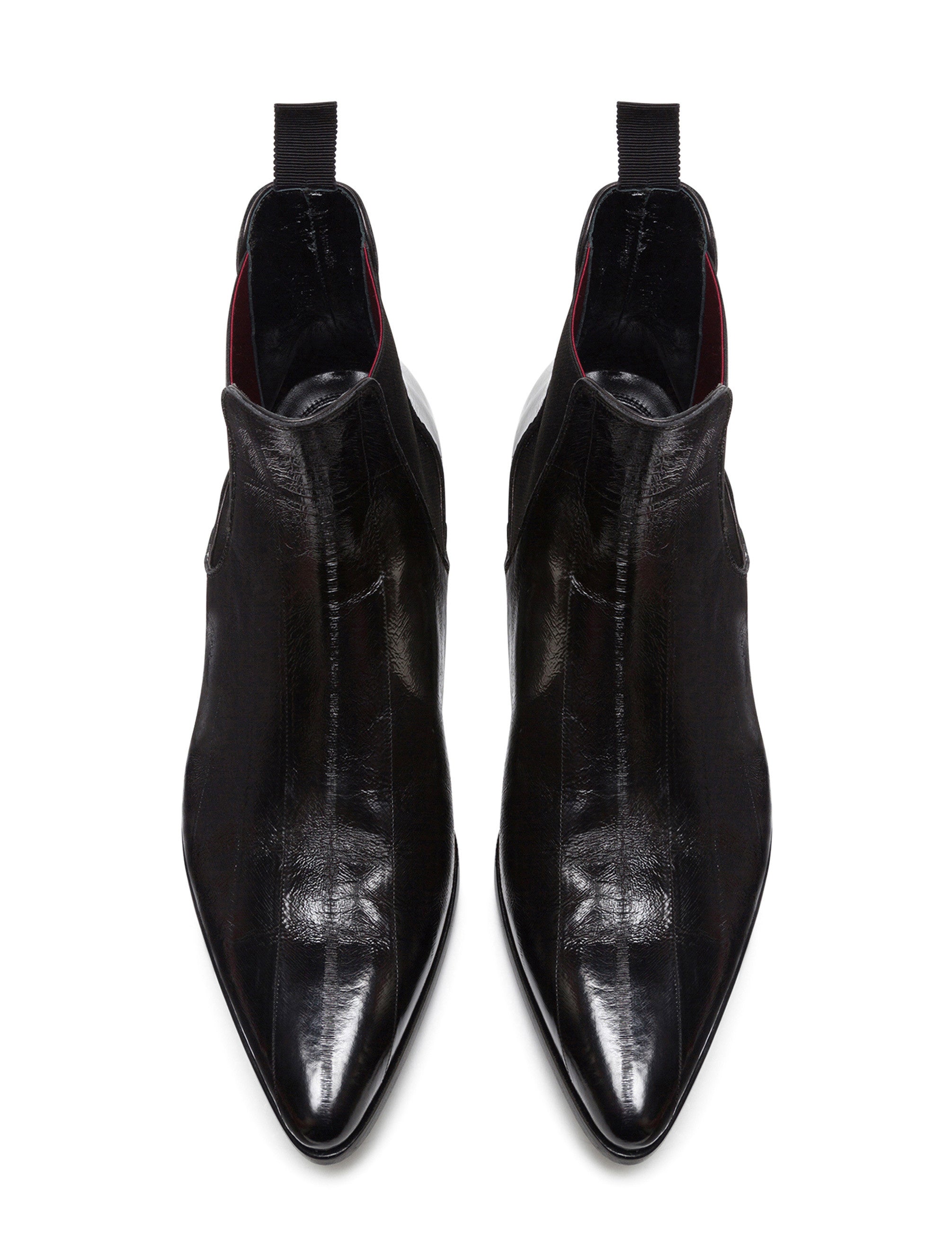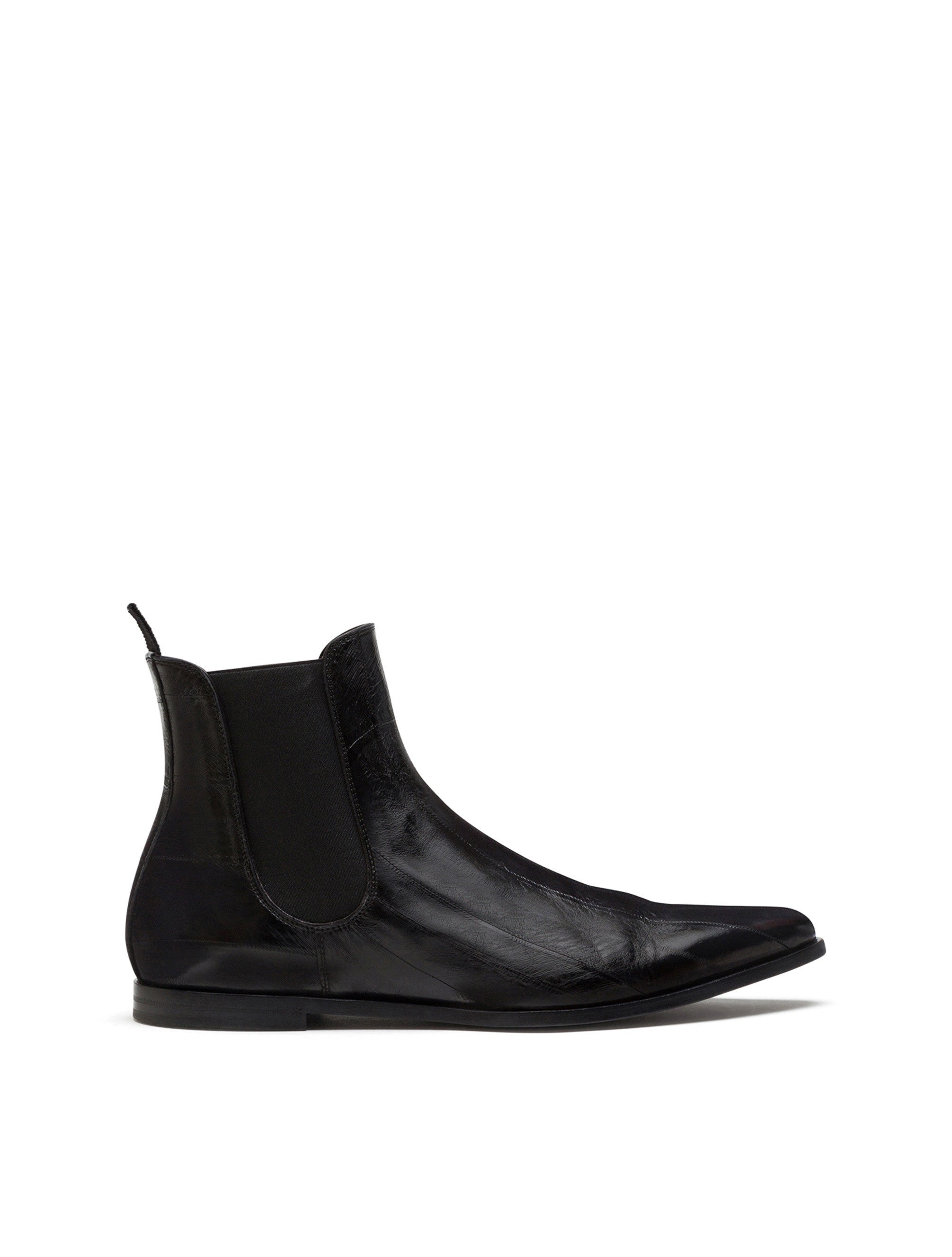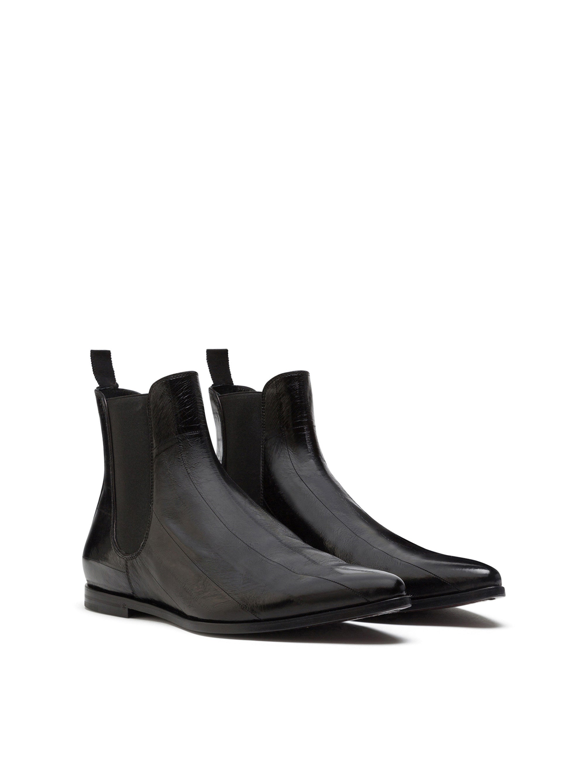 • Blake construction • Eel skin upper • Leather insole with quilted satin insert and branded label • Leather-covered heel • Leather sole • Made in Italy