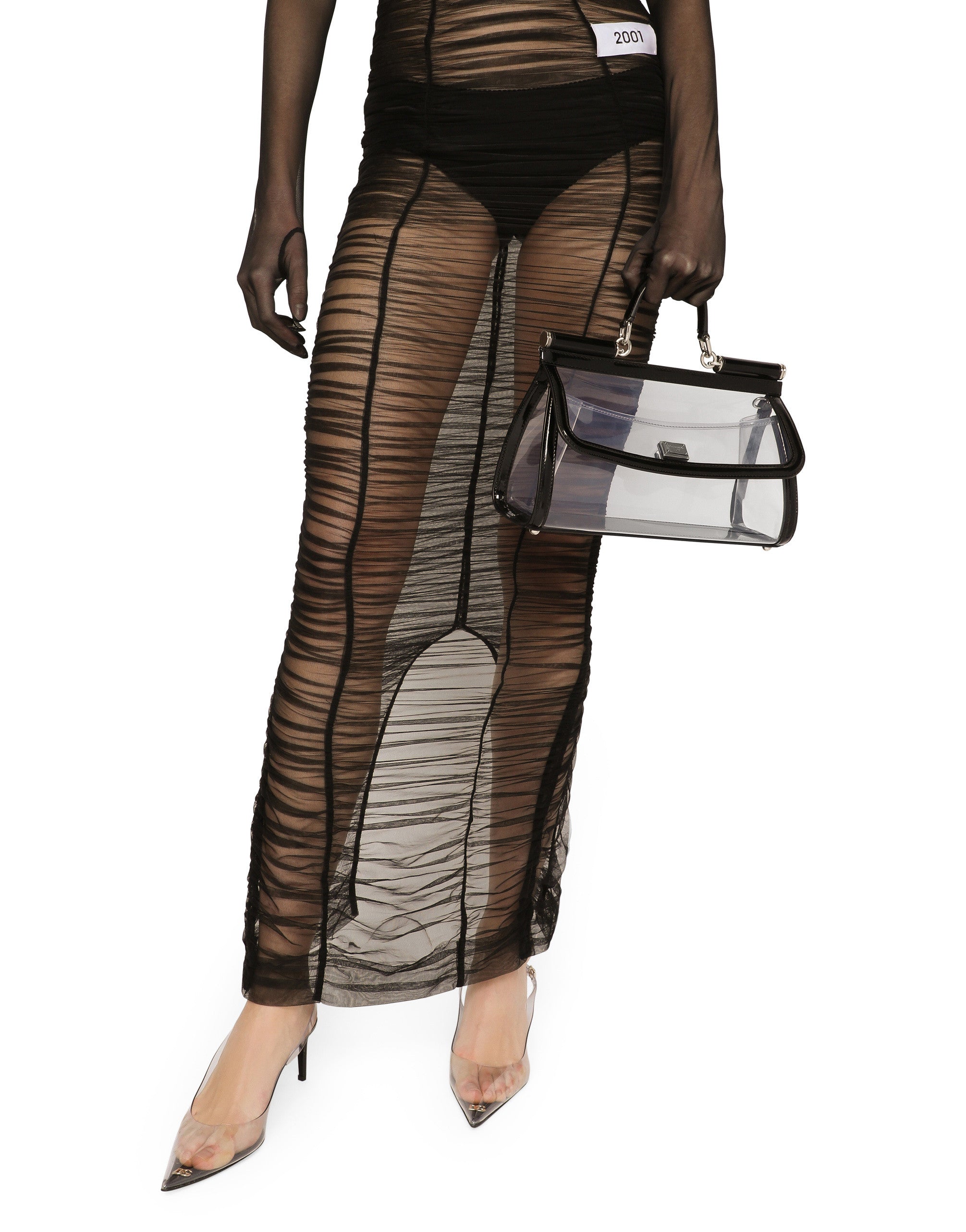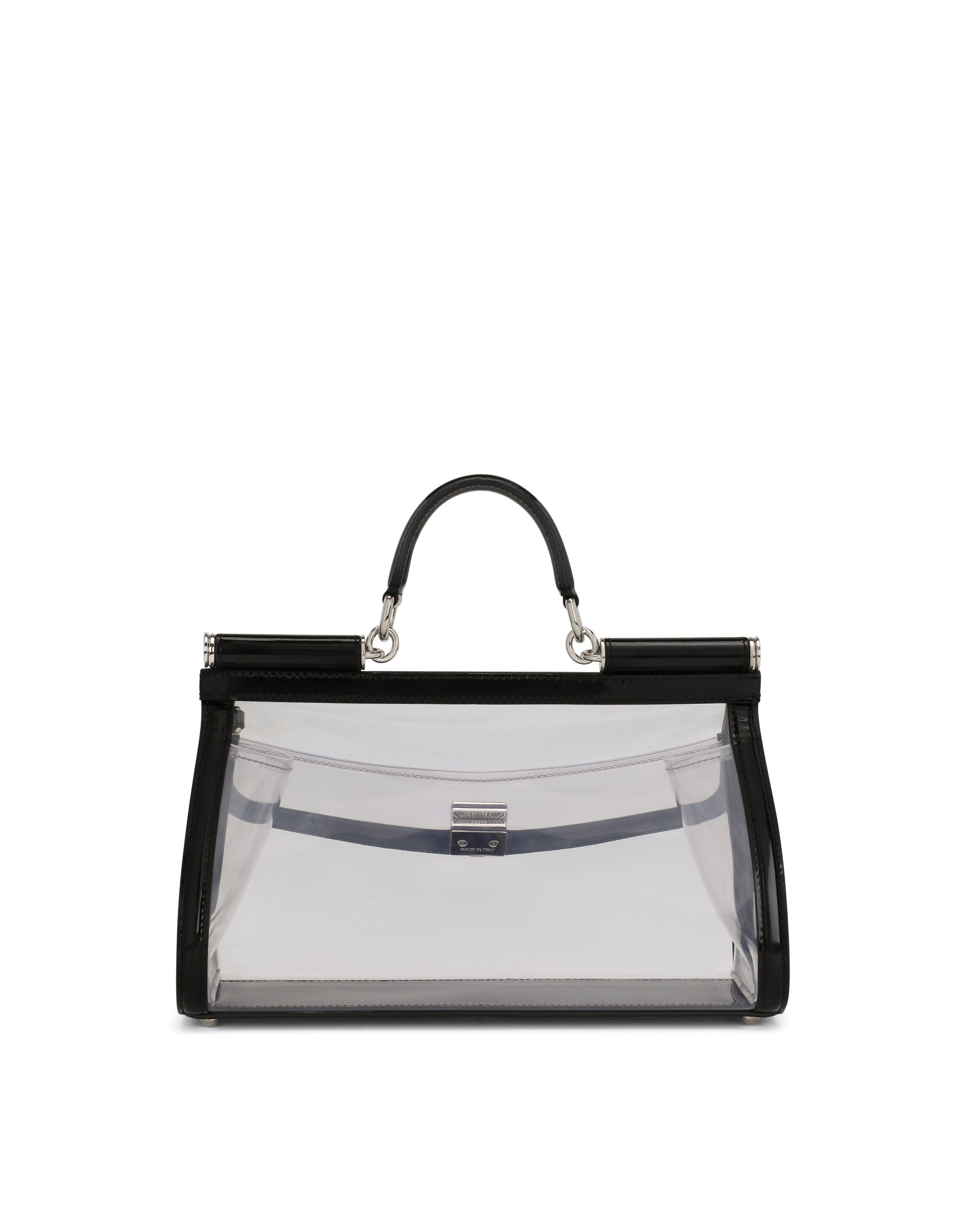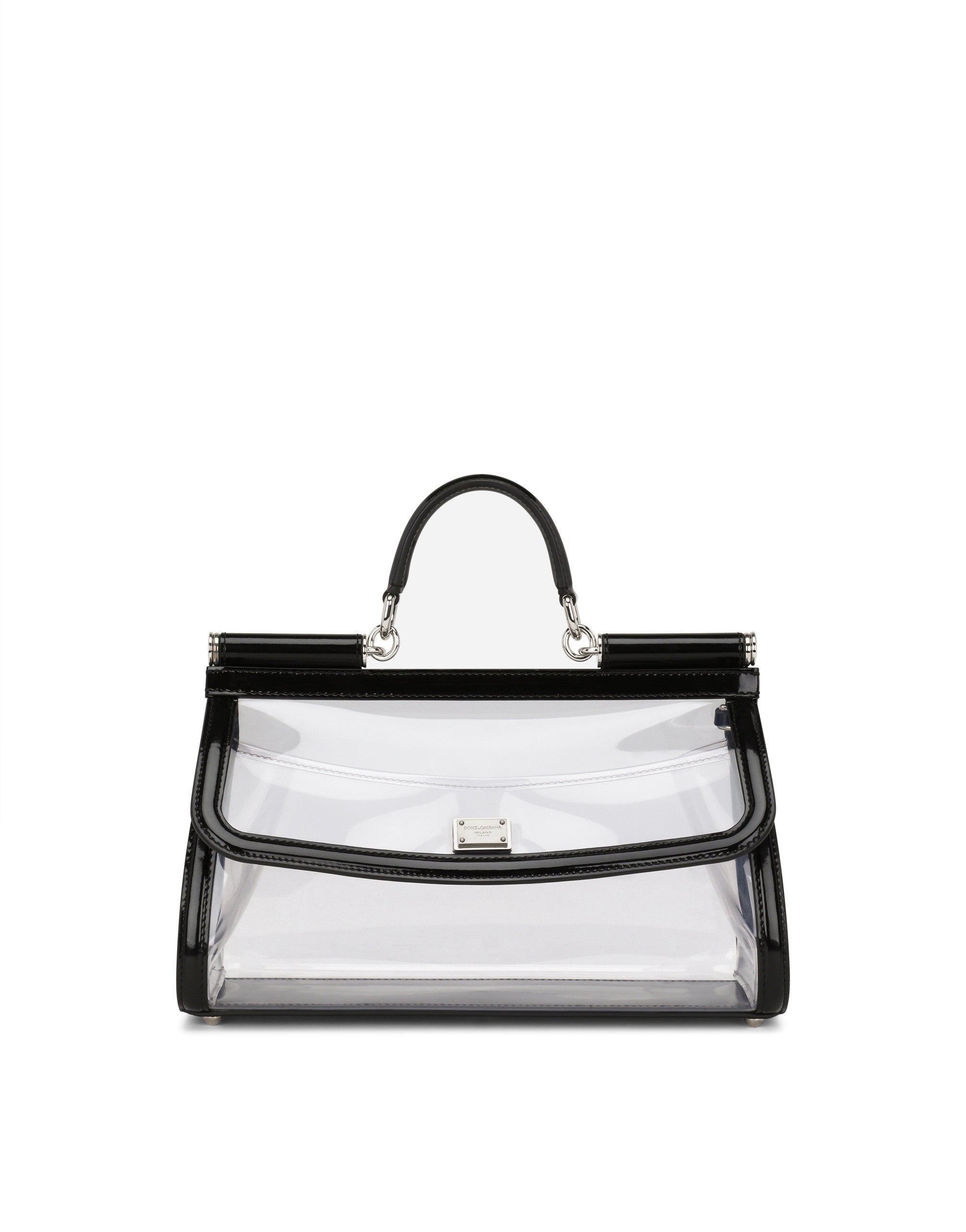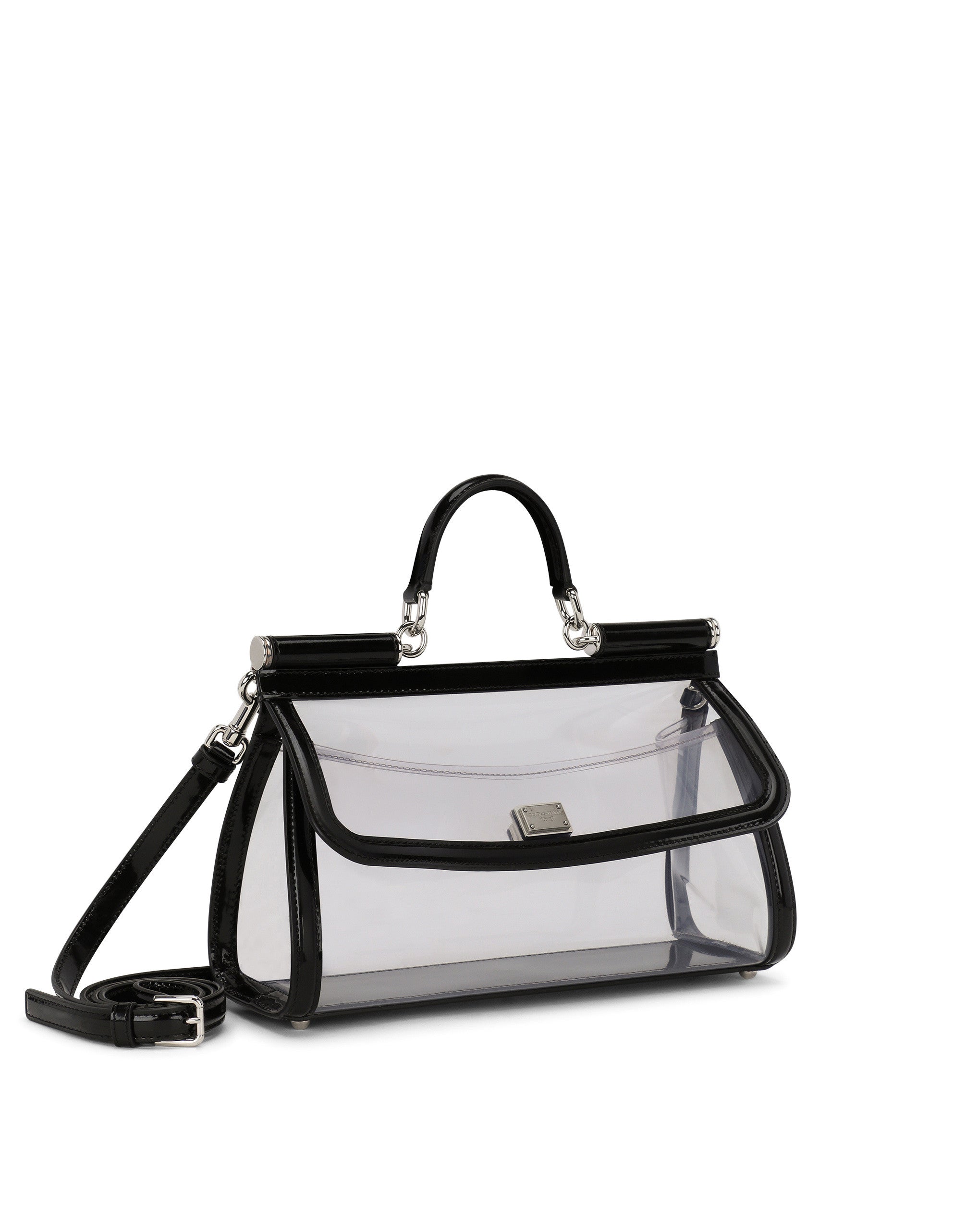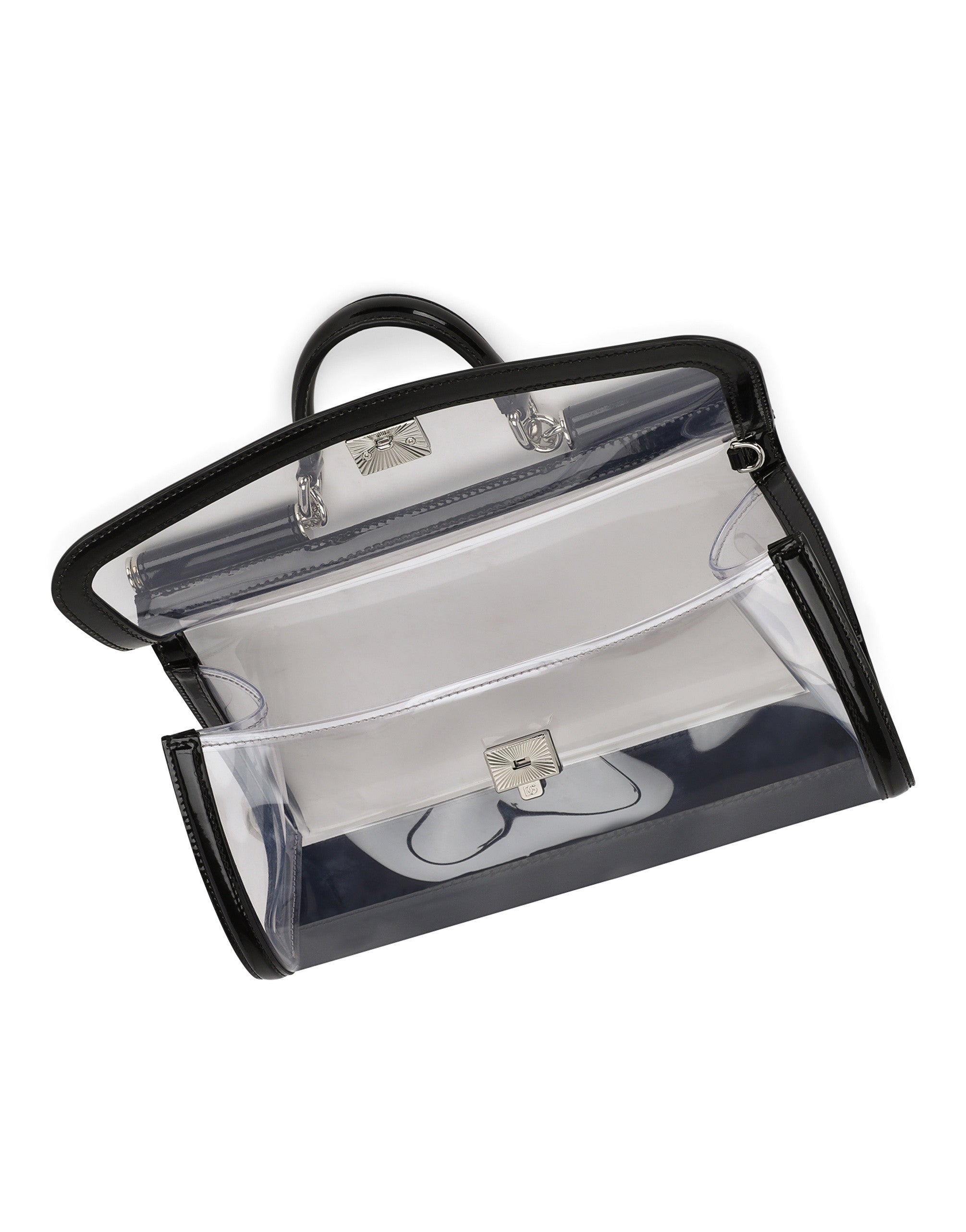 The brand’s origins and invaluable archives have been reworked and reinterpreted to imbue Dolce&Gabbana’s signature style with new life. Elongated PVC Sicily bag: • Black • Front flap with hidden double magnetic fastening • Logo tag featuring two metal plating finishes • Top handle and adjustable, detachable strap in polished calfskin • Printed fabric lining and flat pocket • Item comes with a branded dust bag • Measurements: H18 x W29 x D10 cm • Made in Italy