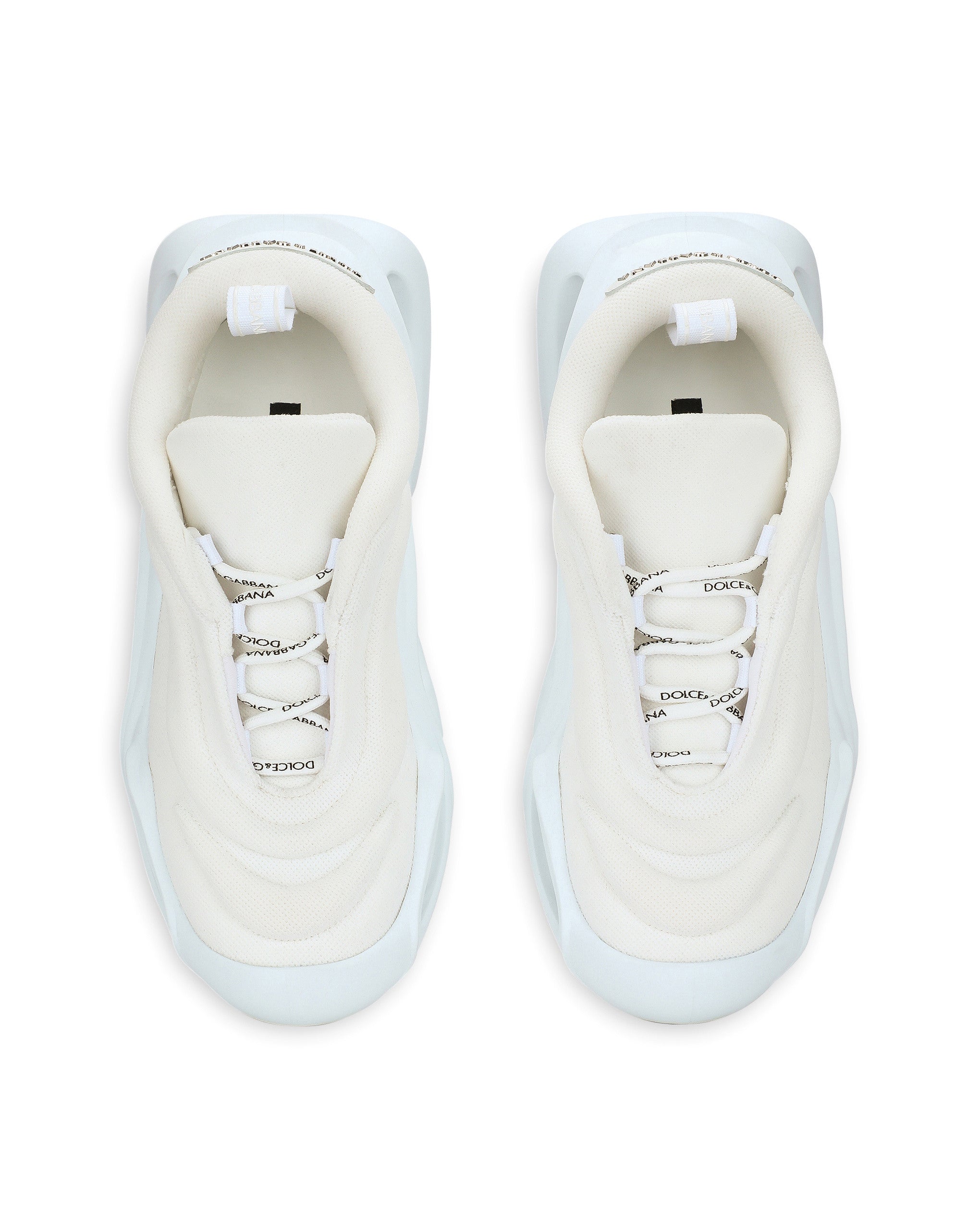 Iconic style meets the metaverse, giving life to a futuristic vision of the brand’s signature aesthetic, where timeless materials merge with contemporary textures. Featuring a chunky rubber sole that wraps around three soft pads, these new Wave sneakers come in fabric with Dolce&Gabbana logo branding. • Branded tubular laces • Leather footbed with branded label • Rubber bottom assembly • Branded rubber sole • Made in Italy