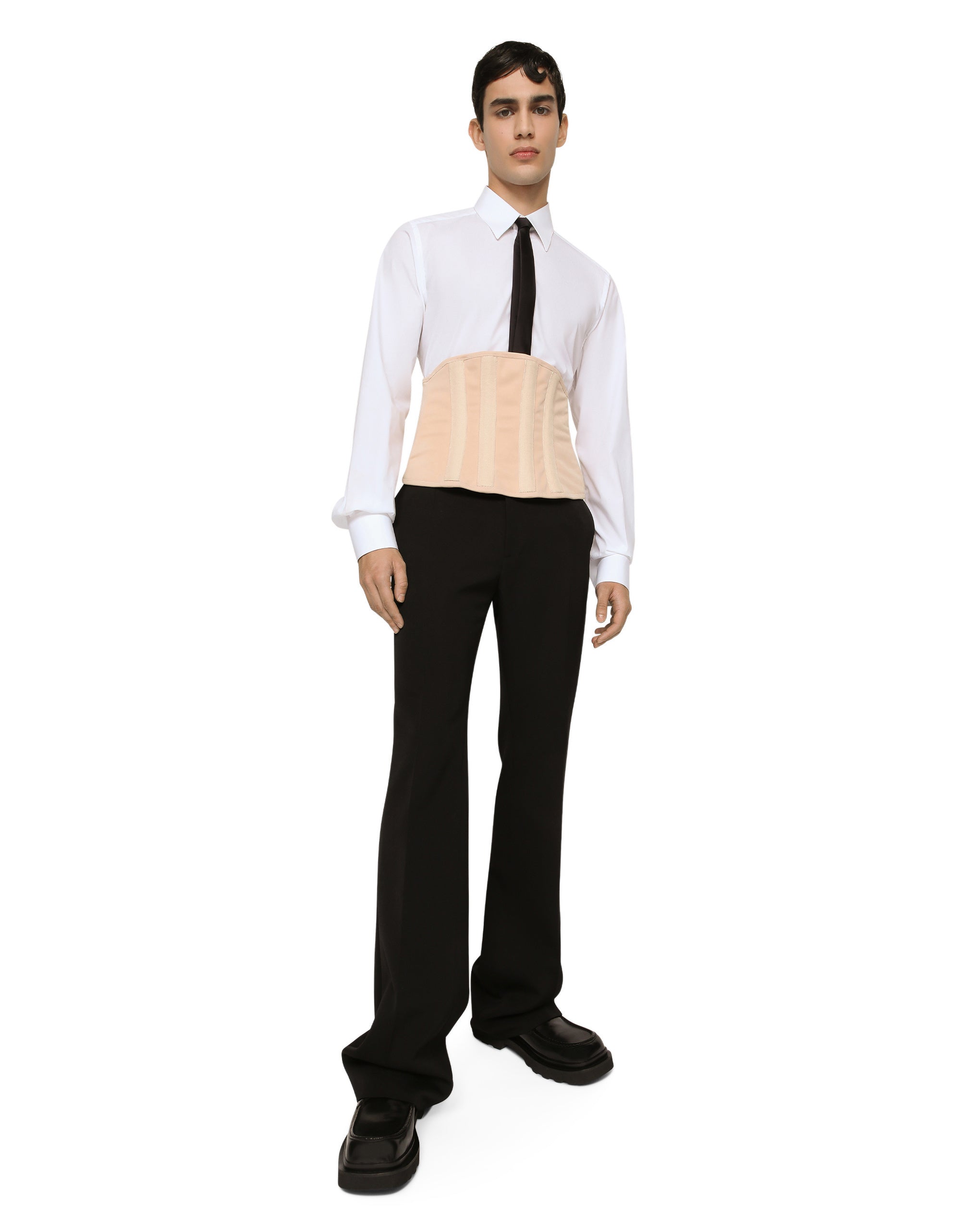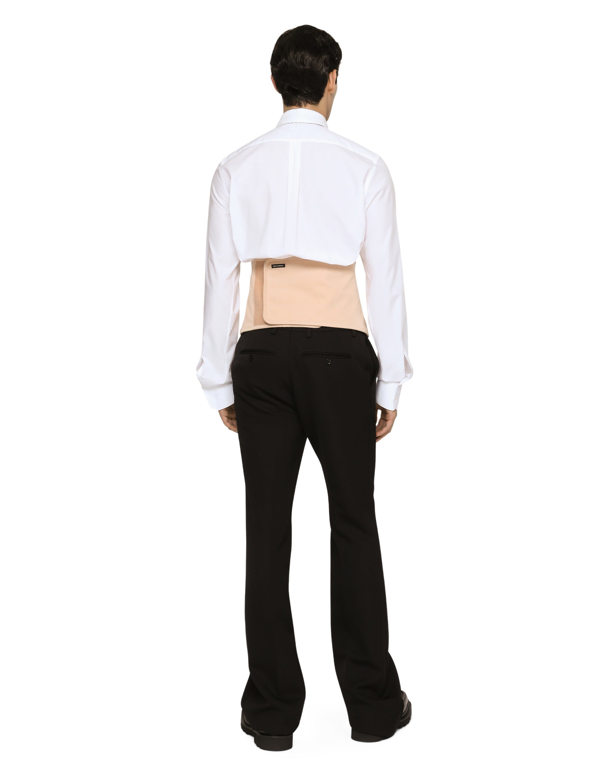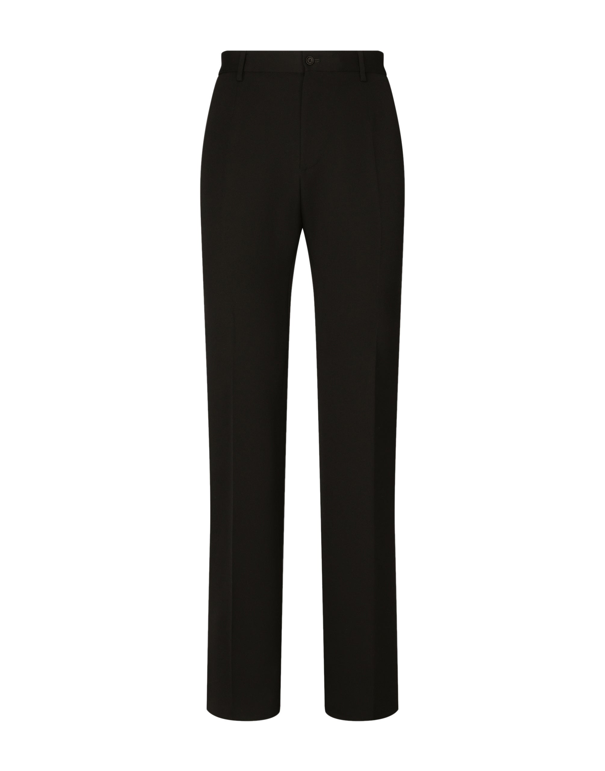 The pieces designed for FW23-24 represent the true essence of Dolce&Gabbana. They dominate with their pure volumes, tailored cut and new proportions. Coats, tops, white shirts, oversize pants, corset girdles and sash-bands that cinch the waist are reissues of the F/W 99-00 collection. Black, the absolute protagonist, which represents elegance, formality and seduction, has been translated into crystal embellishment that brings the wet volcanic stone of Etna and Stromboli to mind. Tailored flared wool pants: • Regular fit • Belt loops on the waist • Fly-covered zipper and button fastening • Front slant pockets and buttoned welt pockets at the back • Black • The item measures 128 cm on the outer leg and the hem is 28 cm wide on a size IT 48 • The model is 185 cm tall and wears a size IT 48 • Made in Italy