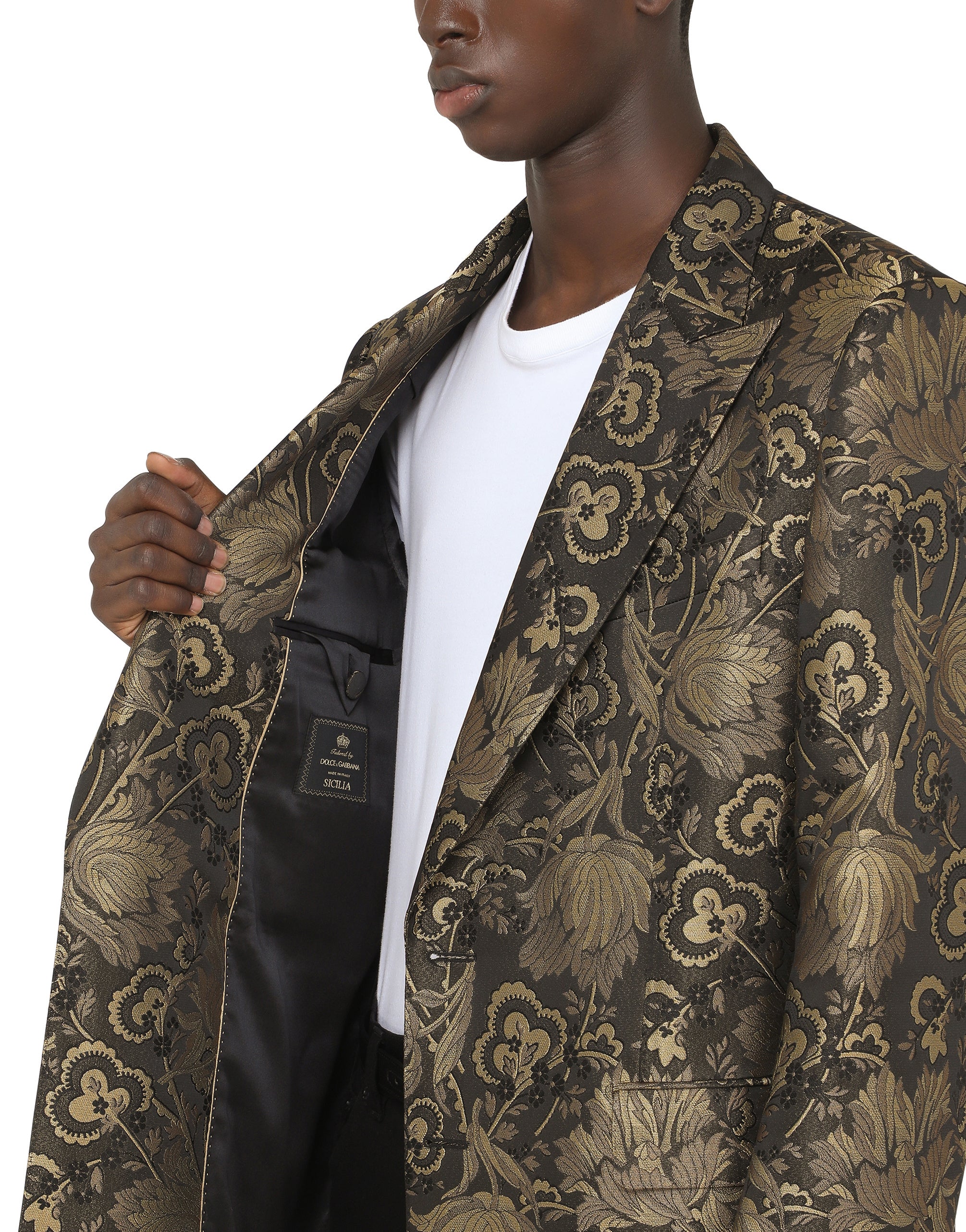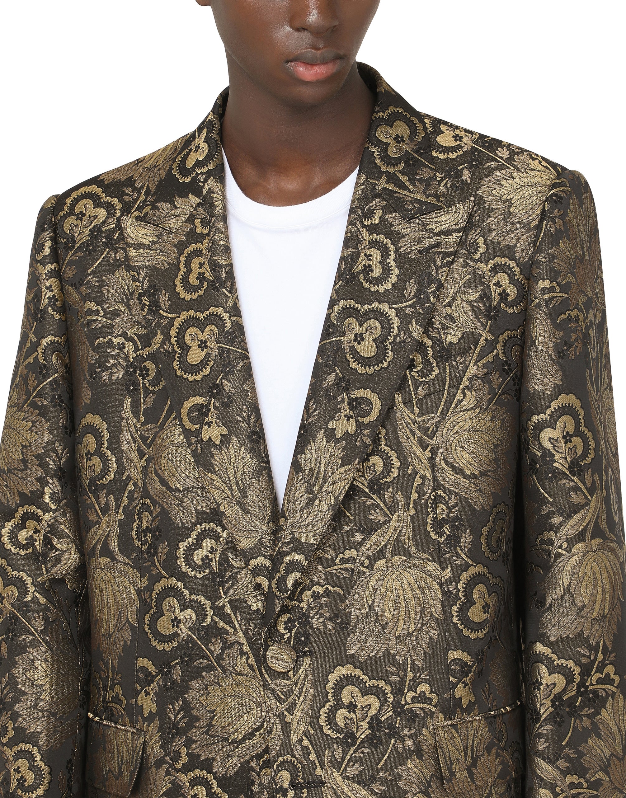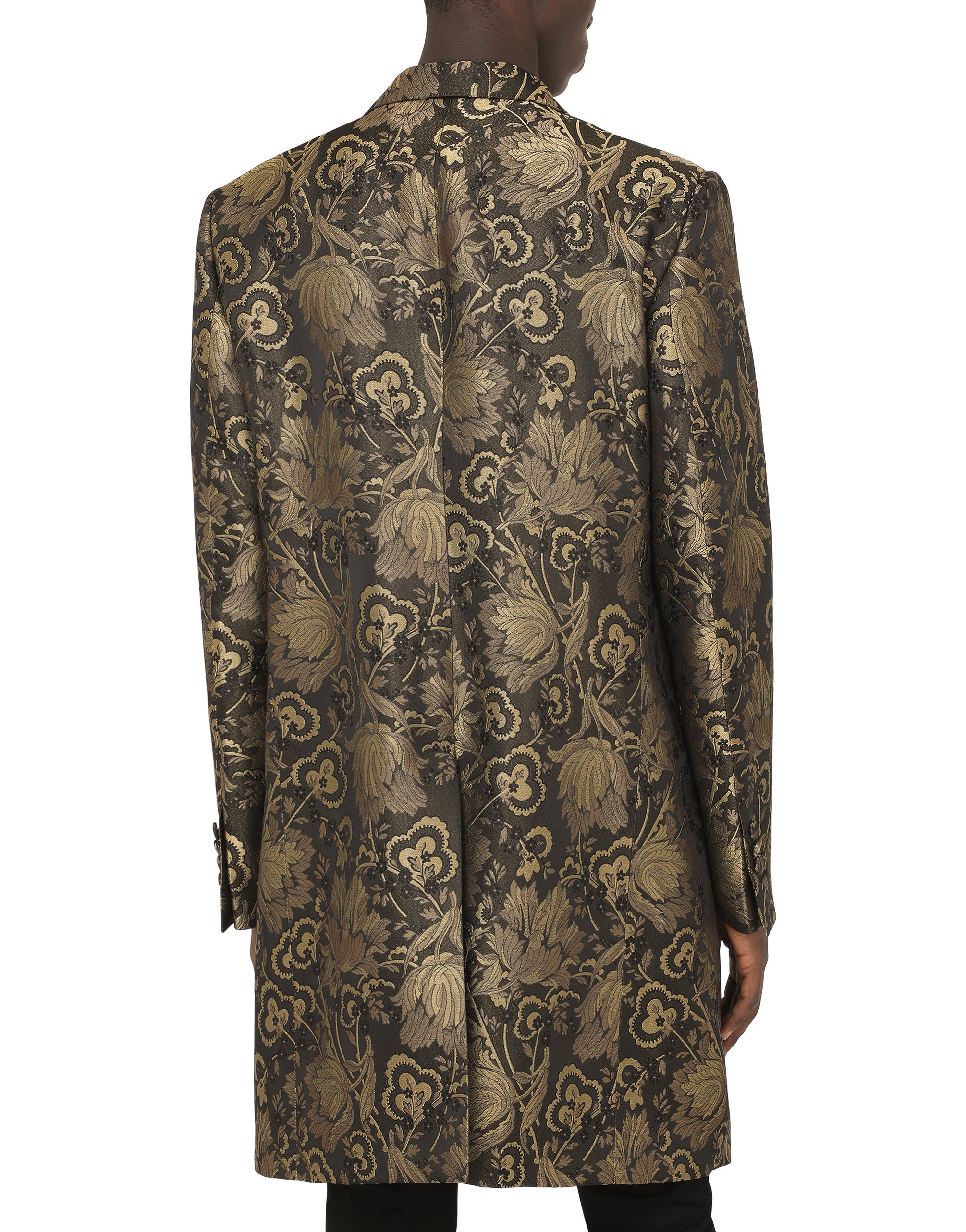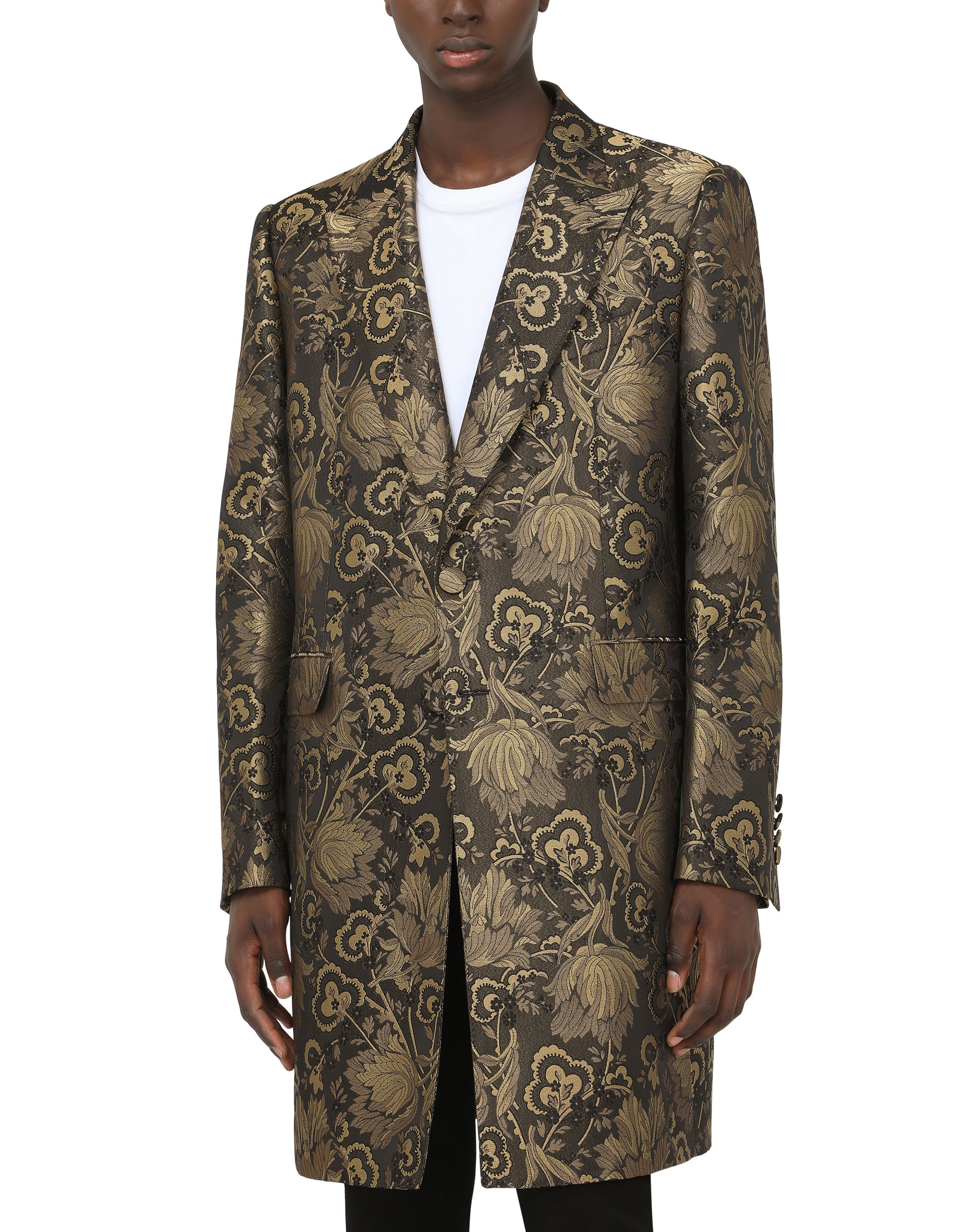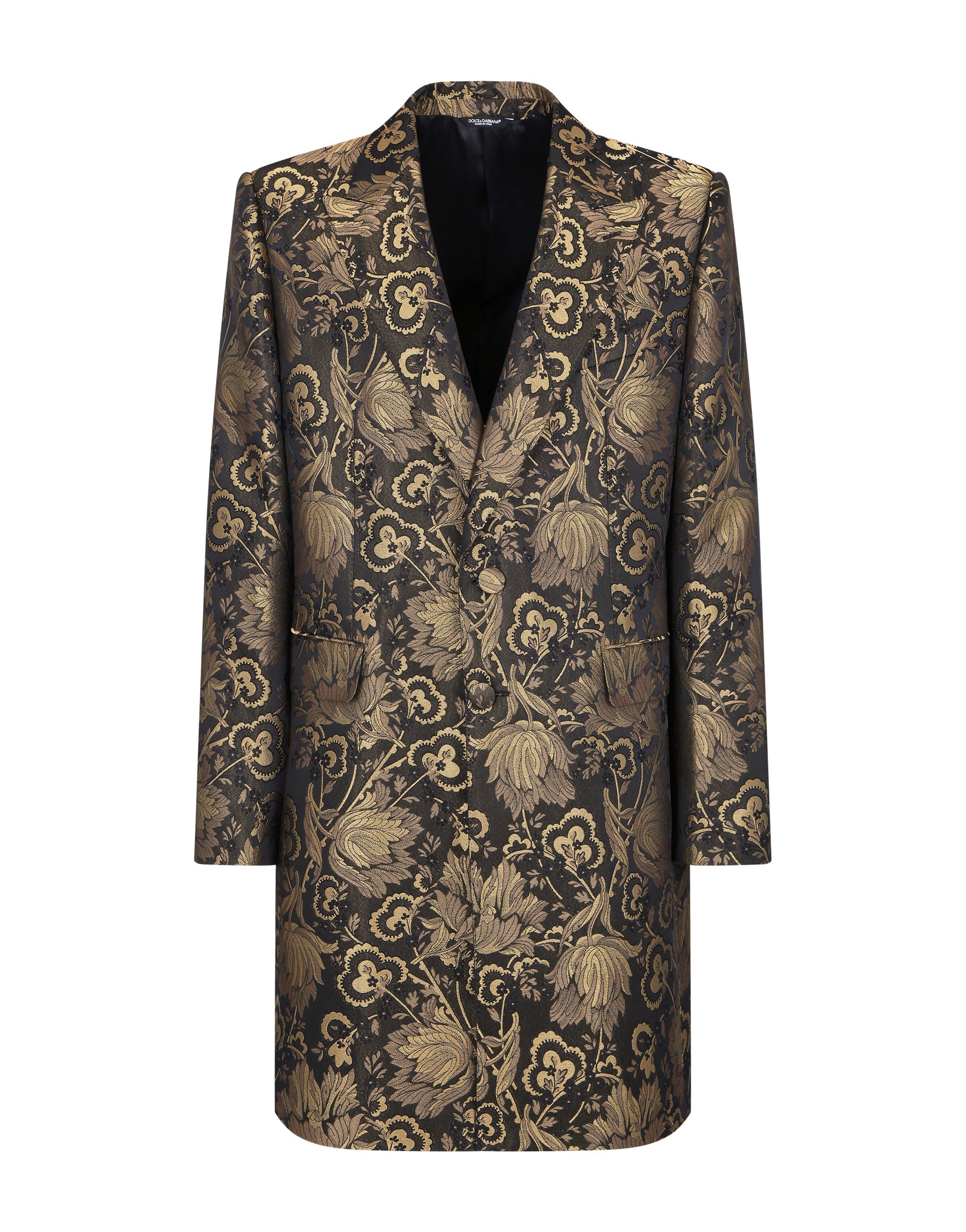 In the Dolce&Gabbana collection, our Sicilian roots and tailoring expertise mix with layering and new volume to create a sophisticated and contemporary update on our signature aesthetic. Elegant coat in floral lamé jacquard. • Regular fit • Peak lapels • Single-breasted fastening with two buttons • Flap welt pockets and breast pocket • Two welt inner pockets with button and two welt pockets • Lined • The piece measures 97 cm - 38.2 inches from the rear collar seam on a size IT 48 • The model is 185 cm - 72.8 inches tall and wears a size IT 48 • Made in Italy