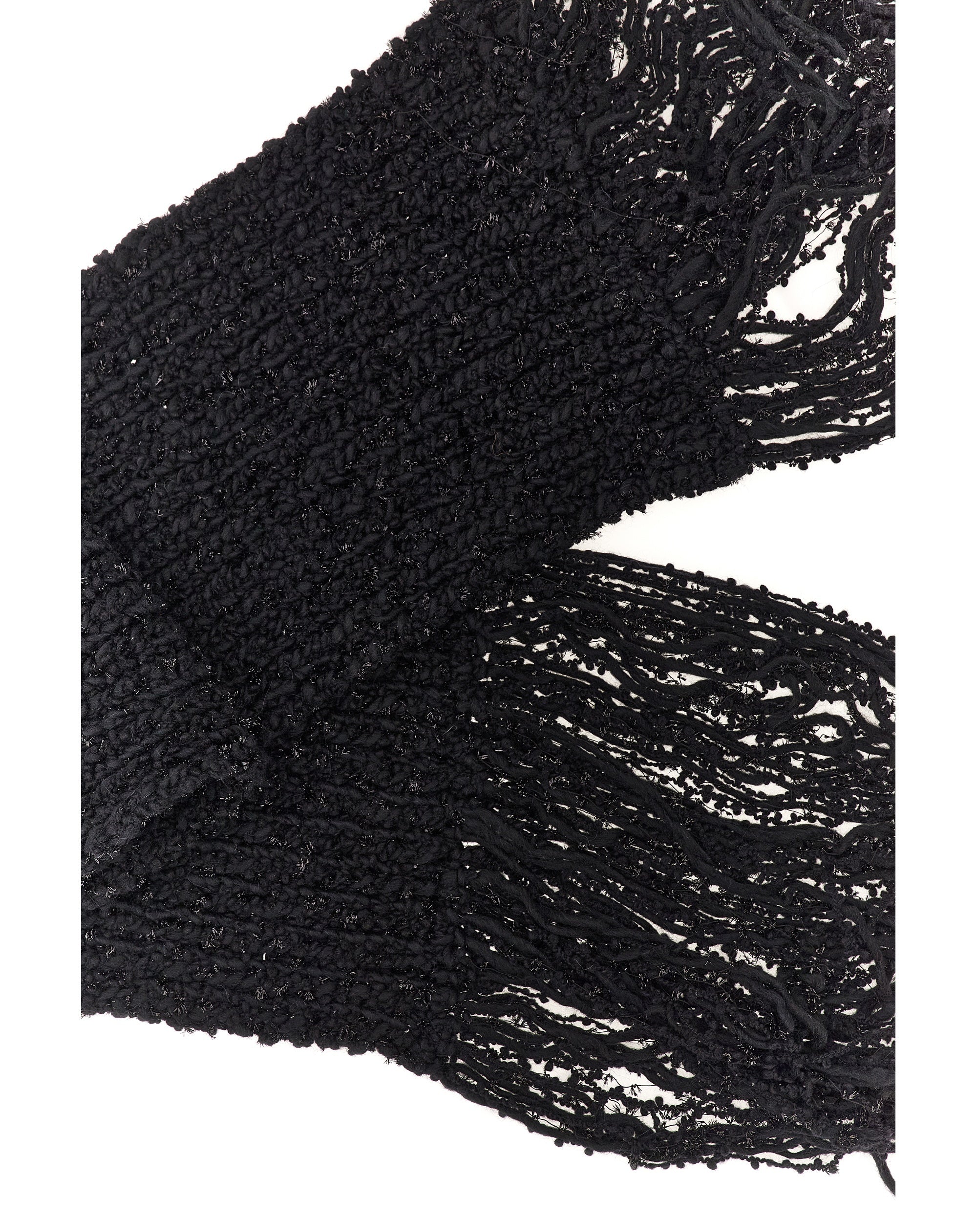 Wool scarf with fringing: • Handmade • Made in Italy External composition: 45% Virgin Wool 20% Polyamide 15% Metallic Polyester 10% Acrylic 10% Alpaca