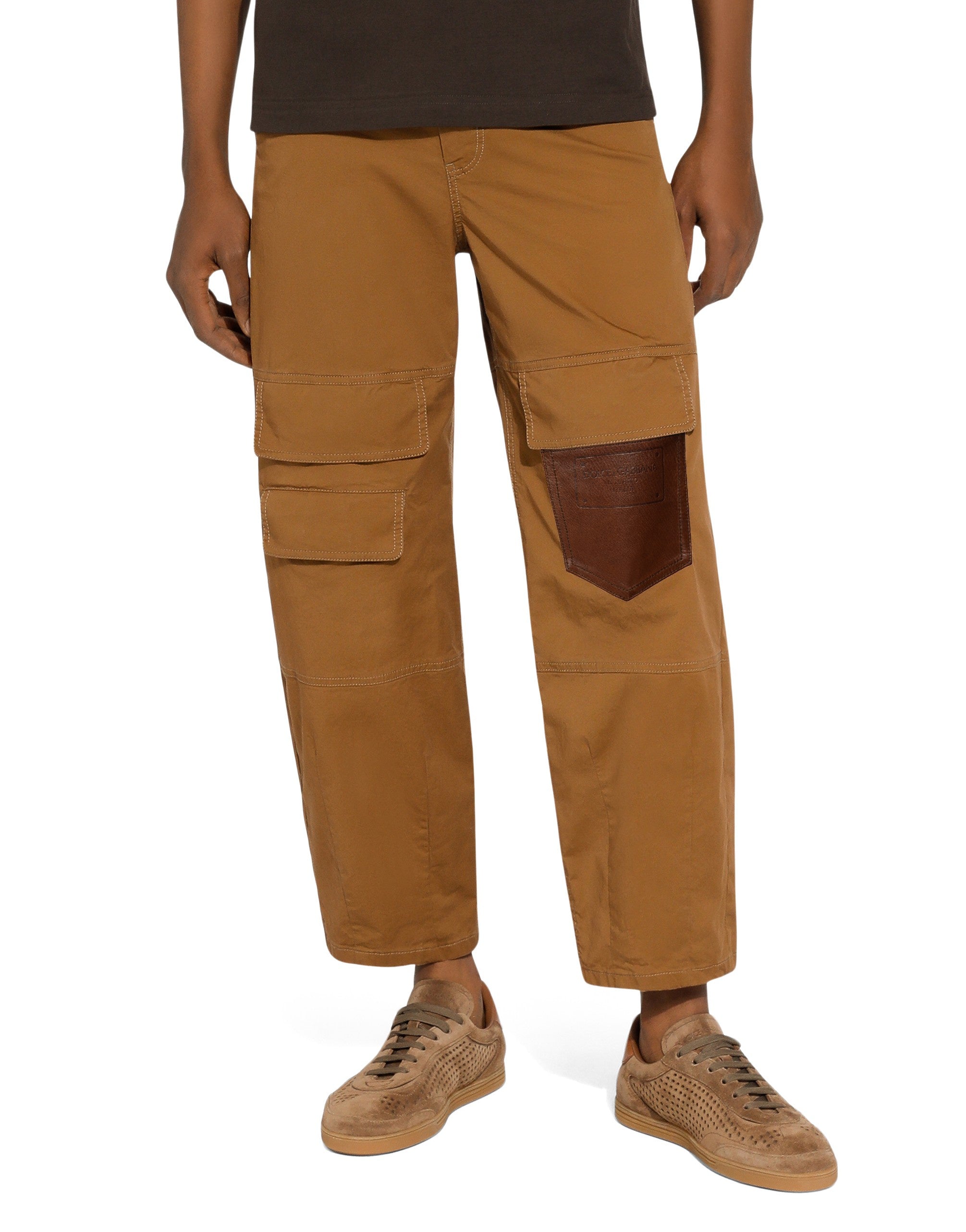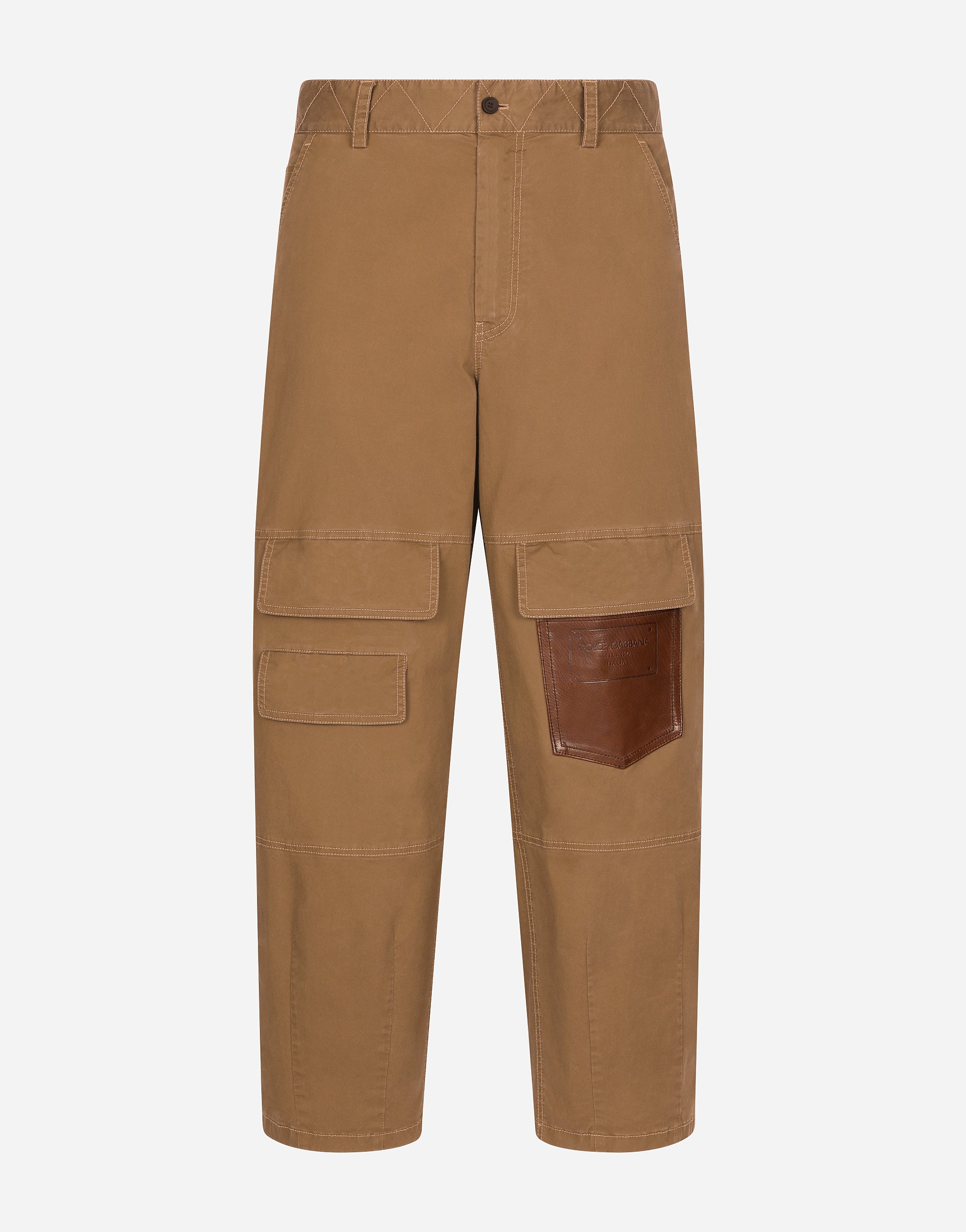 The Palermo collection represents the link between the Sicilian man’s world and the unspoiled nature of the island. A language marked by warm hues – sand, cream, Nero Sicilia black – floral paintings and iconic prints. The Dolce&Gabbana closet must-haves have been reworked in different materials, in pursuit of a new form of harmony. A collection rich in suggestion, such as the stripes inspired by the old mattresses of the 1940s and 1950s, and the timeless aesthetic of the looks. Wide-leg flannel cargo pants: • Brown • Regular fit • Belt loops on the waist • Fly-covered zipper and button fastening • Front slant pockets • Flap pockets on the front and back • The item measures 100 cm on the outer leg and the hem is 22 cm wide on a size IT 48 • Made in Italy