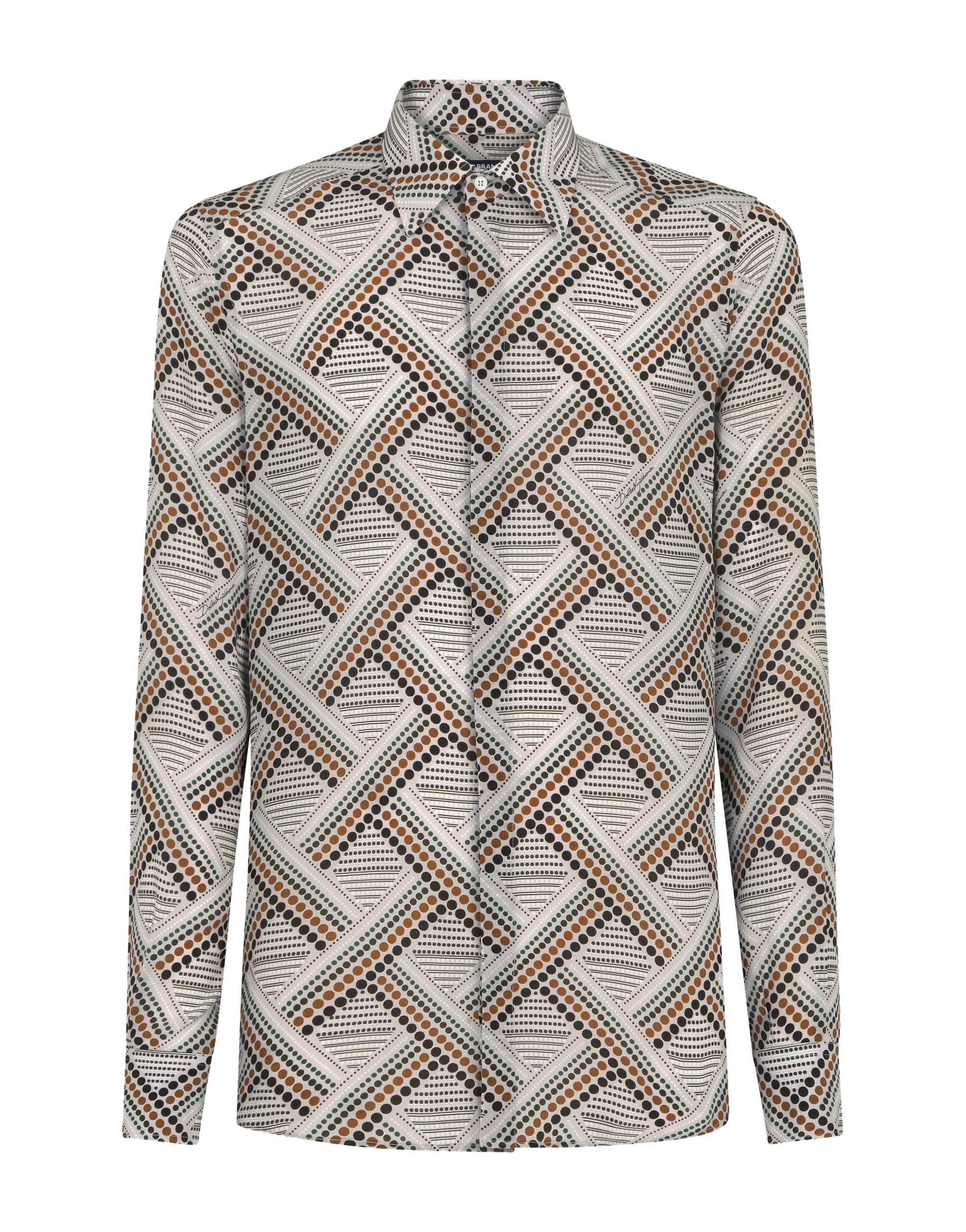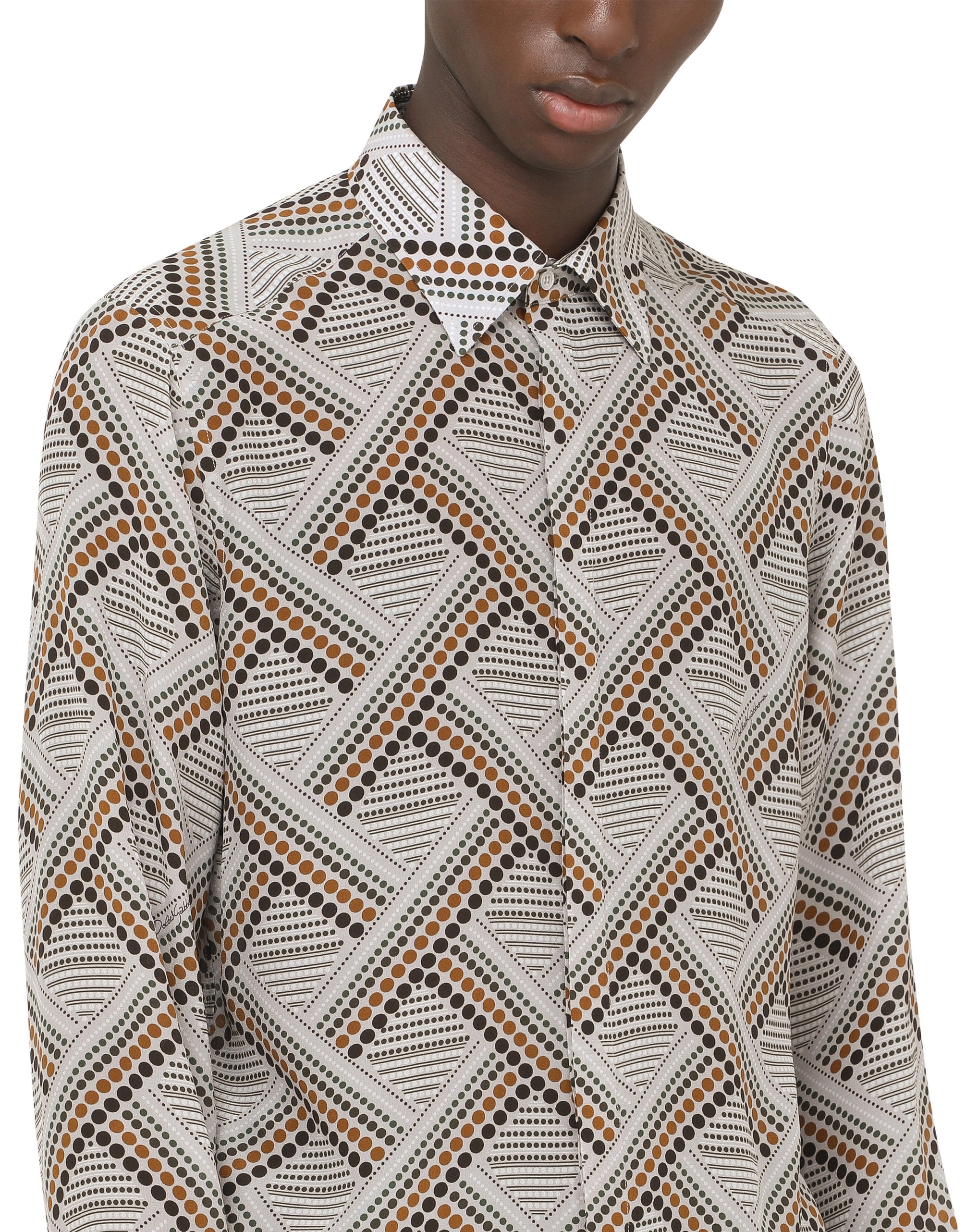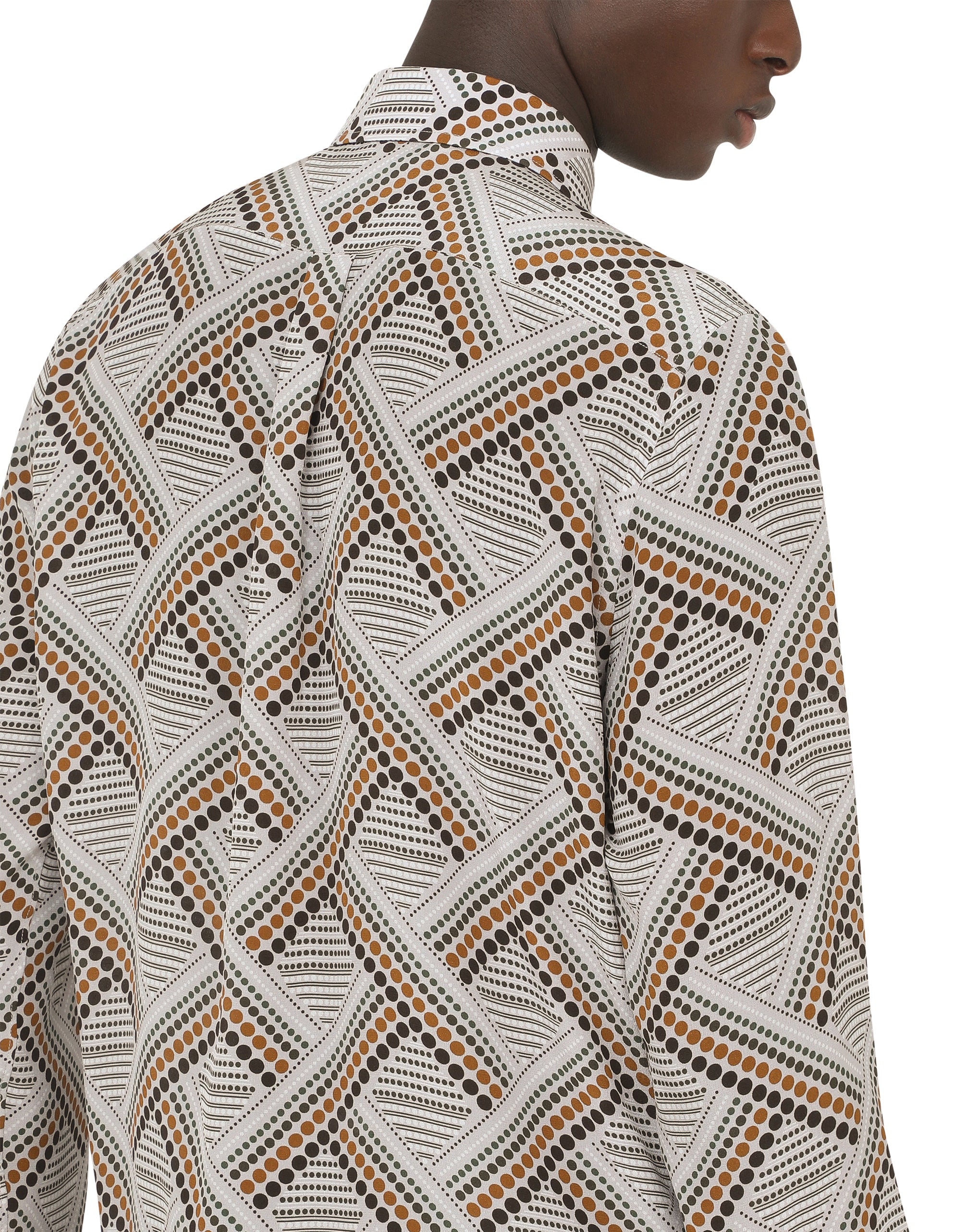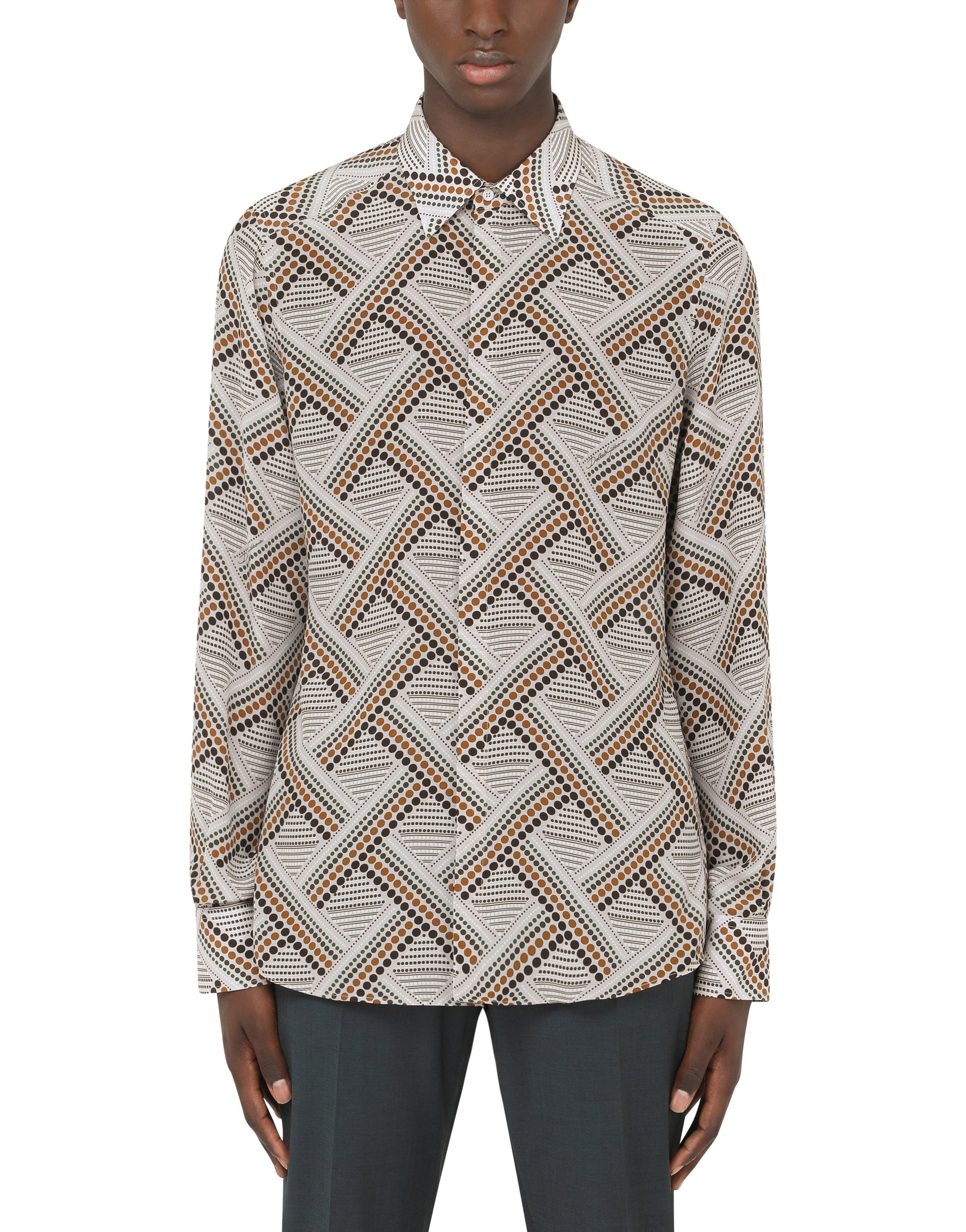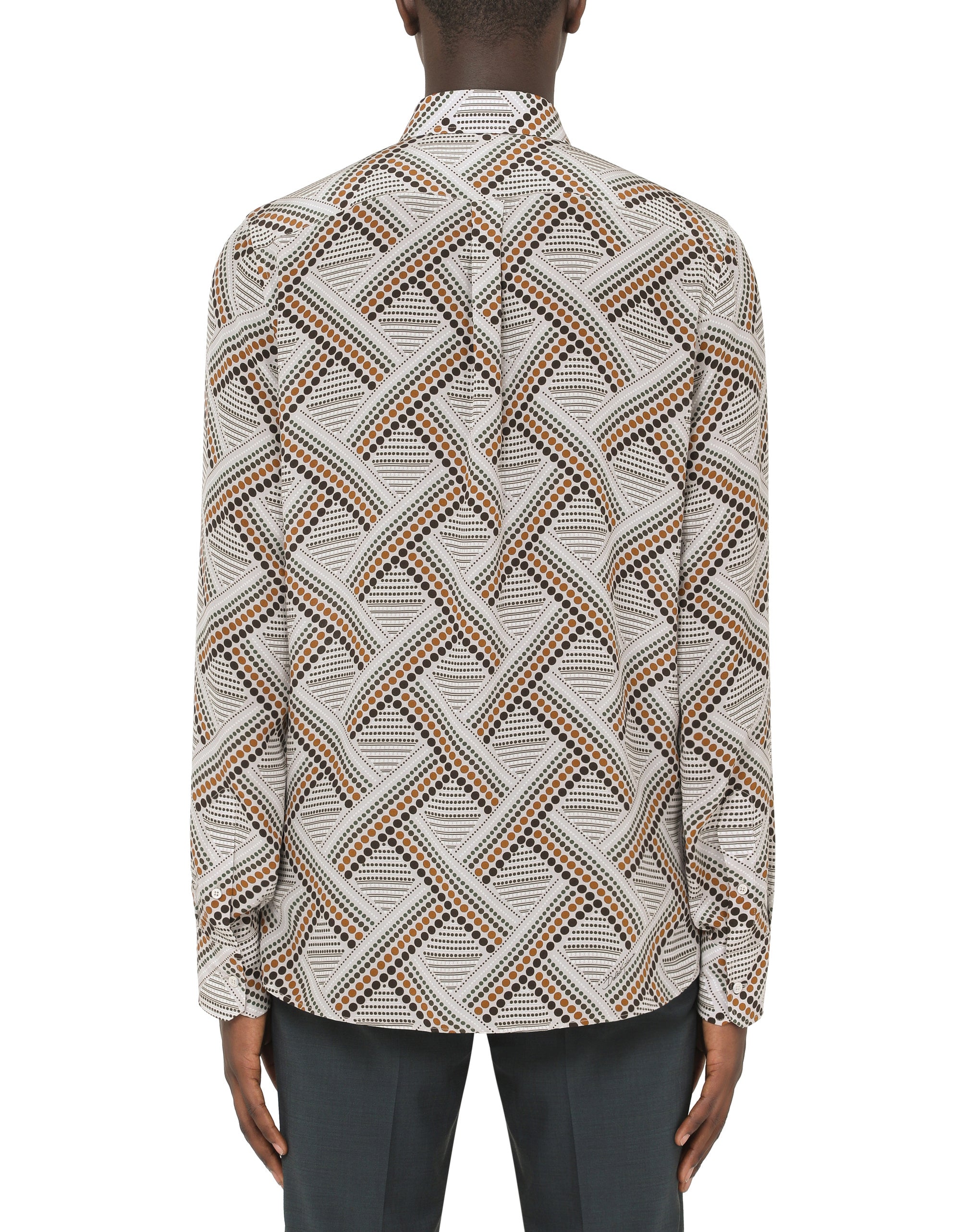 The search for new, fine fabrics combined with Dolce&Gabbana’s tailoring expertise form the very essence of the “Sartoria Eccentrica” collection. It has given rise to a new concept of tailoring, one that is elegant and sophisticated and pairs perfectly with daywear garments. Tailored silk crepe de chine shirt with geometric print: • Regular Martini fit • Kent collar • Long sleeves • Concealed buttoning • Rear yoke with inverted pleat on hem • The piece measures 80 cm - 31.5 inches from the rear collar seam on a size IT 40 • The model is 185 cm - 72.8 inches tall and wears a size IT 40 • Made in Italy External composition: 100% Silk