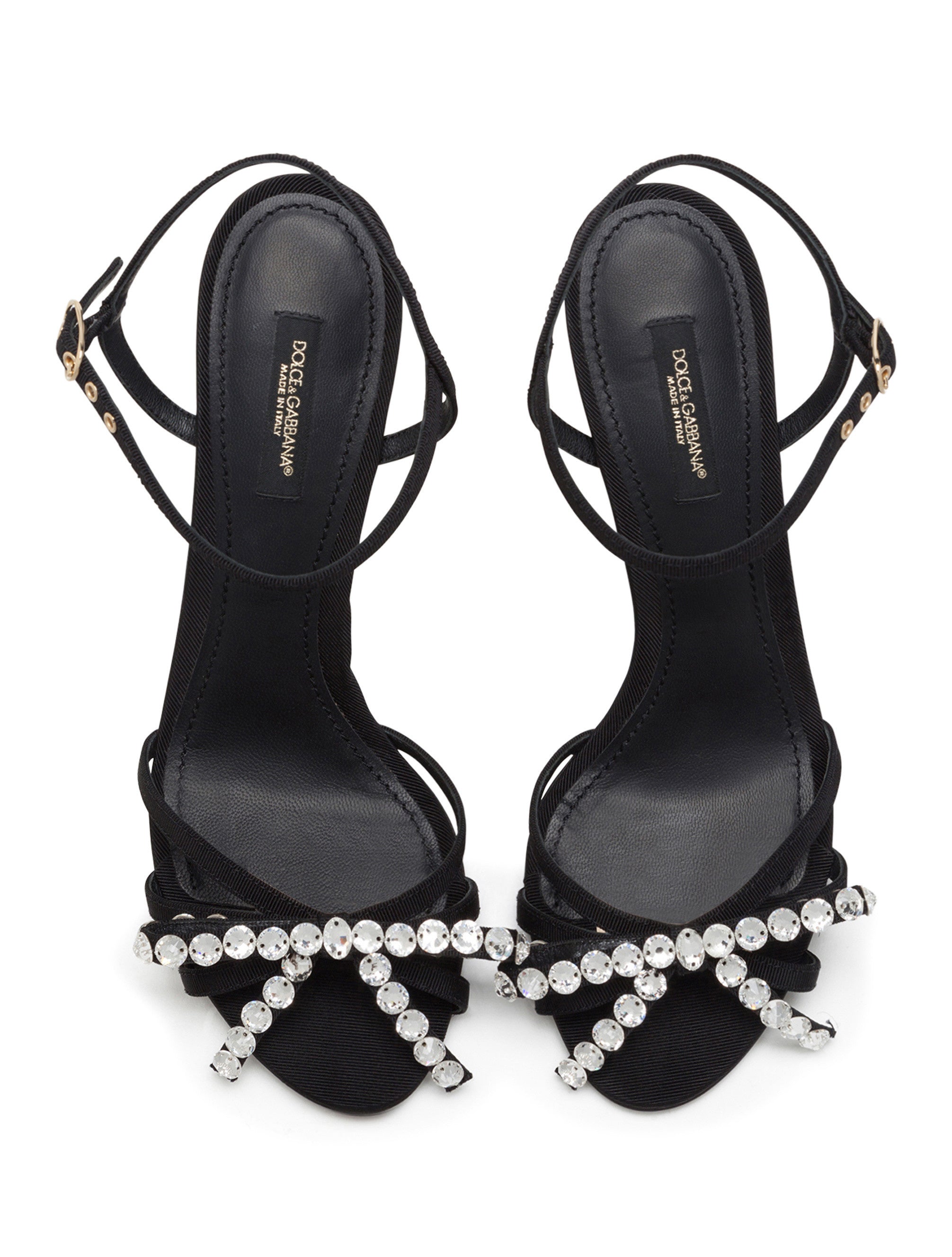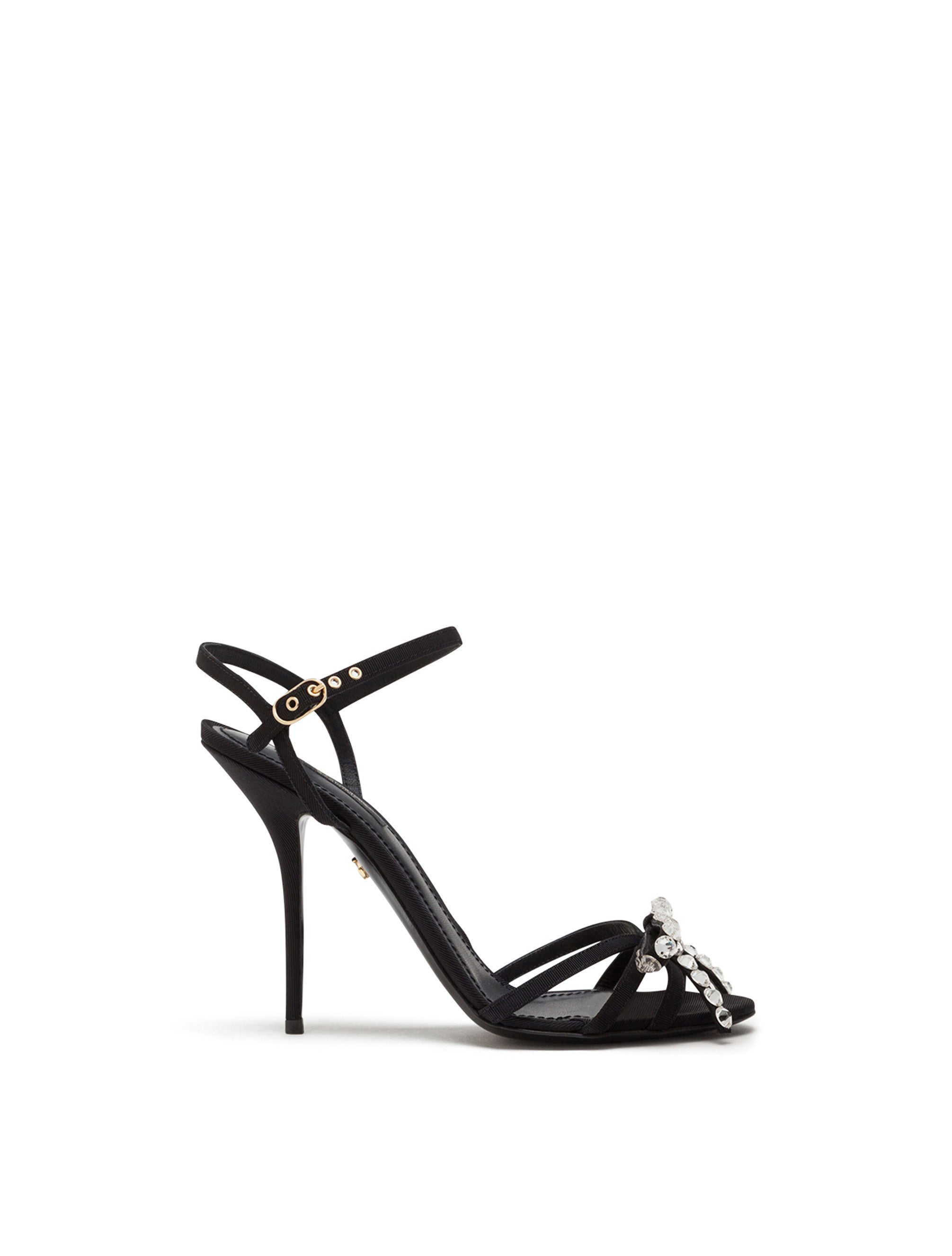 The theme of Sicily, the foundation of the brand’s signature aesthetic, is enriched each season with new styles featuring iconic and feminine silhouettes. These gros-grain Keira sandals feature a bow on the toe that is completely covered in crystals. • 105 mm - 4.1 inches satin-covered heel • Back strap with buckle • Leather insole with branded label • Smooth leather sole with logo detail • Made in Italy